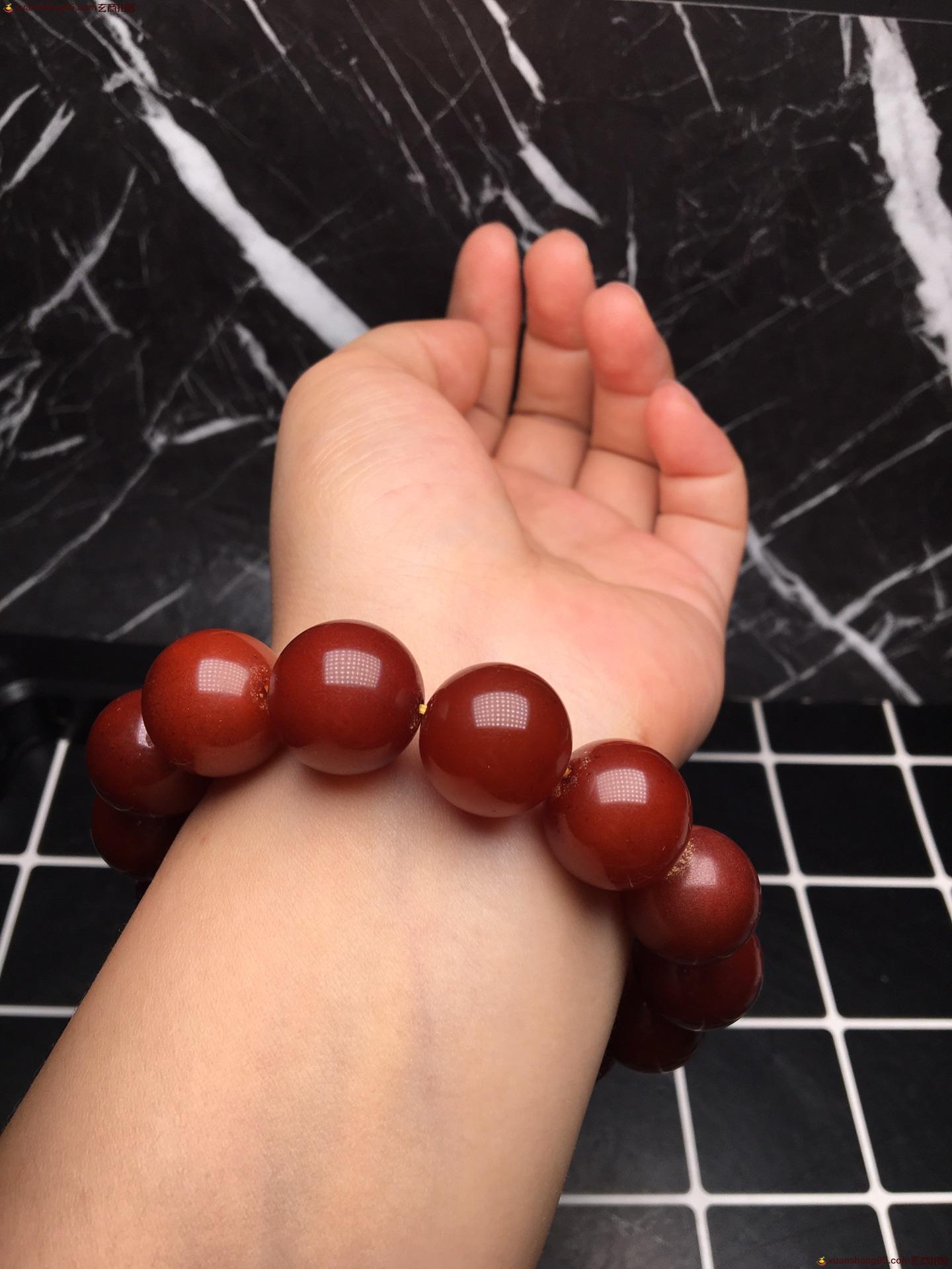 *品 橘皮 蜜蜡 圆珠手串 皮壳老辣 颜色漂亮 满蜜满蜡 无杂无裂 尺寸16毫米 重量35克。