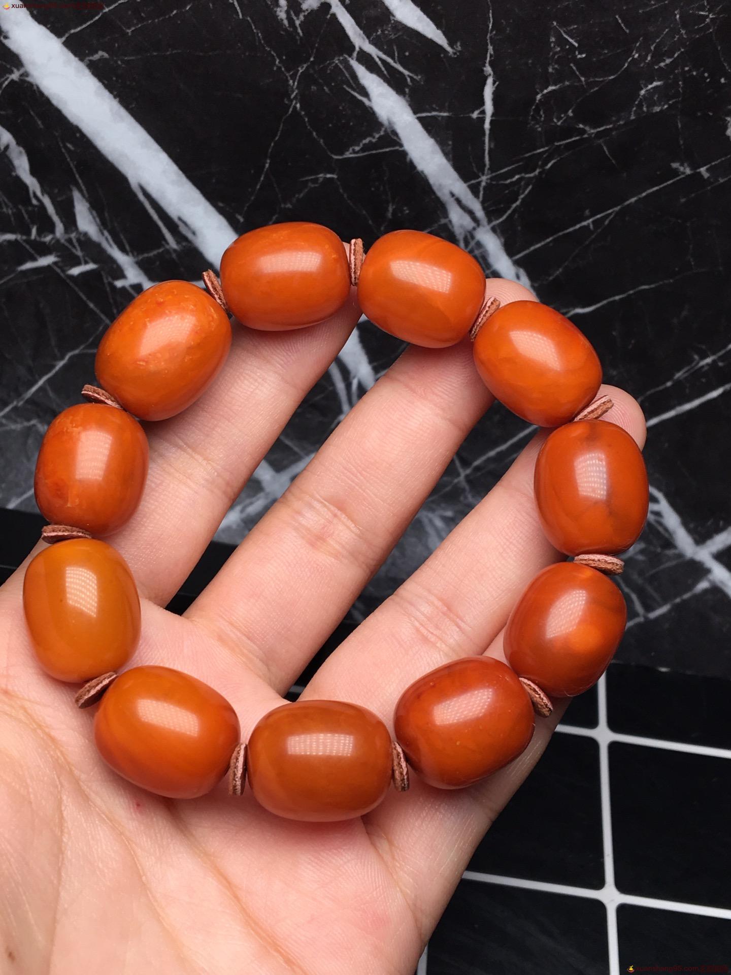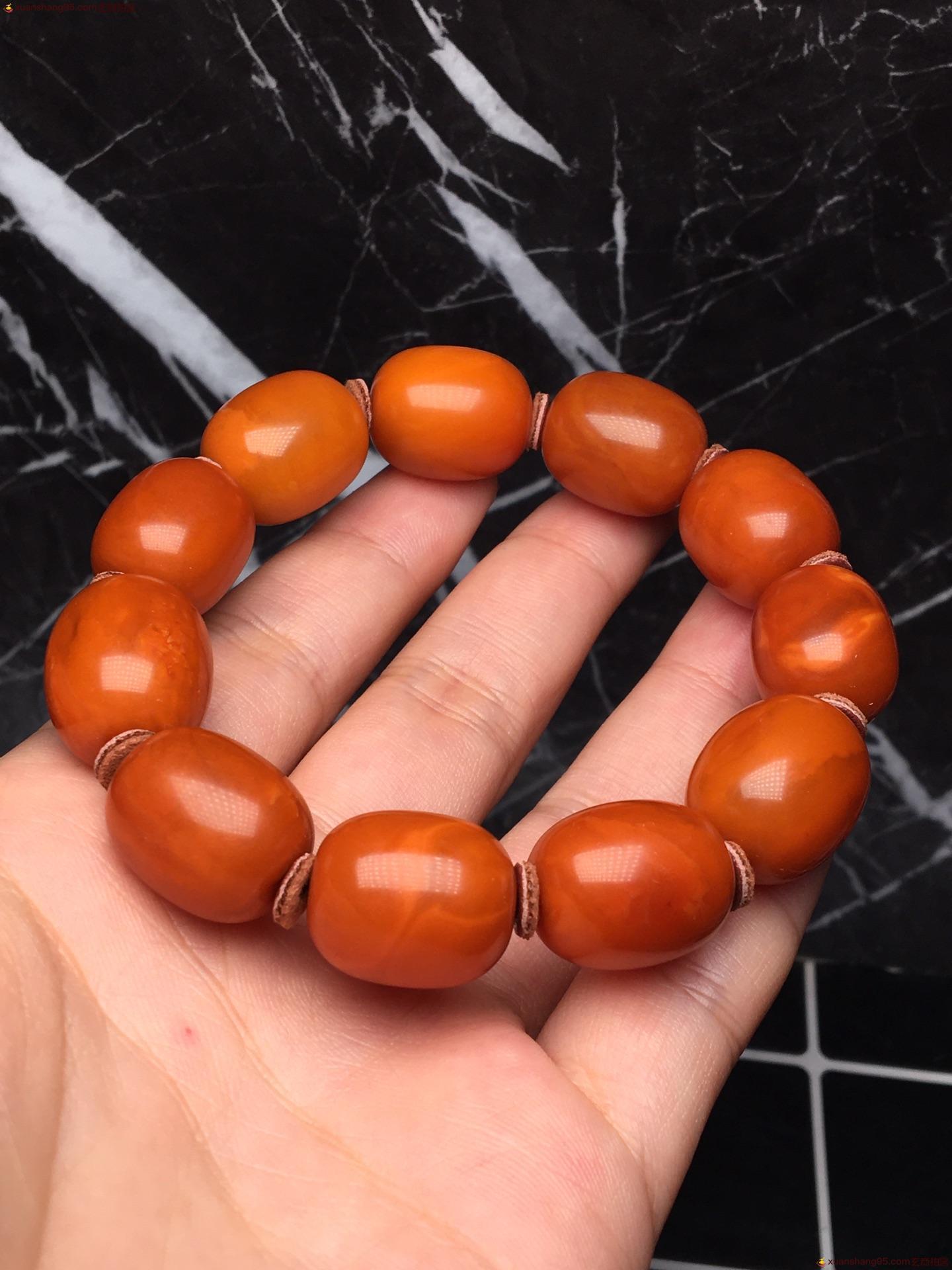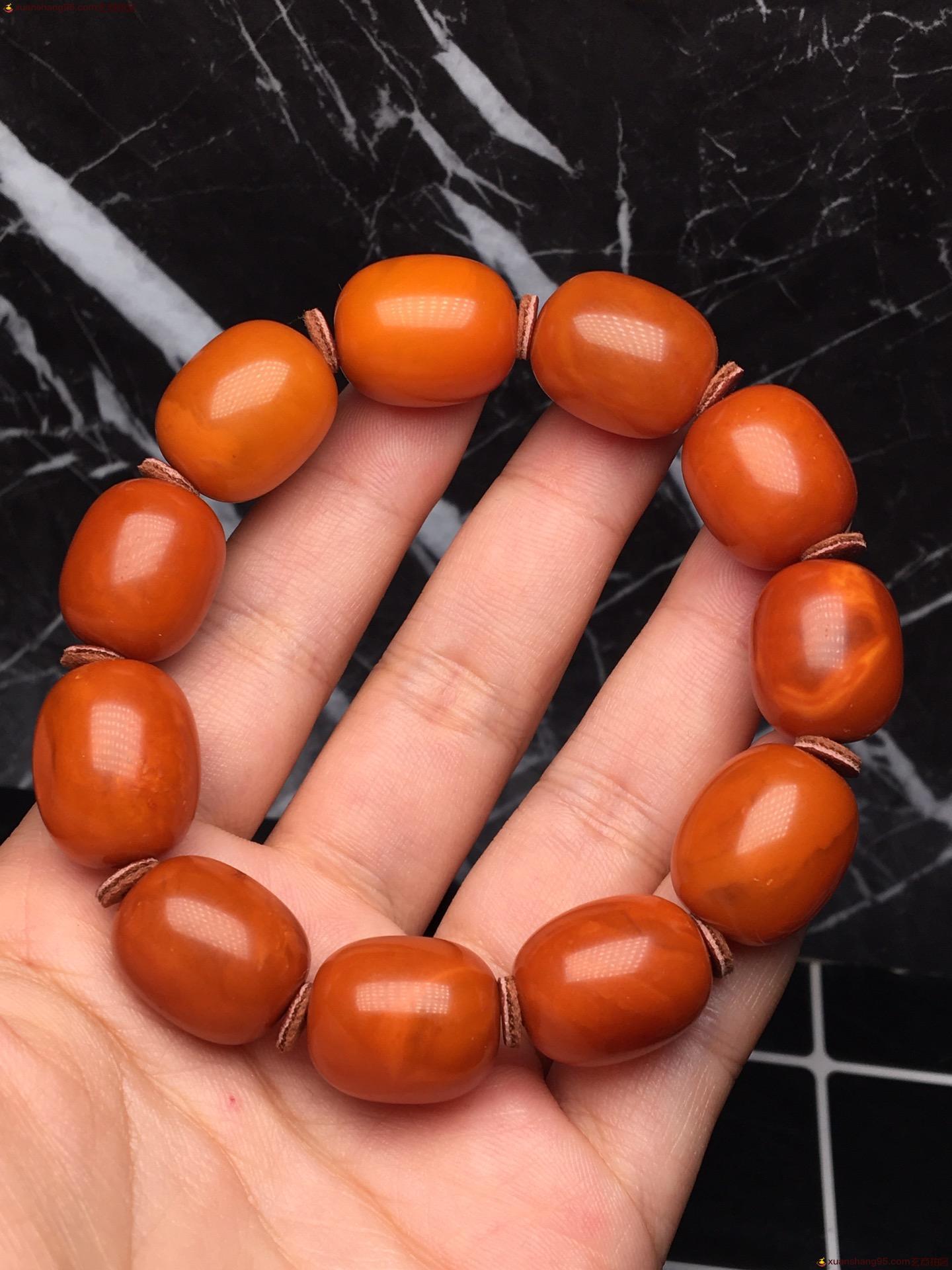 *品 橘皮 蜜蜡手串 皮壳圆润 满蜜 无杂无蜡 尺寸15毫米 重量25克。