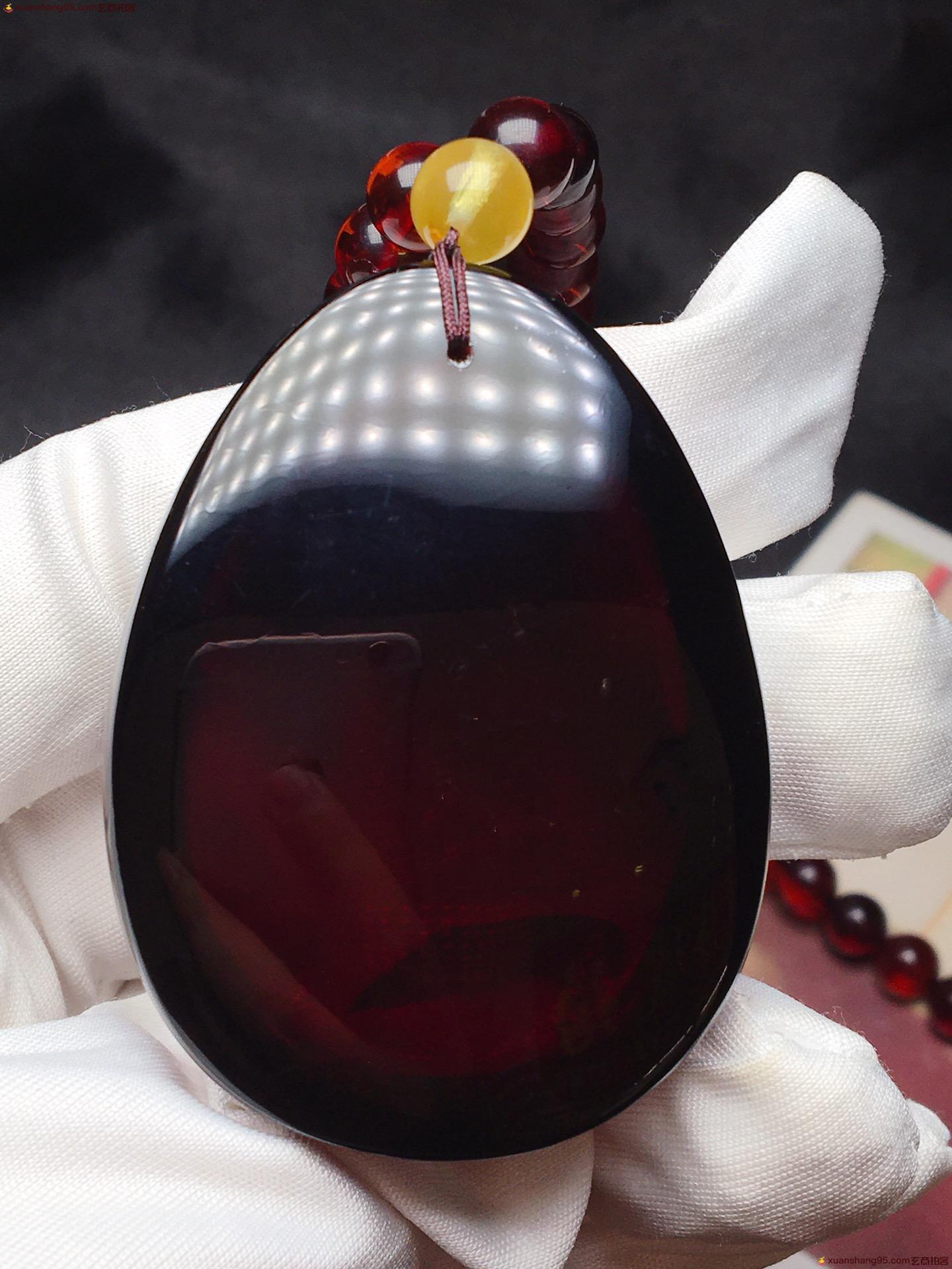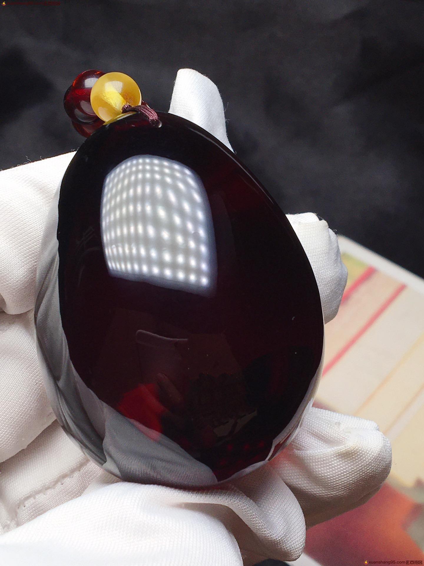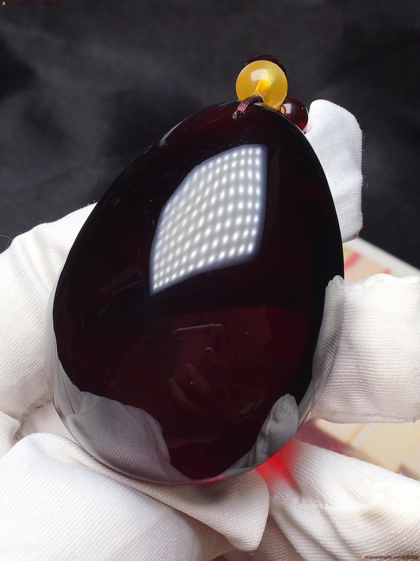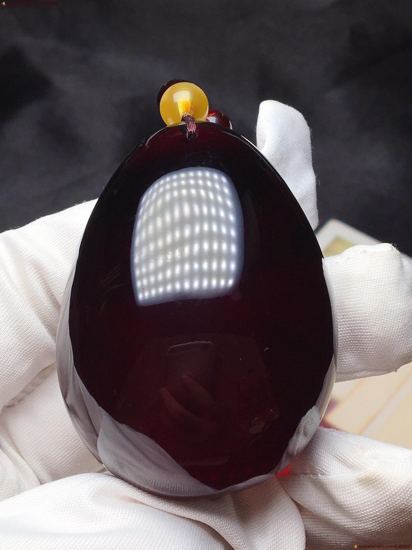 *品 酒红色 血珀套装 净水酒红色 造型端正 左右对称,全品,尺寸38*51*25毫米 链子尺寸6.3毫米 吊坠净重28克。