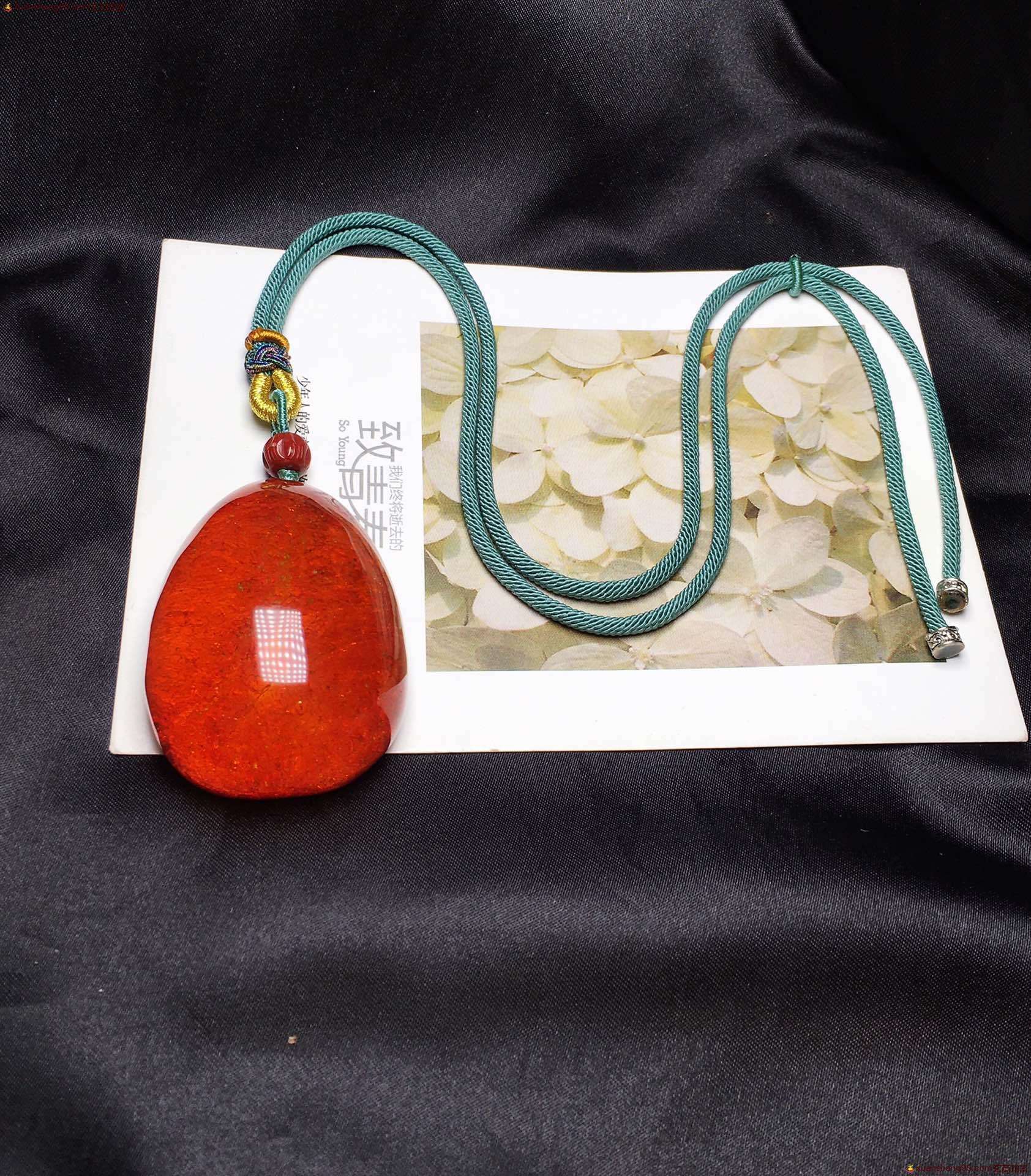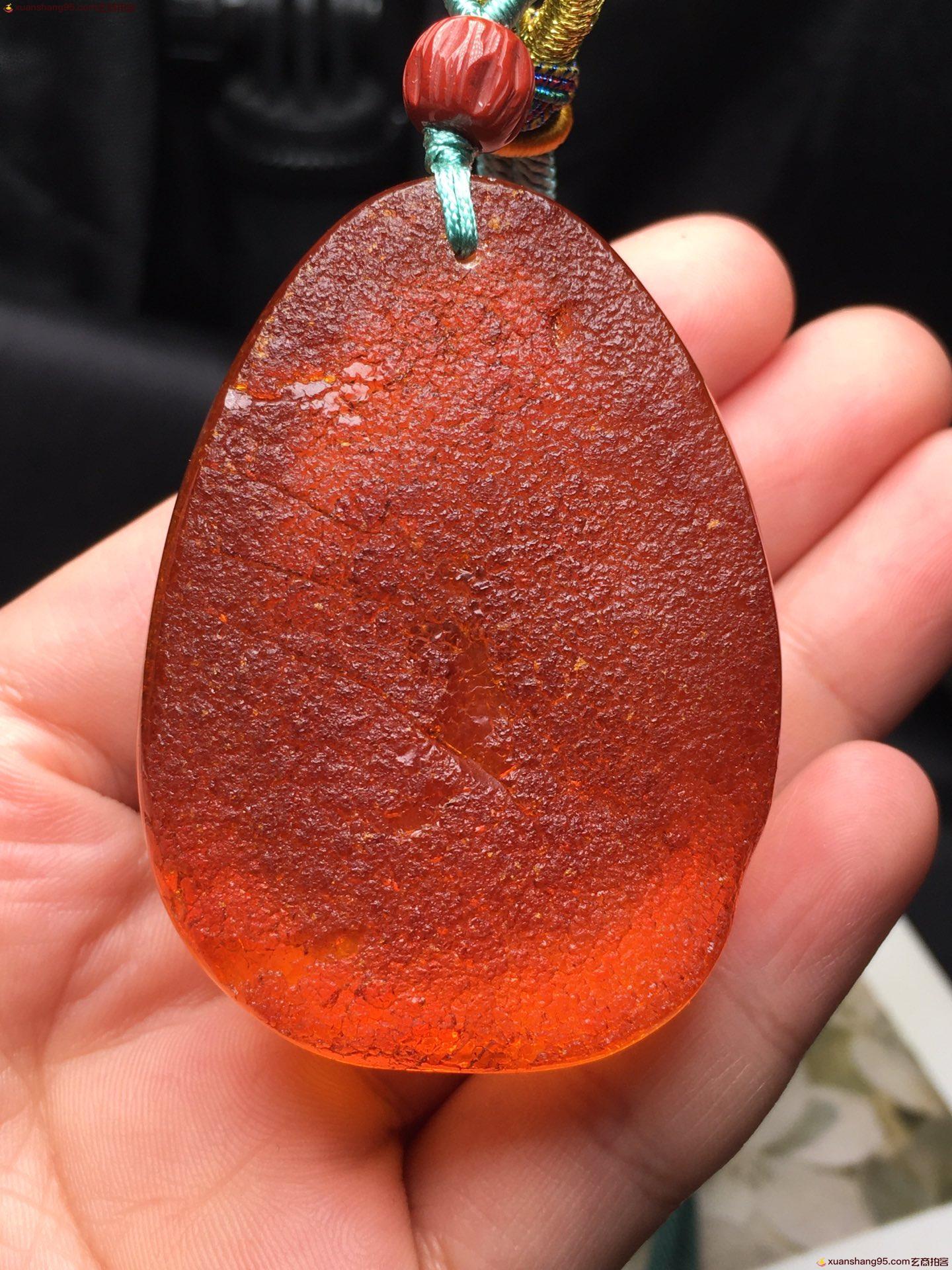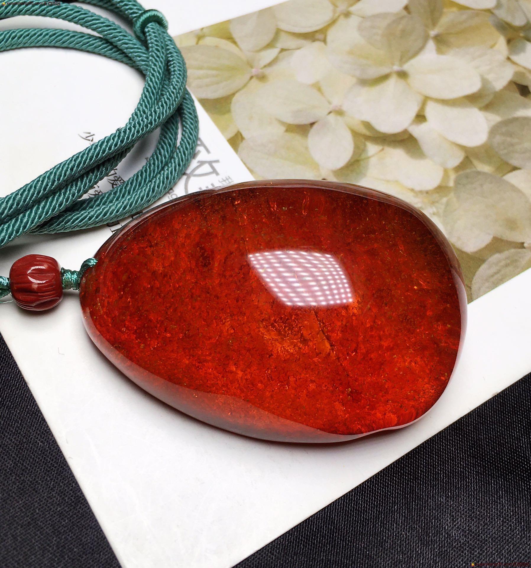 *品 胭脂红 水滴吊坠 造型端正圆润 颜色非常漂亮 纯天然无优化 无杂无裂 背面原皮 。尺寸54*39*23毫米 重量31克。