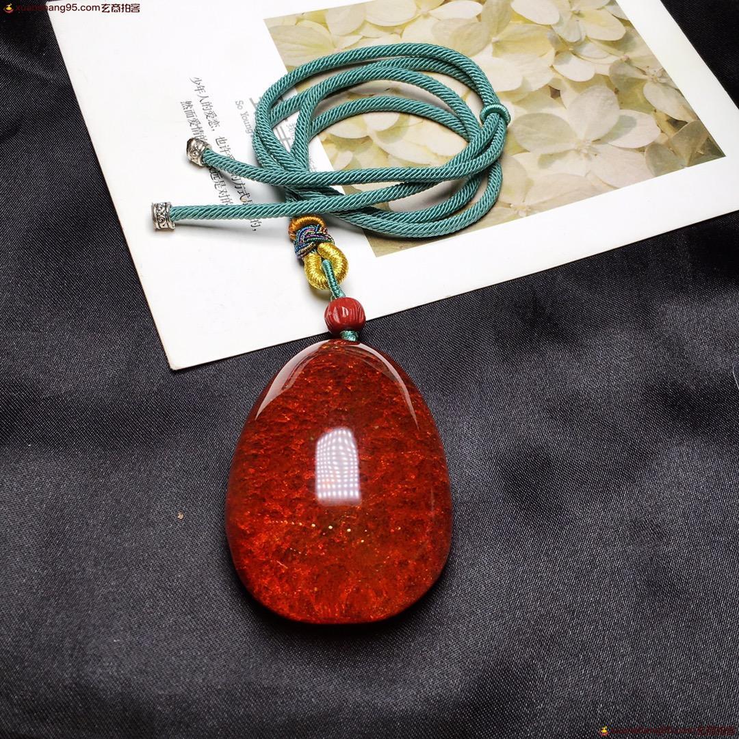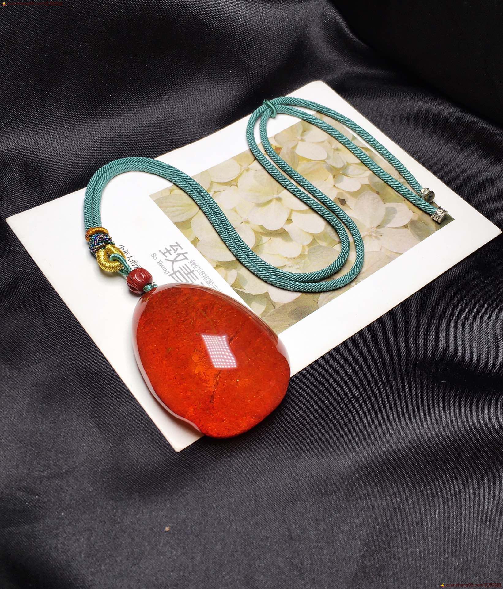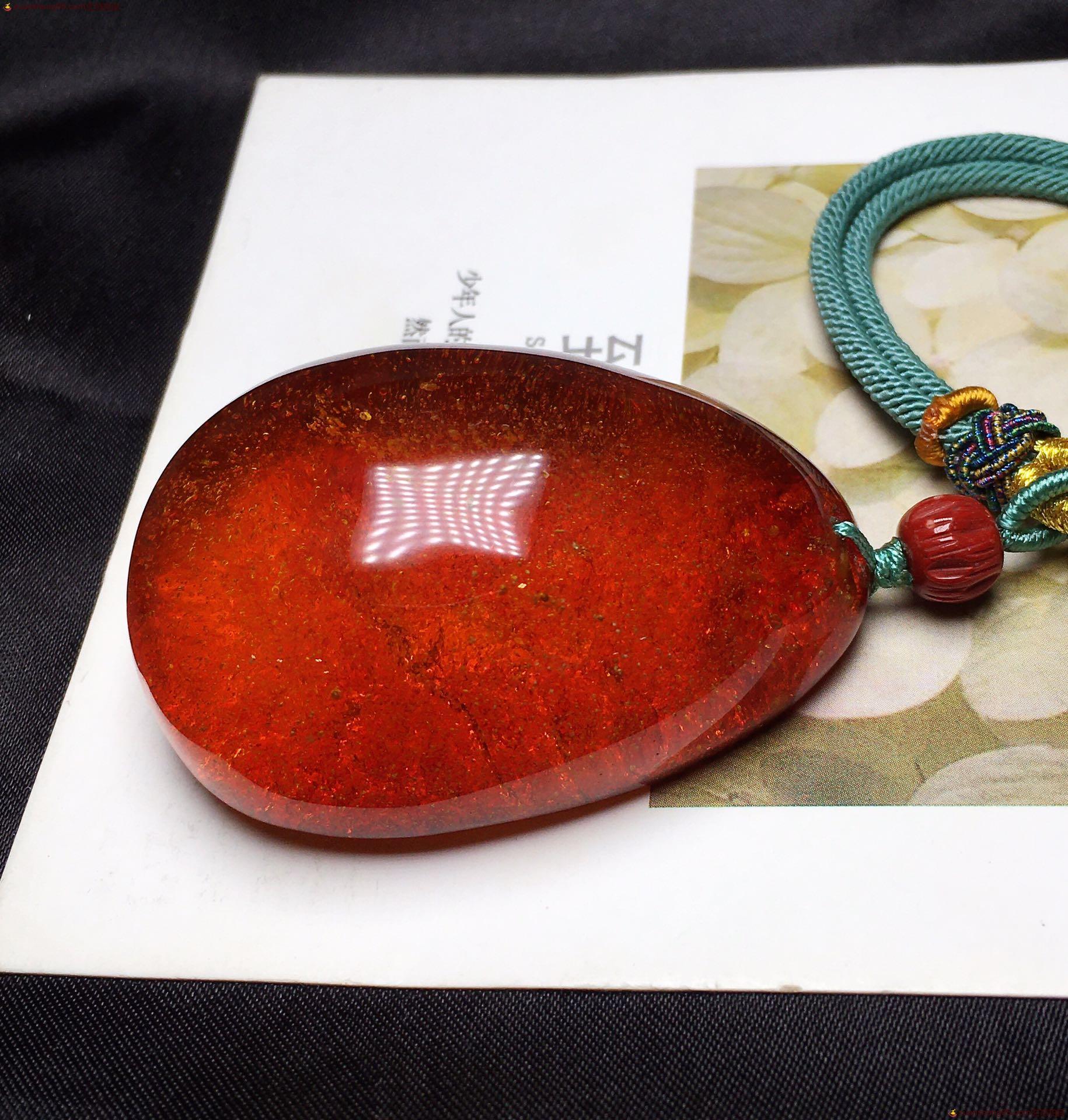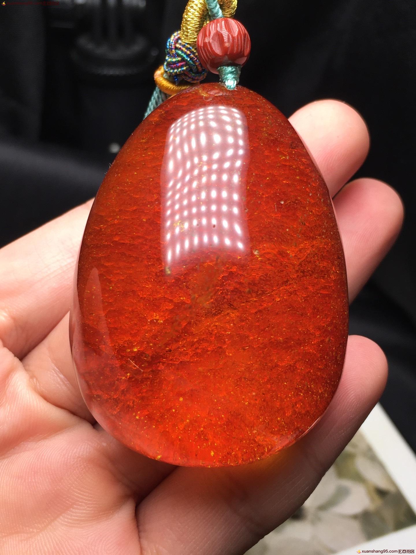 *品 胭脂红 水滴吊坠 造型端正圆润 颜色非常漂亮 纯天然无优化 无杂无裂 背面原皮 。尺寸54*39*23毫米 重量31克。