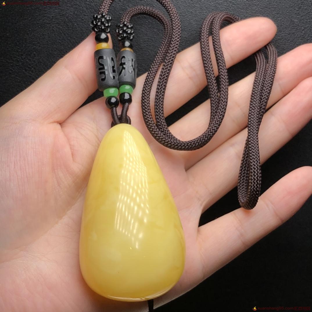 *品 白花蜜蜡 水滴吊坠 纯天然 无优化 无裂 蜡质浓郁 纹理漂亮 尺寸38*65*26哈密 重量40克。