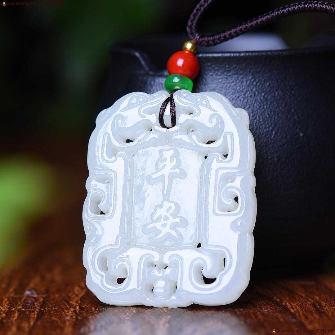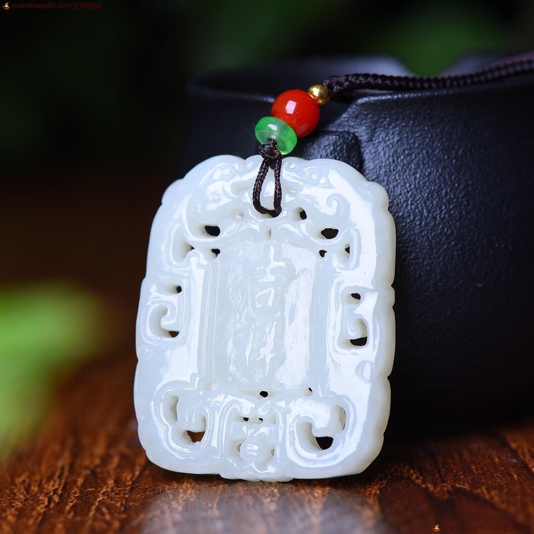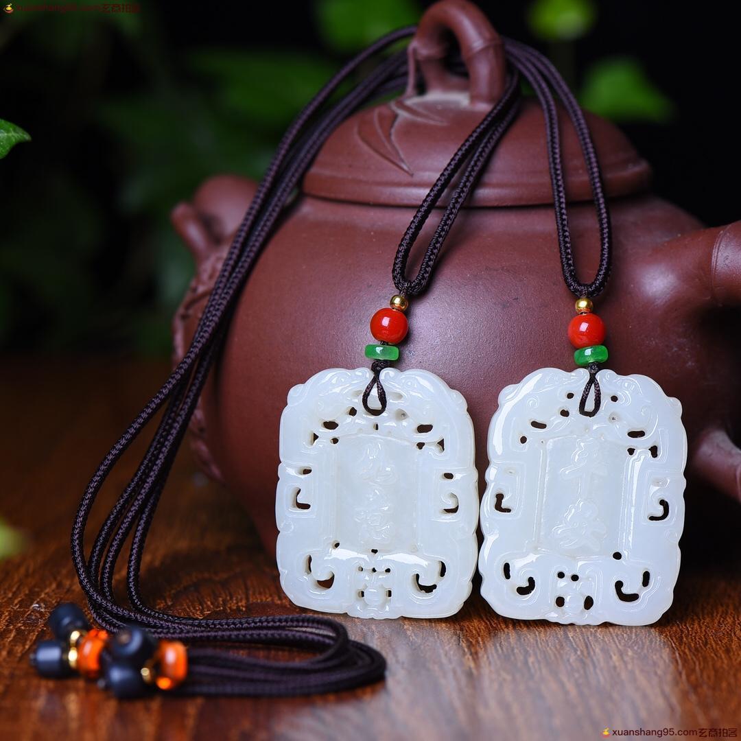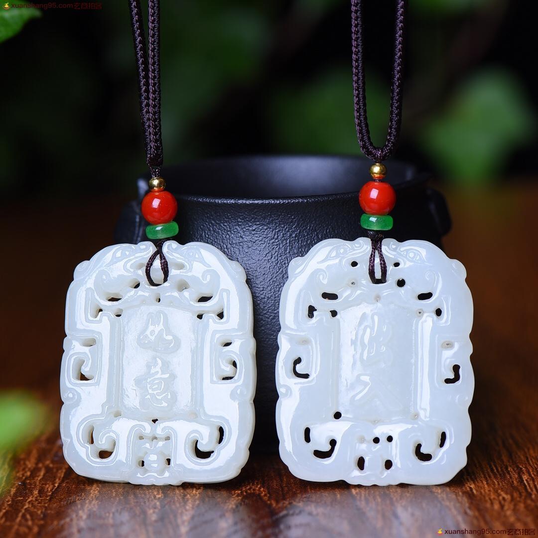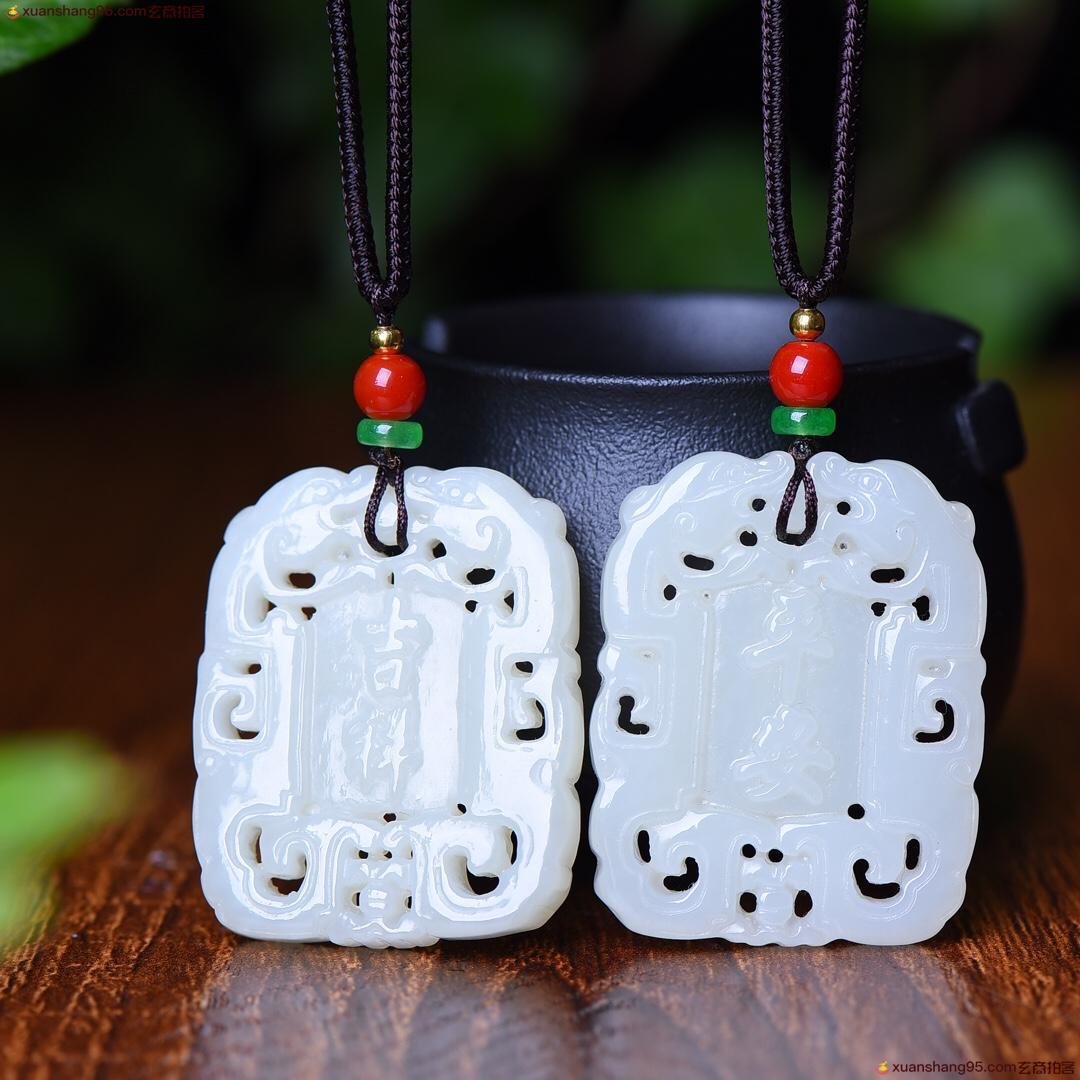和田玉 双面吉祥牌 雕工一流 料子上等 尺寸35*44毫米。