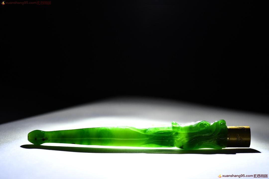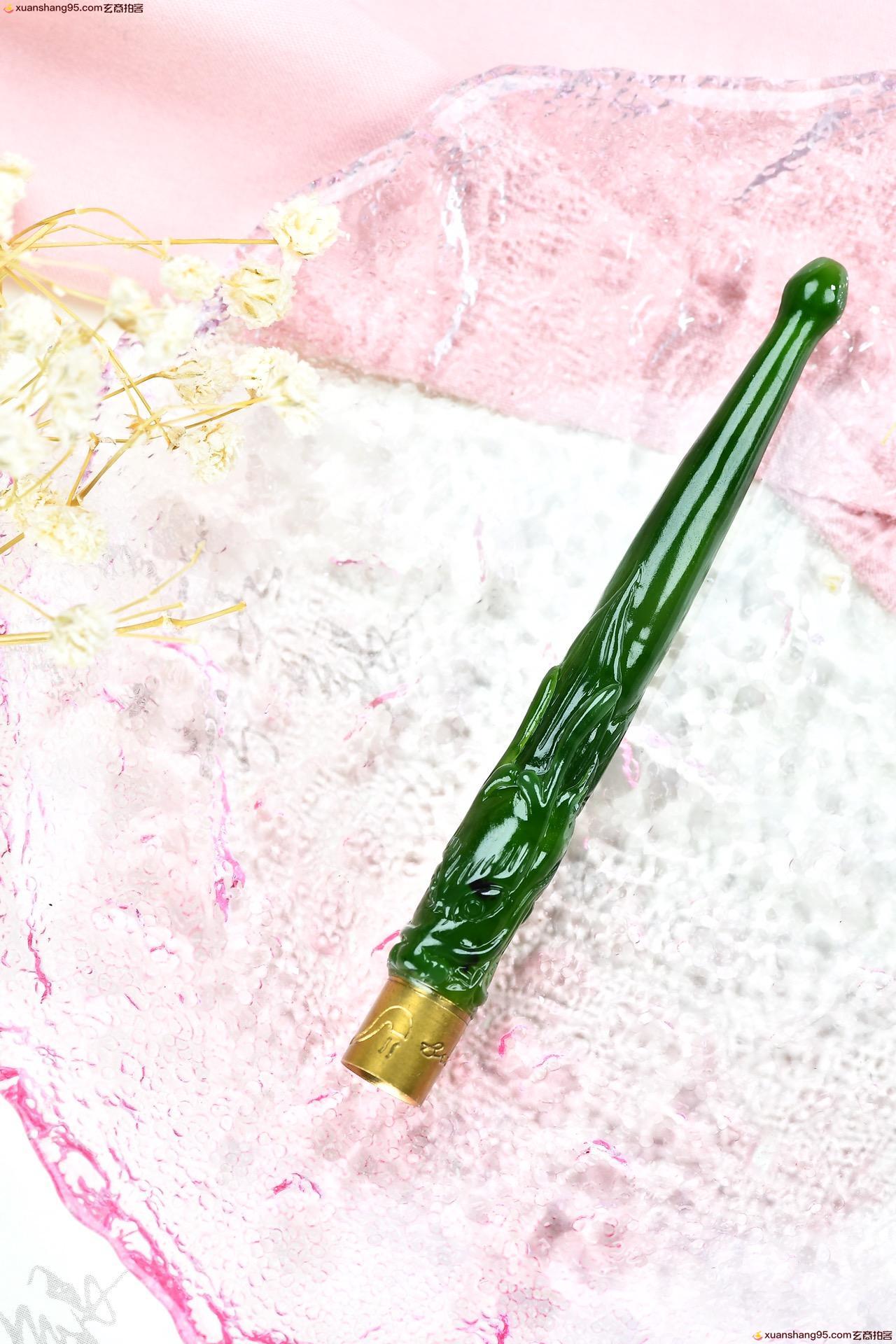 龙行天下 烟嘴 成色漂亮 玉面光滑 手感细腻 设计十分巧妙,巧雕龙头,尺寸9.*10*13毫米 重量14克。