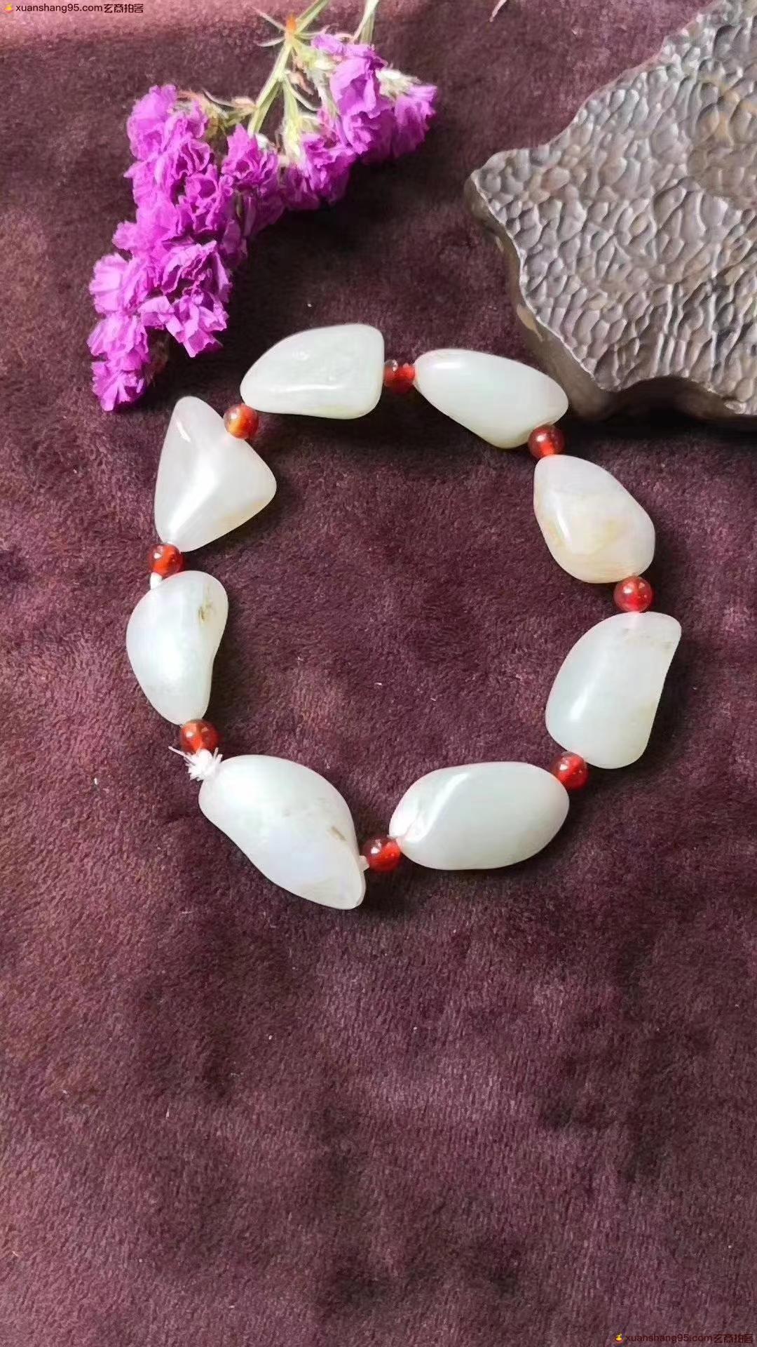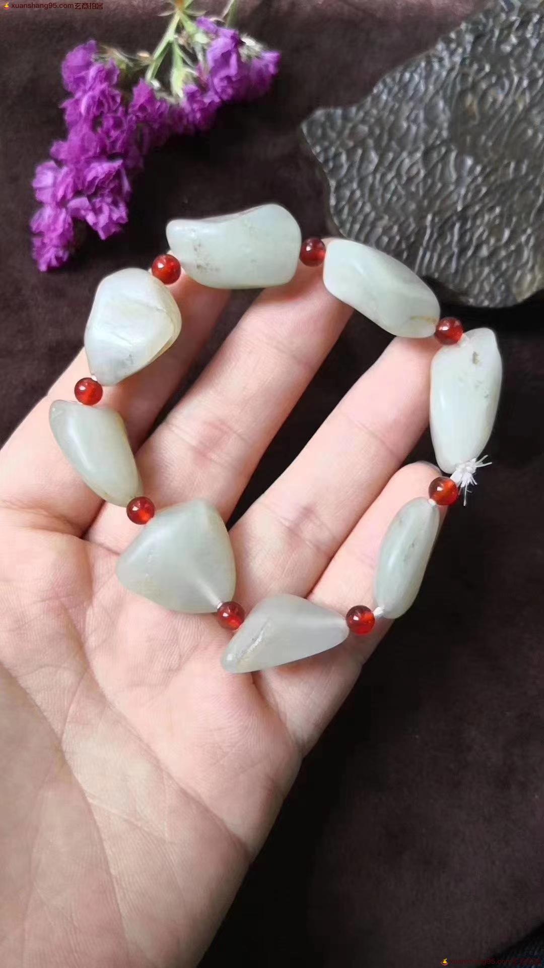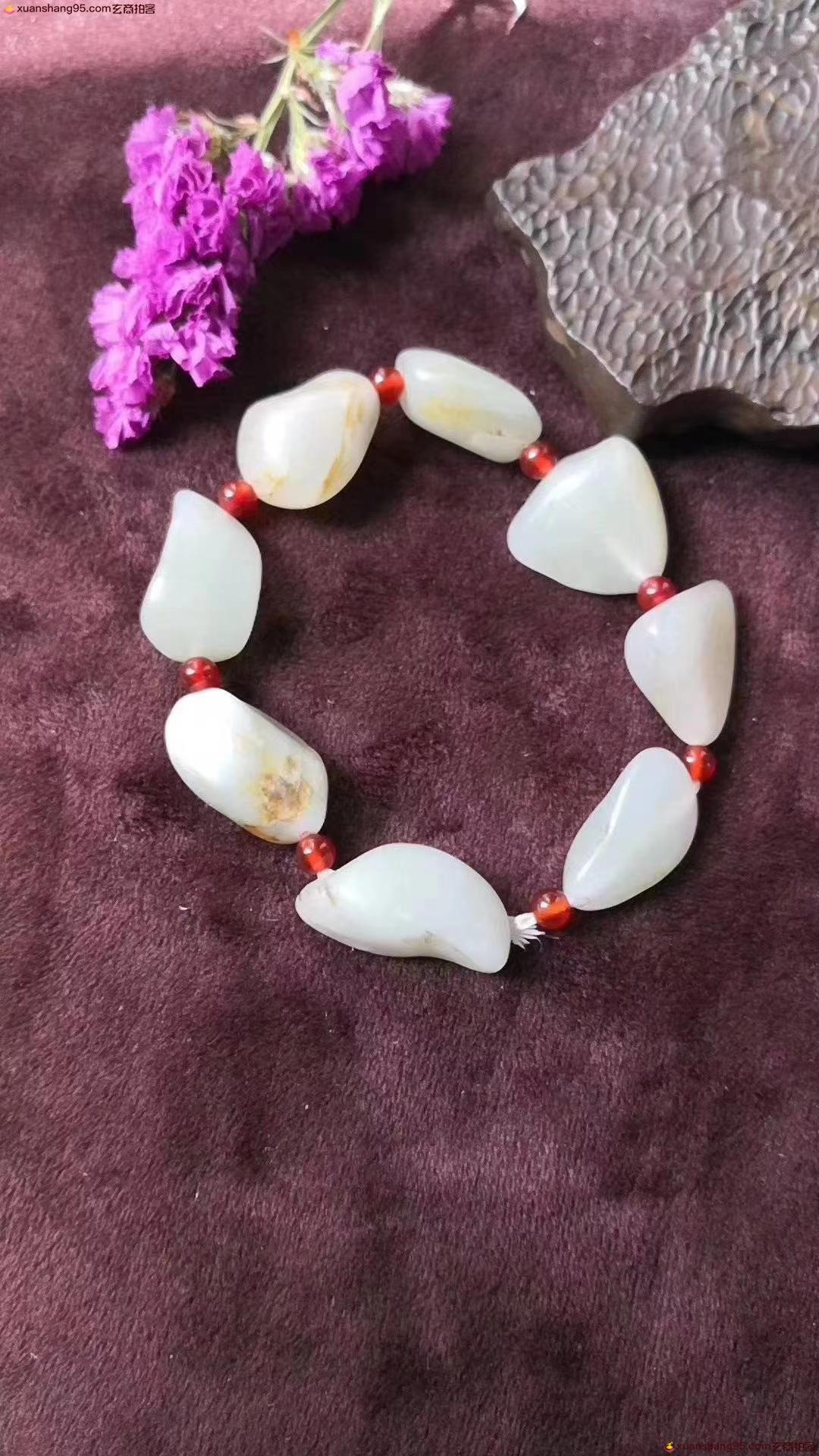 和田玉籽料 手串 颗颗精选 原皮 原石 料细过灯 油润度*级好,尺寸2.2*1.8厘米