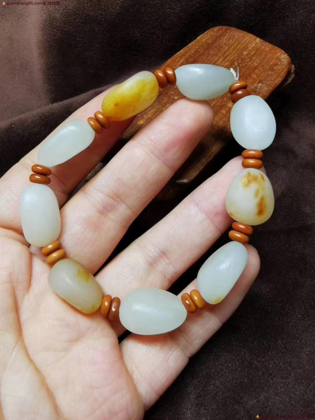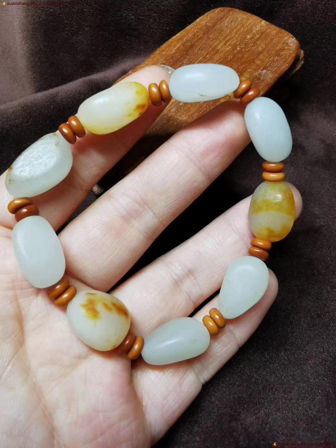 和田玉 原石手串 颗颗饱满 圆润 带皮色 毛孔 油润 度*级棒 重量33克。