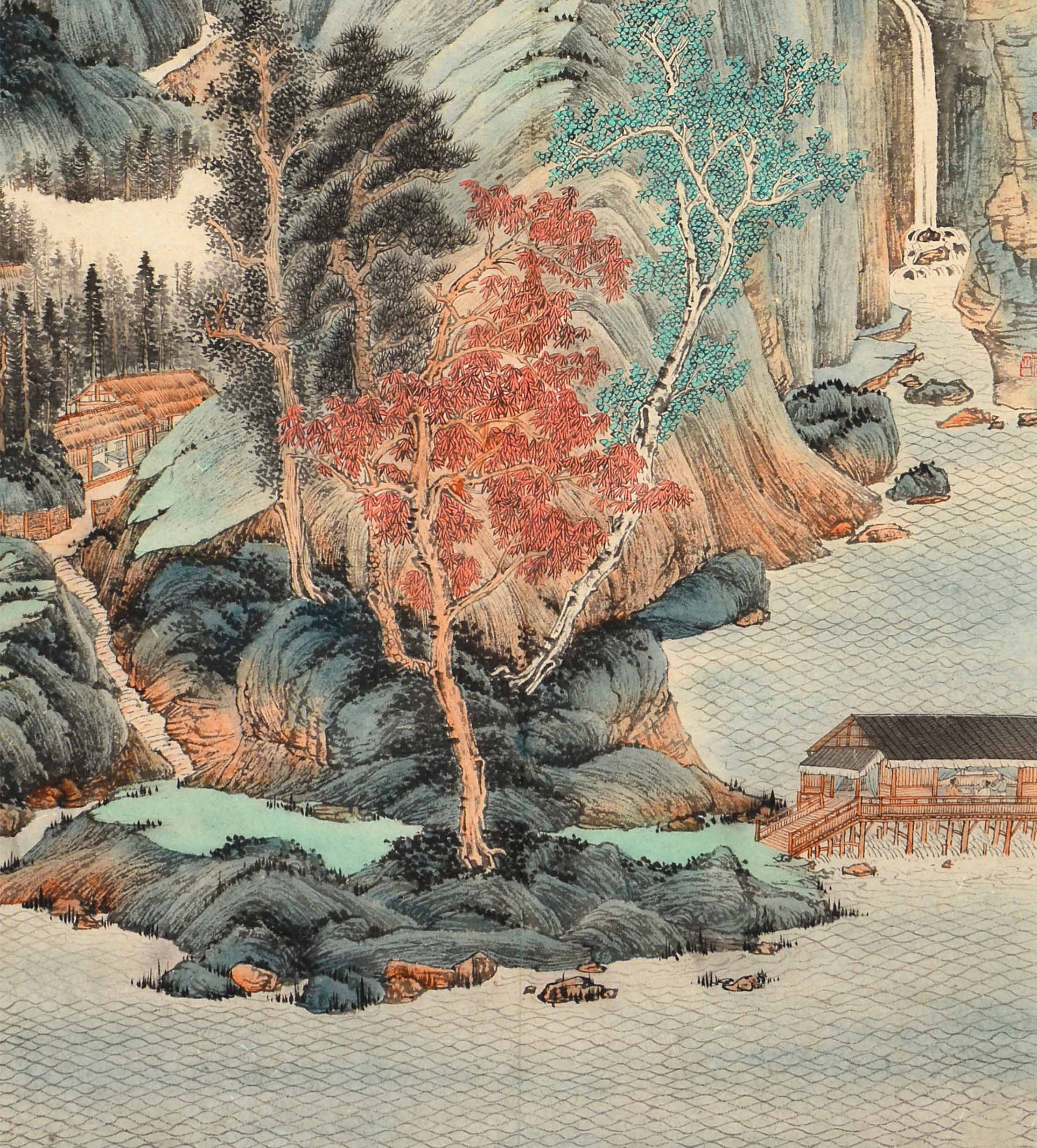 罗玉合《溪山人家》精品工笔 刻画严谨