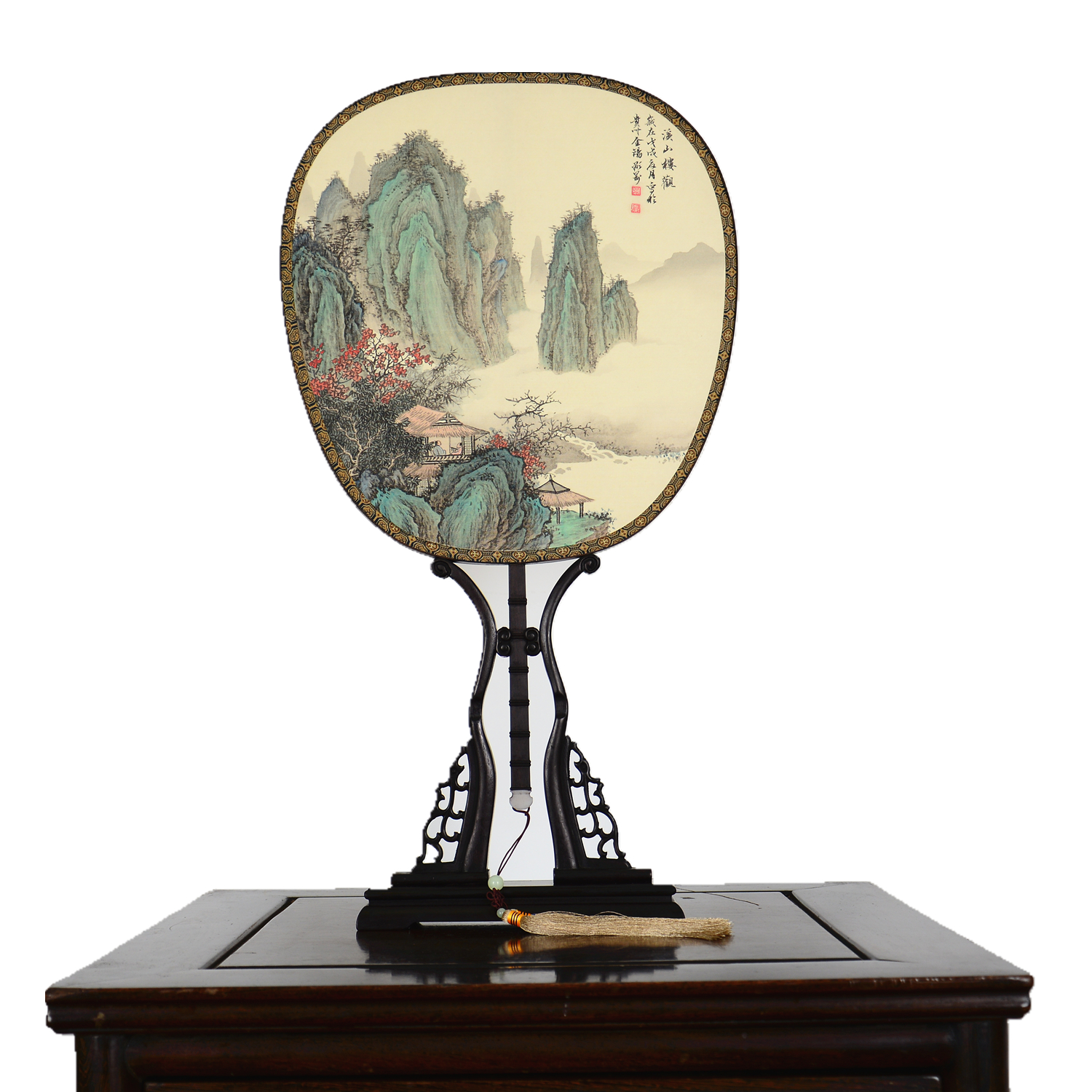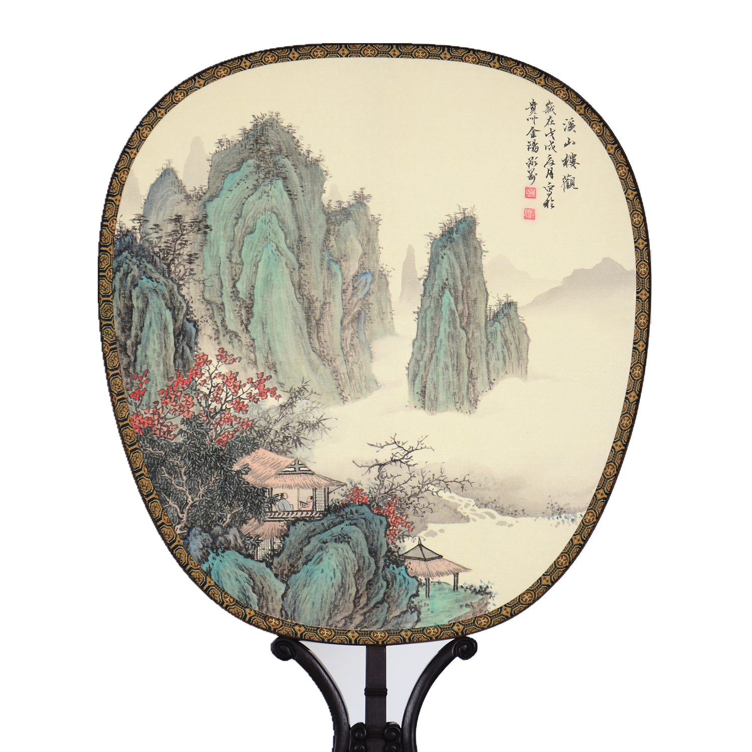 吴显刚 《溪山楼观》台屏团扇 精工笔山水