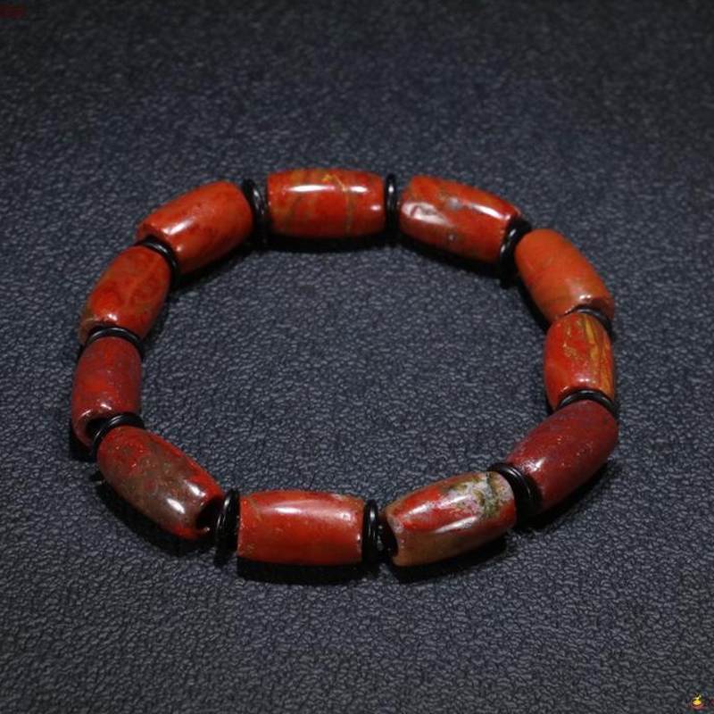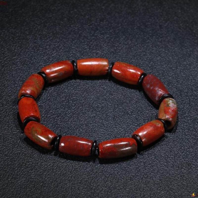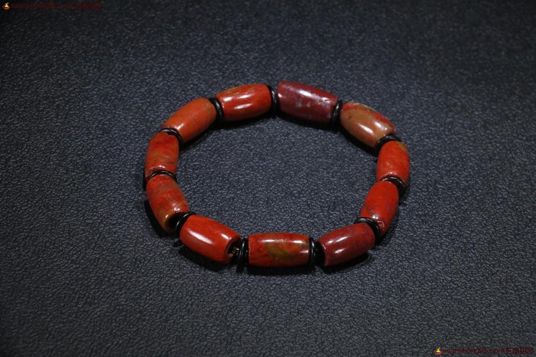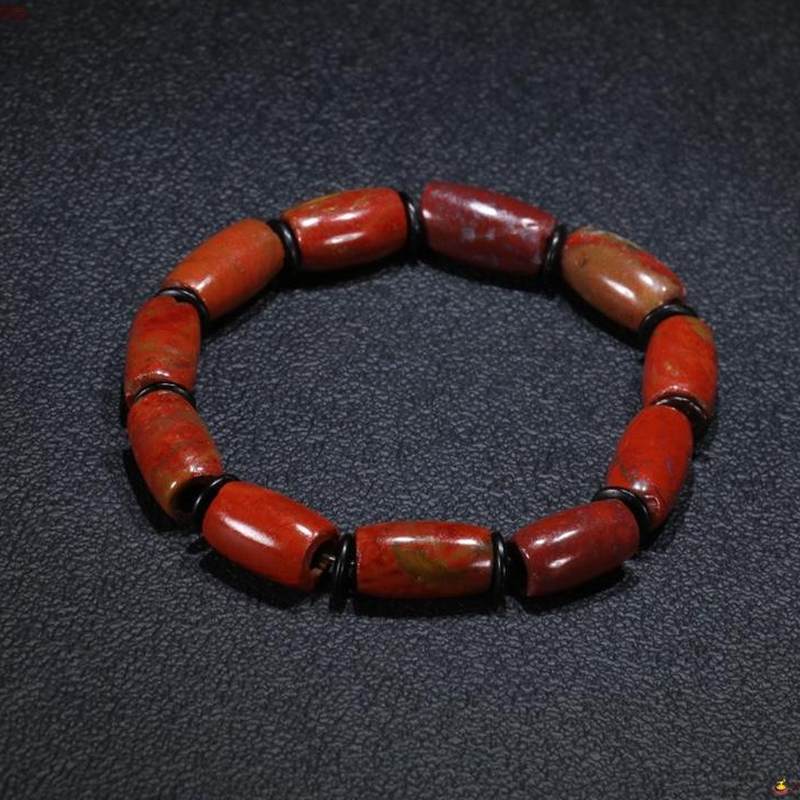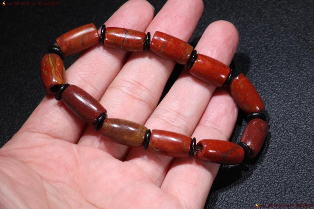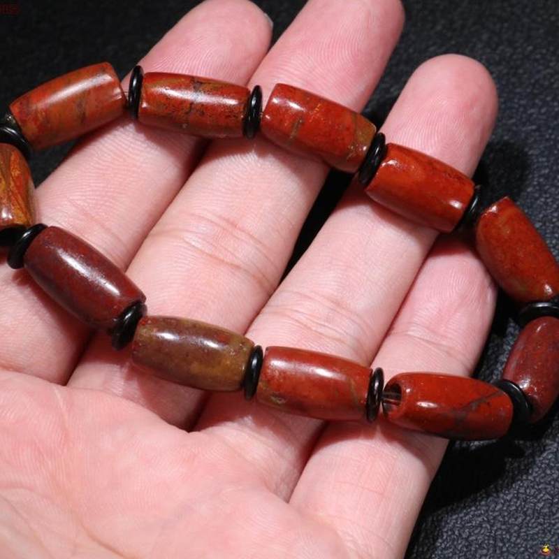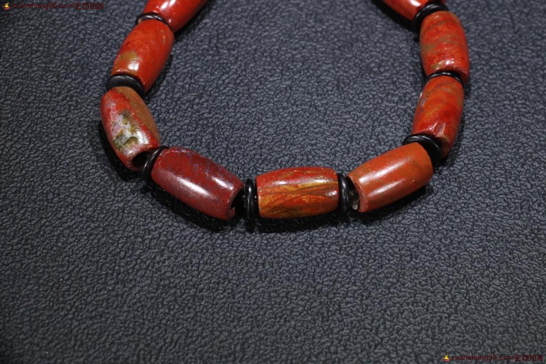 红玛瑙桶珠手串,尺寸:1.88**0.92cm 高年份战国红玛瑙桶珠手串,线条流畅清晰,包浆油润风化完美,大开门美珠,品相完好。