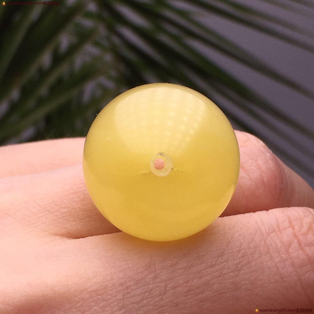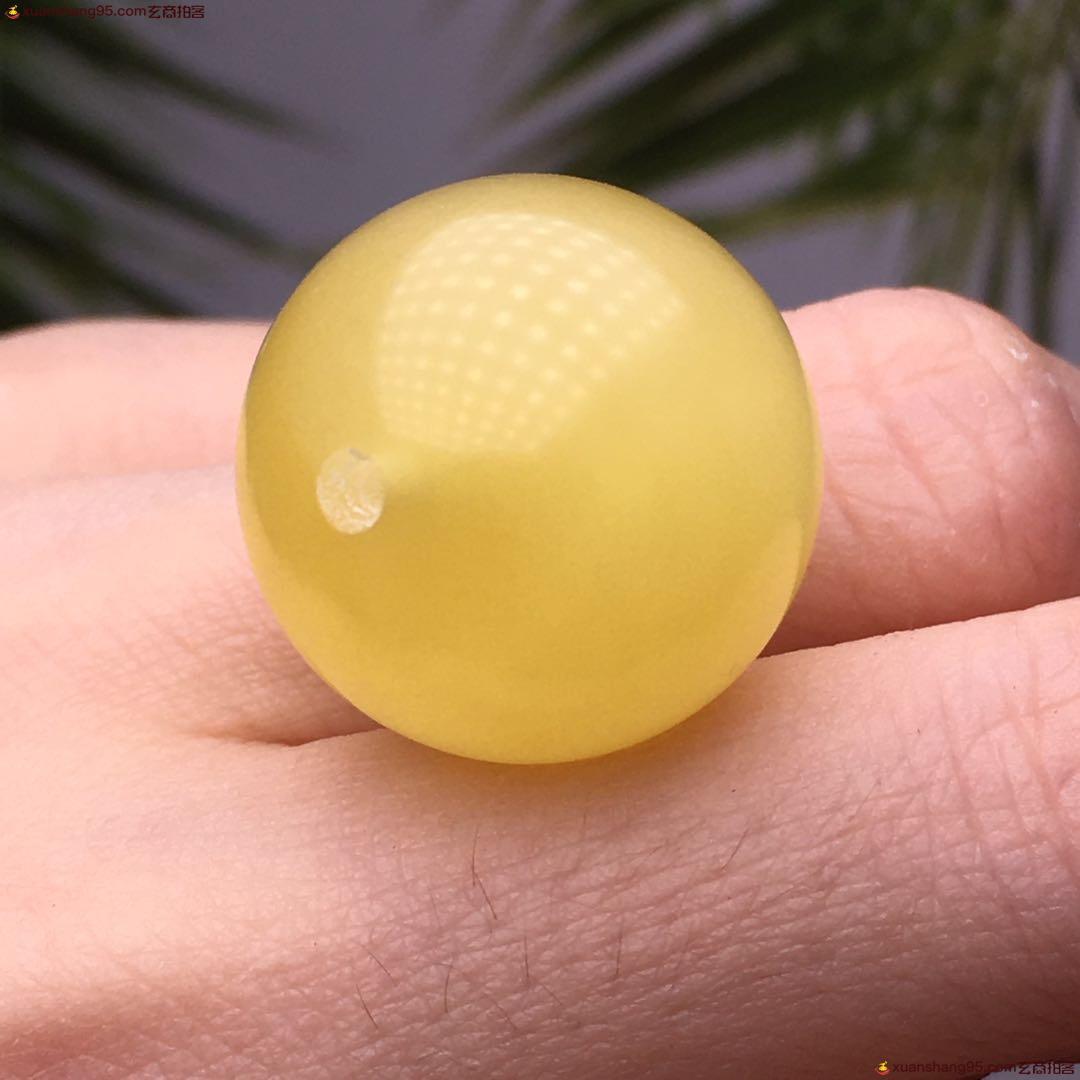 纯天然 鸡油黄 蜜蜡单珠 满蜜 鸡油黄 无优化 无烤色 孔道处有微微瑕疵 不影响佩戴。尺寸18毫米。