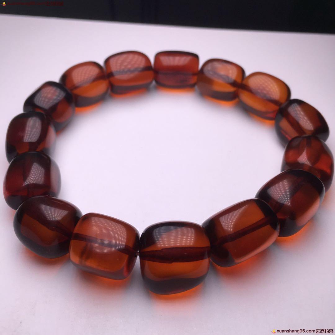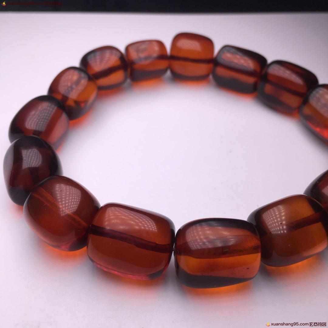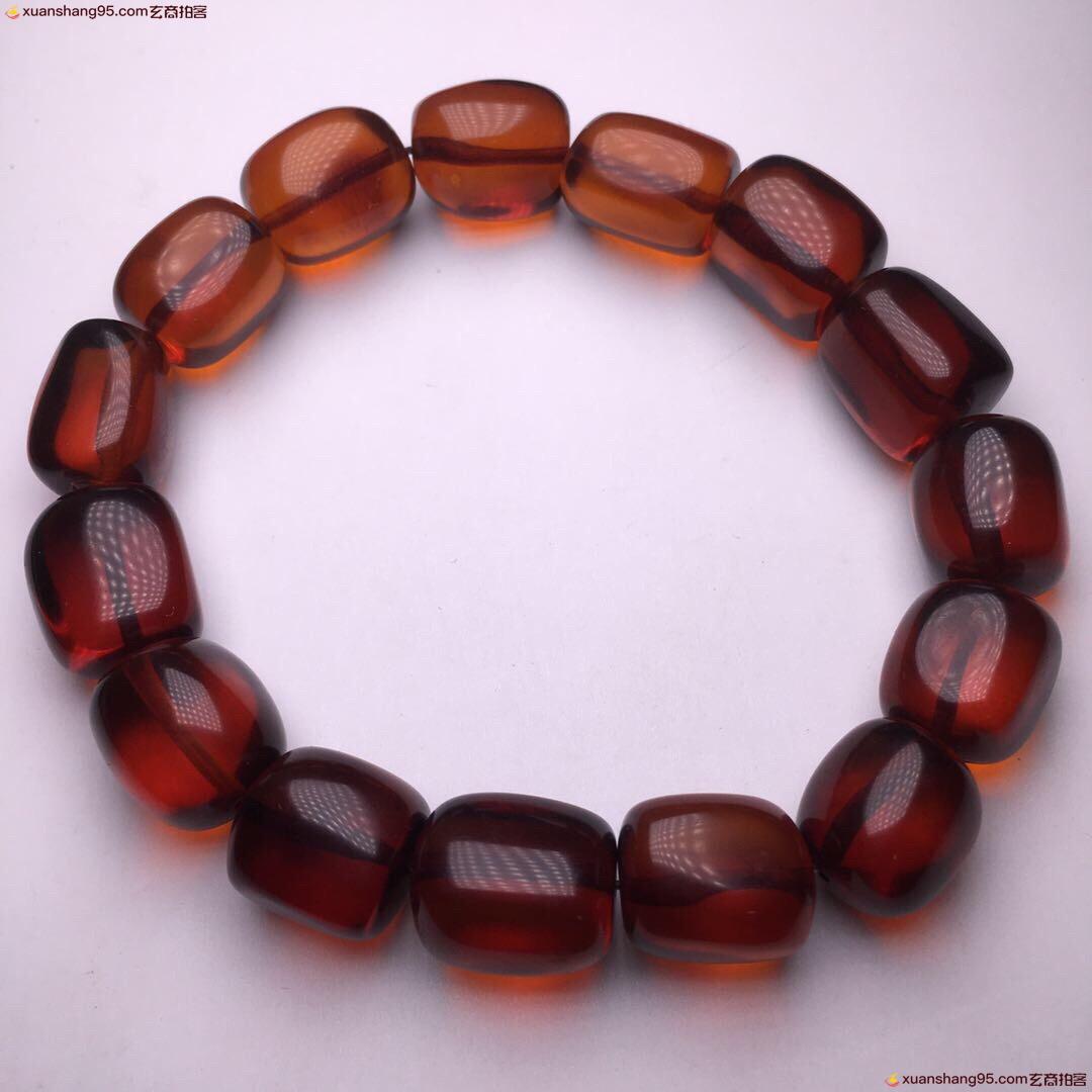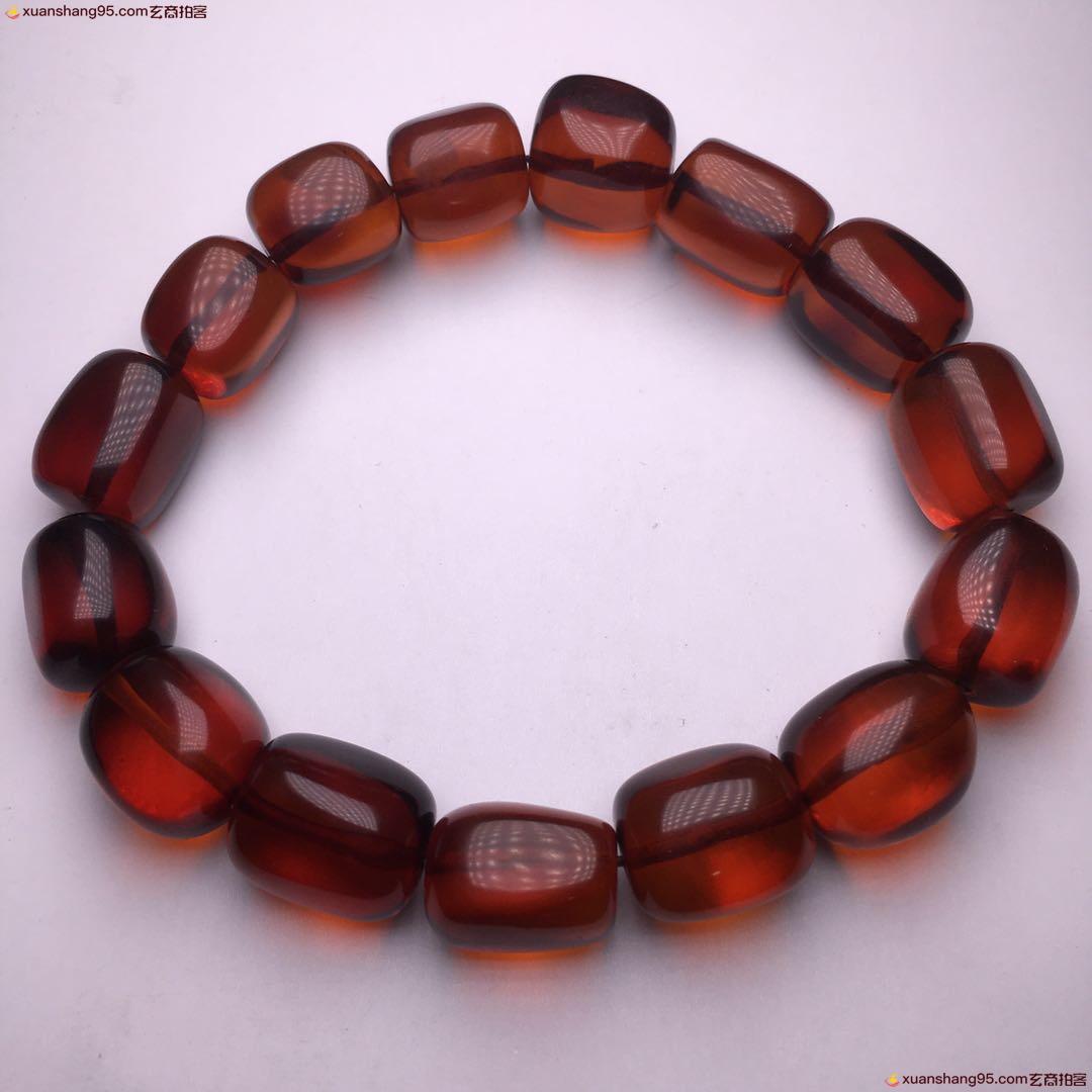 精品 酒红色 血珀手串 净水通透 颗颗饱满 圆润 纯天然 原矿 品质如图,重量31克。