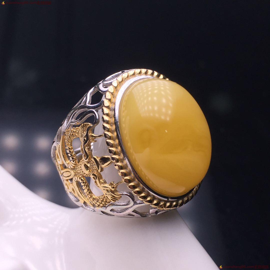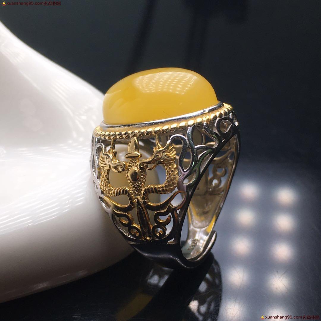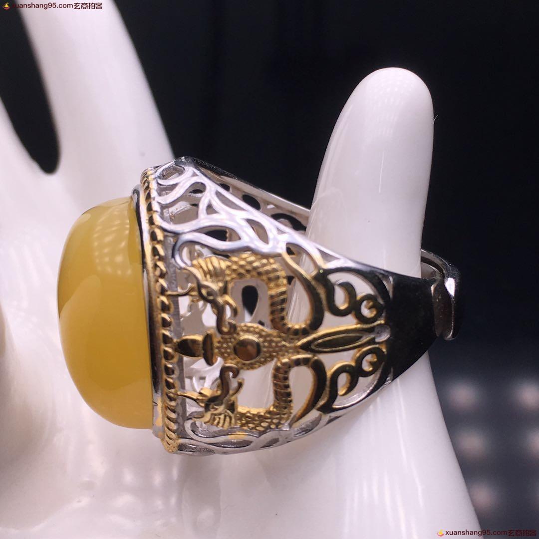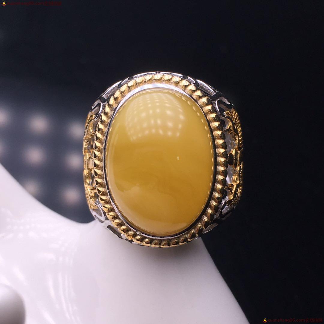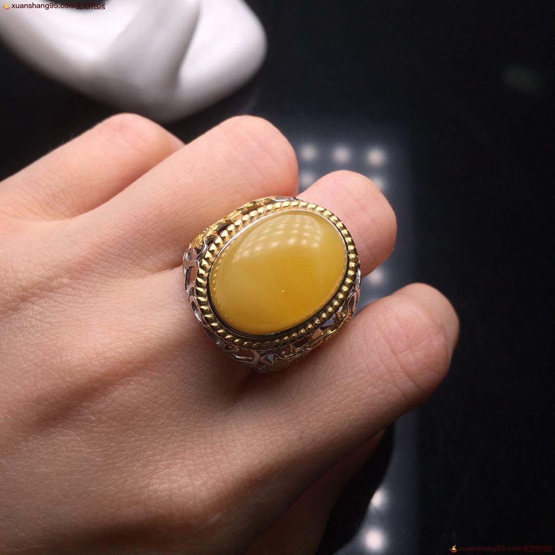 *品 蜜蜡 镶银戒指 蜡质浓郁 纯银镶嵌 活口 纯天然 无优化 尺寸13*11毫米。