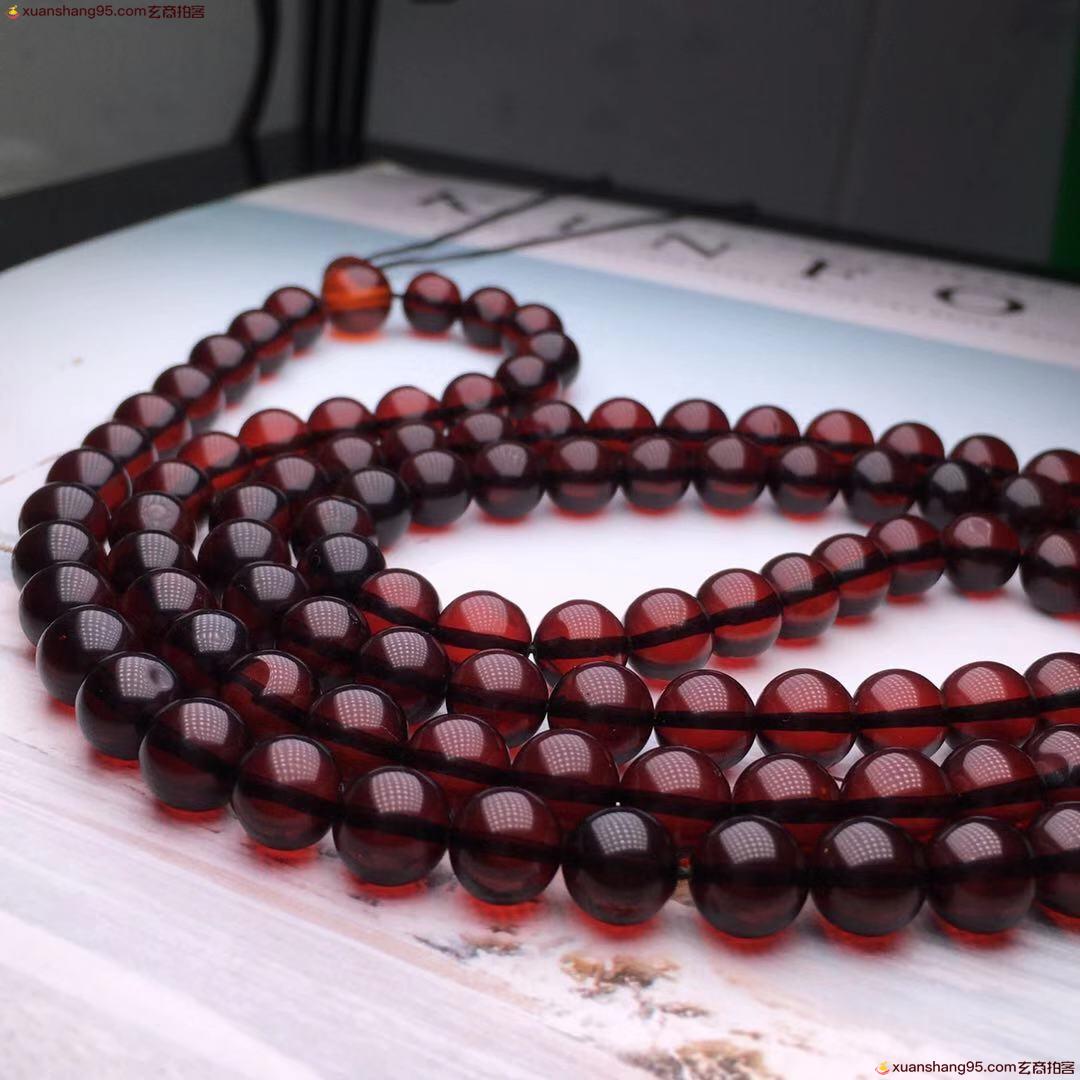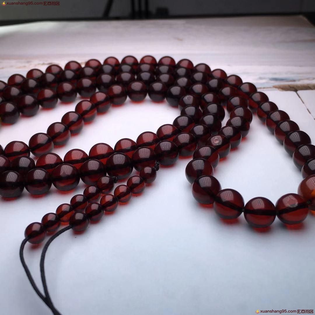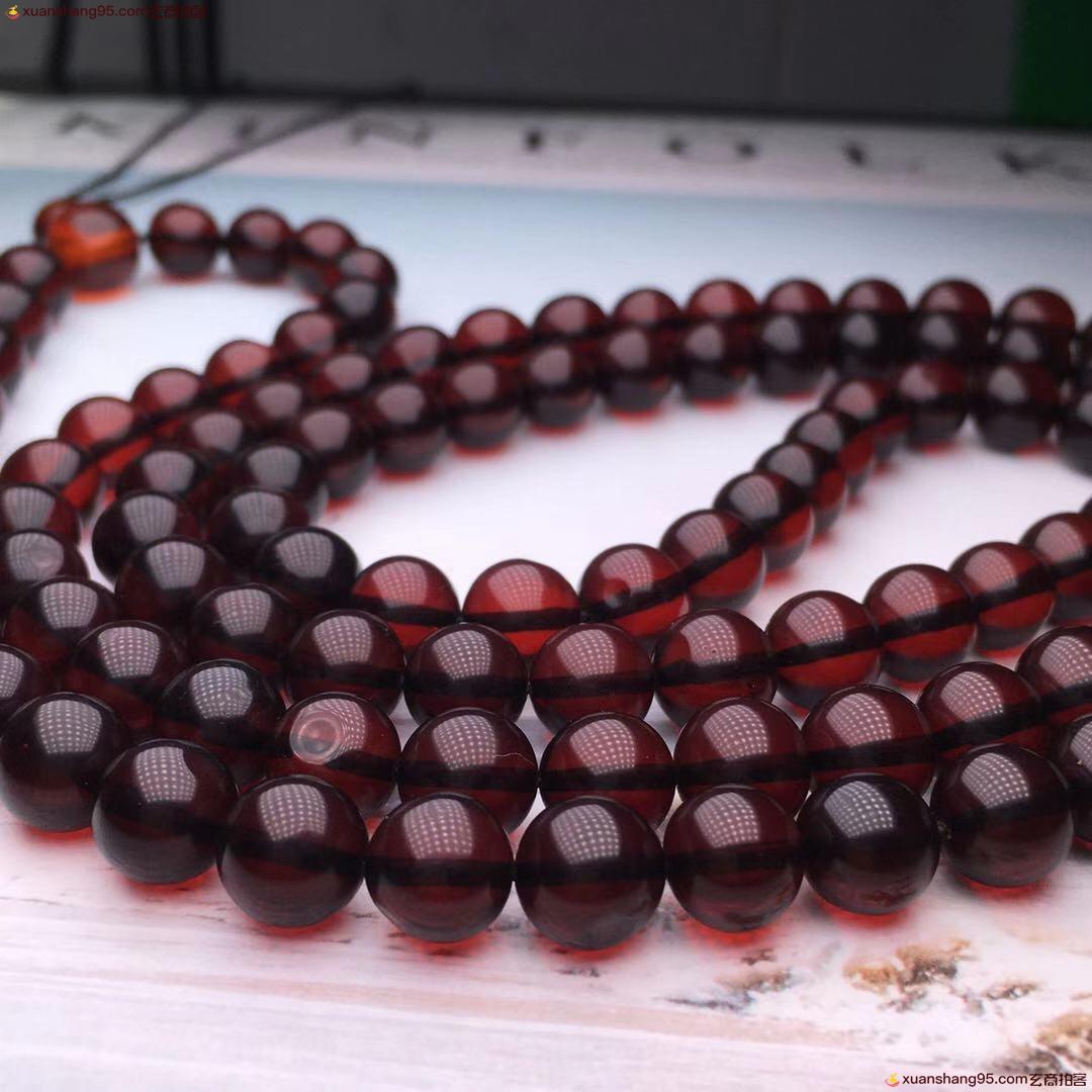 *品 酒红色 血珀108血珀