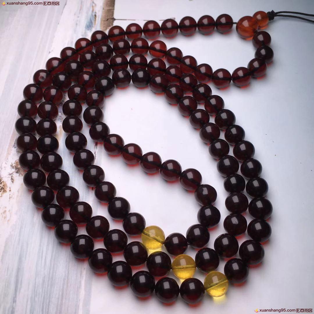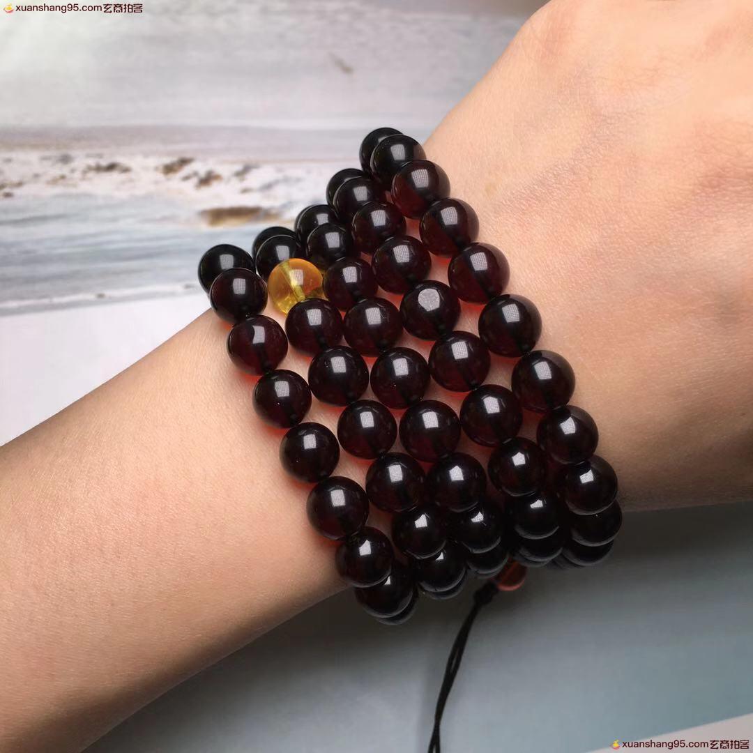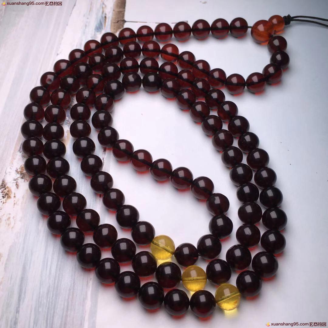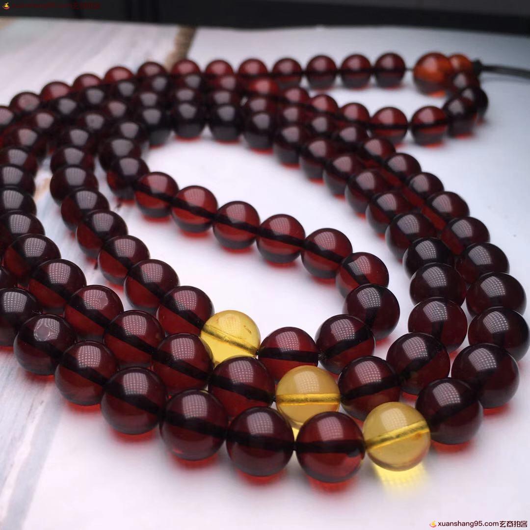 *品 酒红色 血珀108血珀
