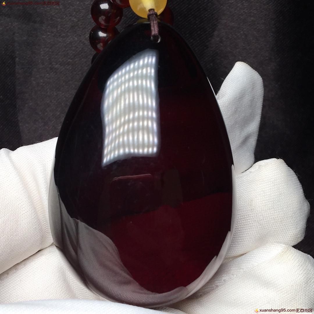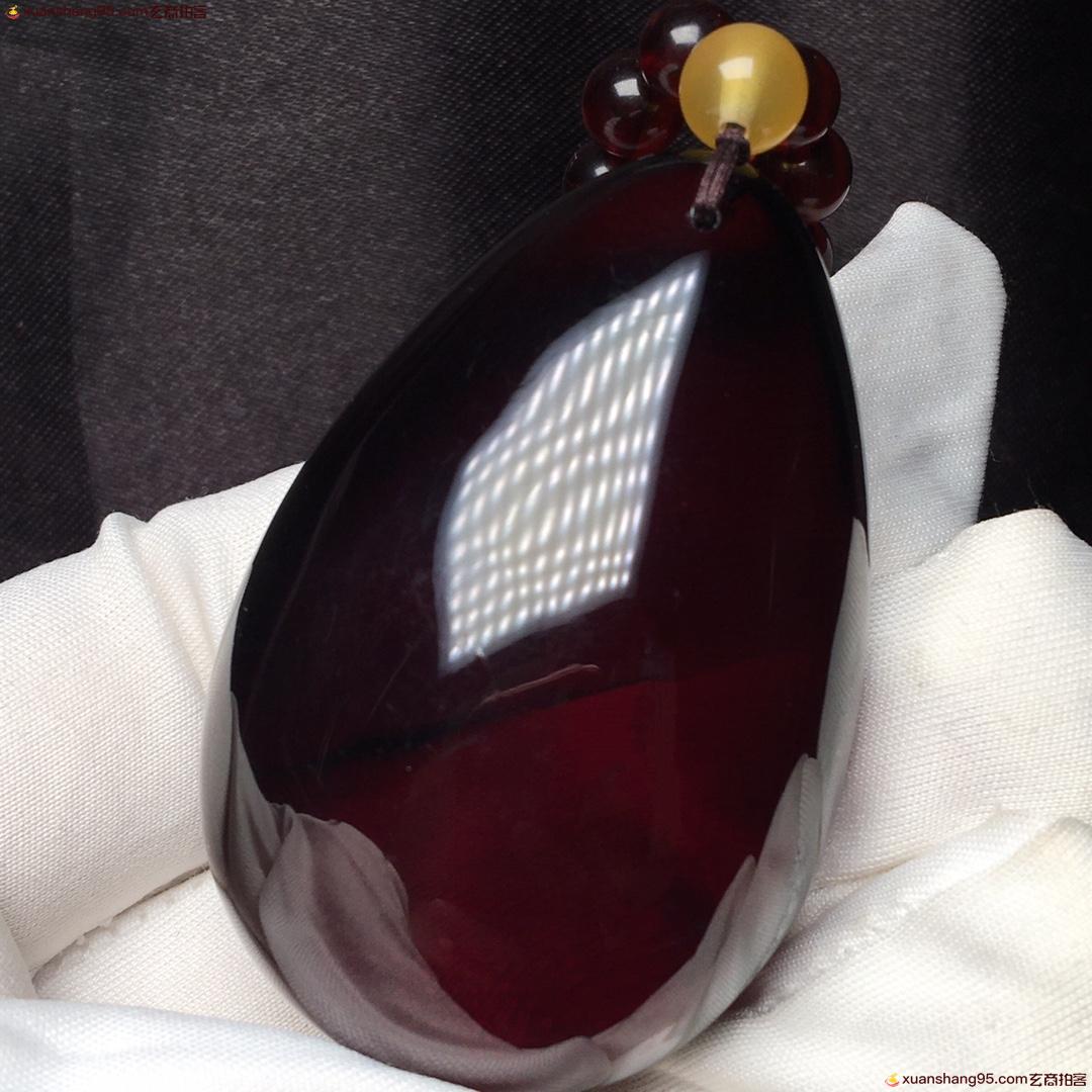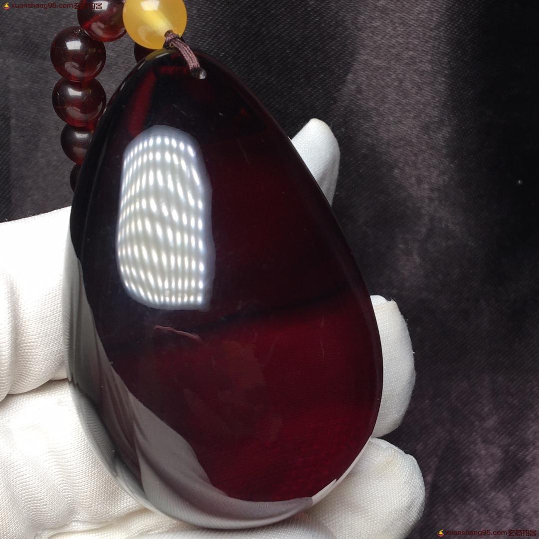 *品 血珀套装 净水酒红色 全品无杂 无裂 吊坠尺寸54*35*21毫米 总重量38克。