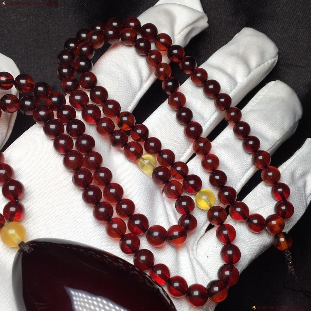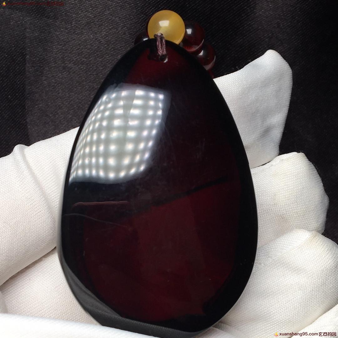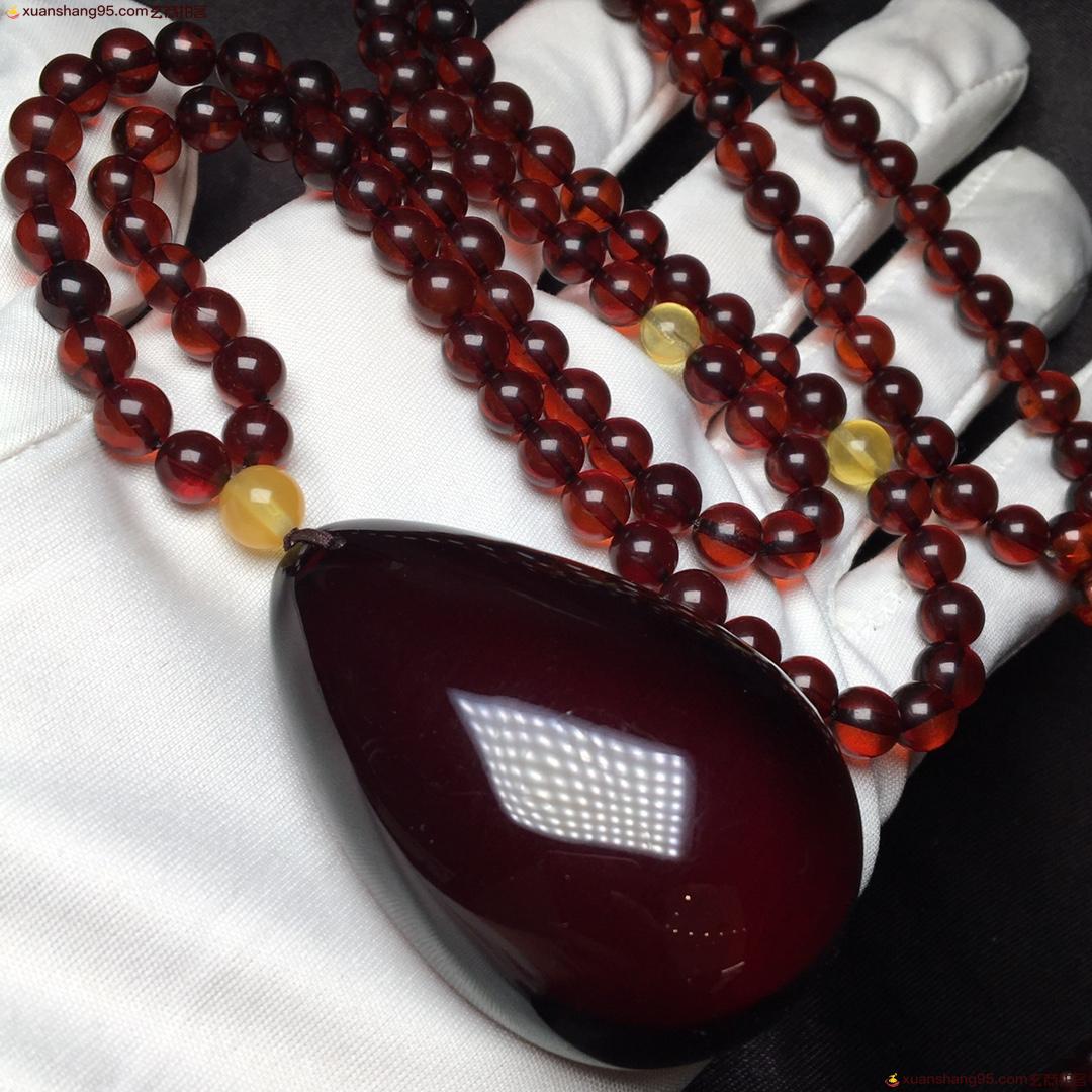 *品 血珀套装 净水酒红色 全品无杂 无裂 吊坠尺寸54*35*21毫米 总重量38克。