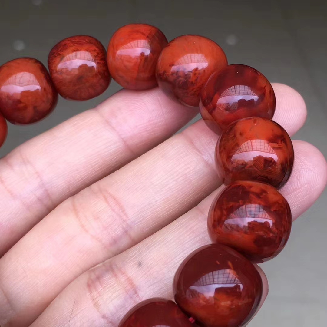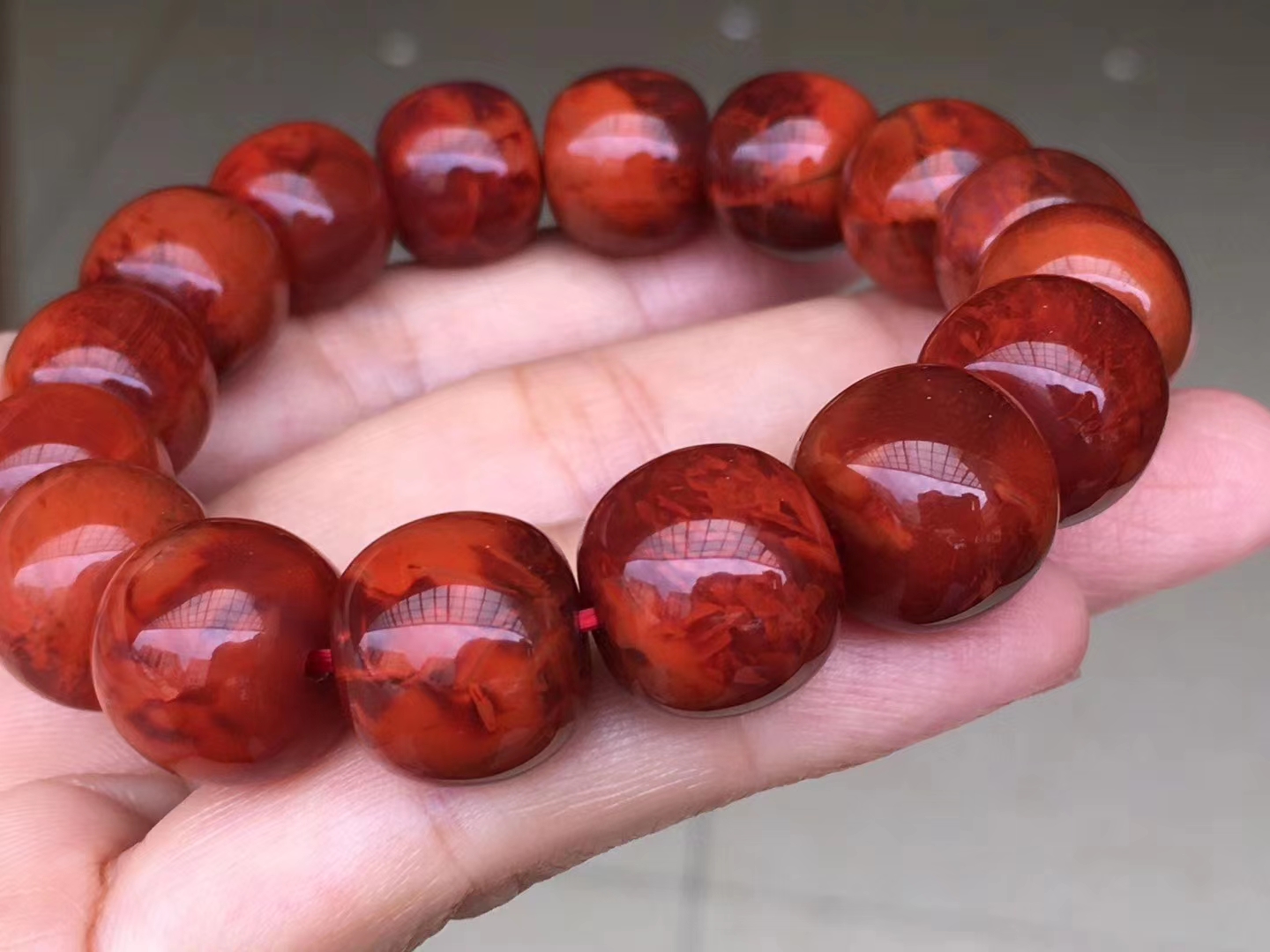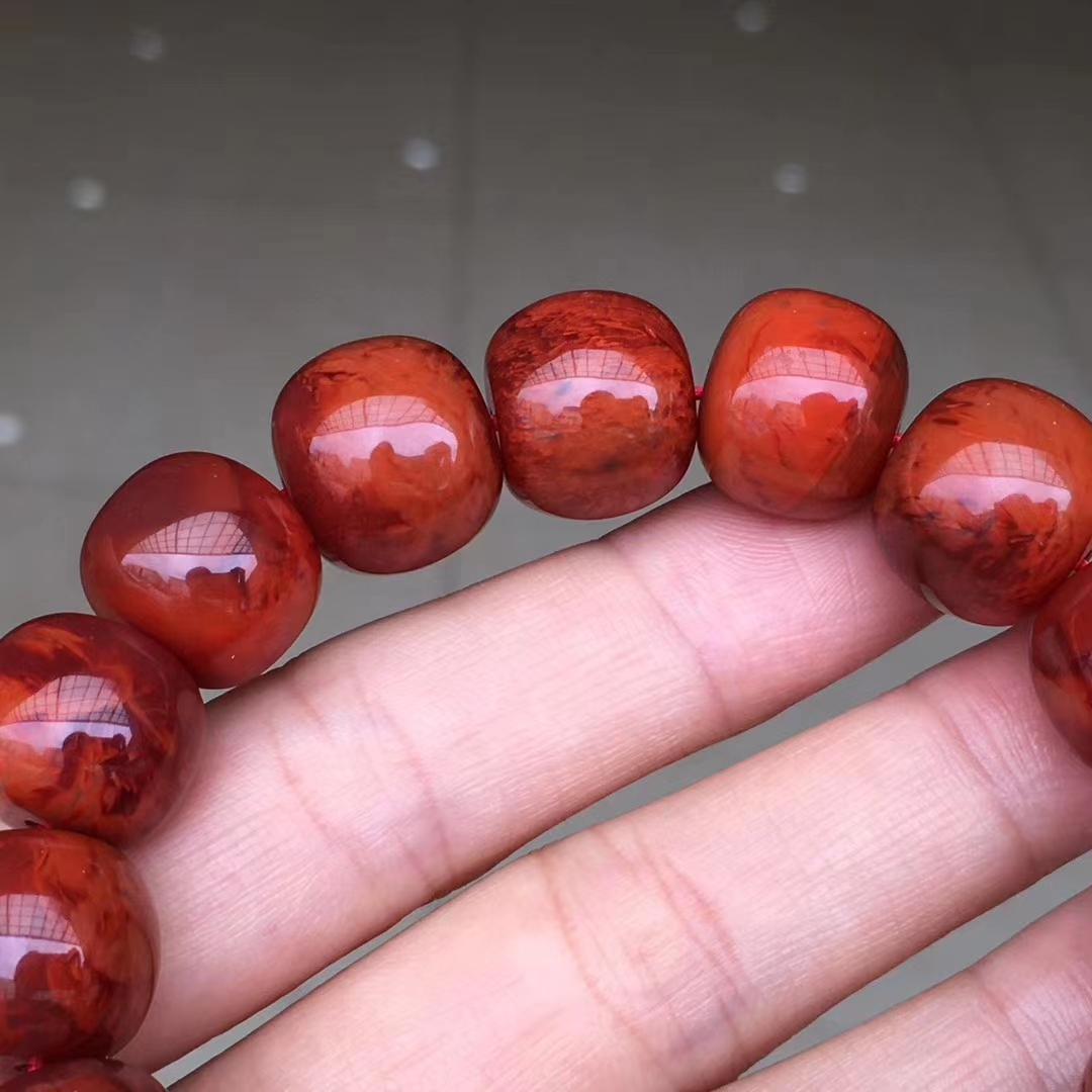 *品 瓦西南红 1.4手串 满色火焰,红润无杂裂。尺寸:14mm,重65.6克,附带鉴定证书和精美礼盒。
