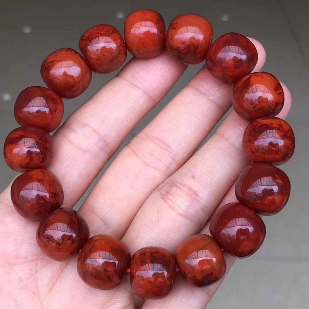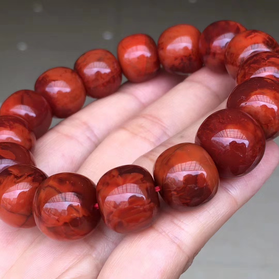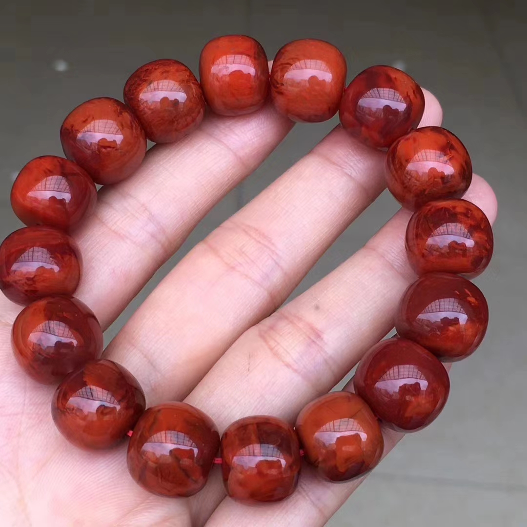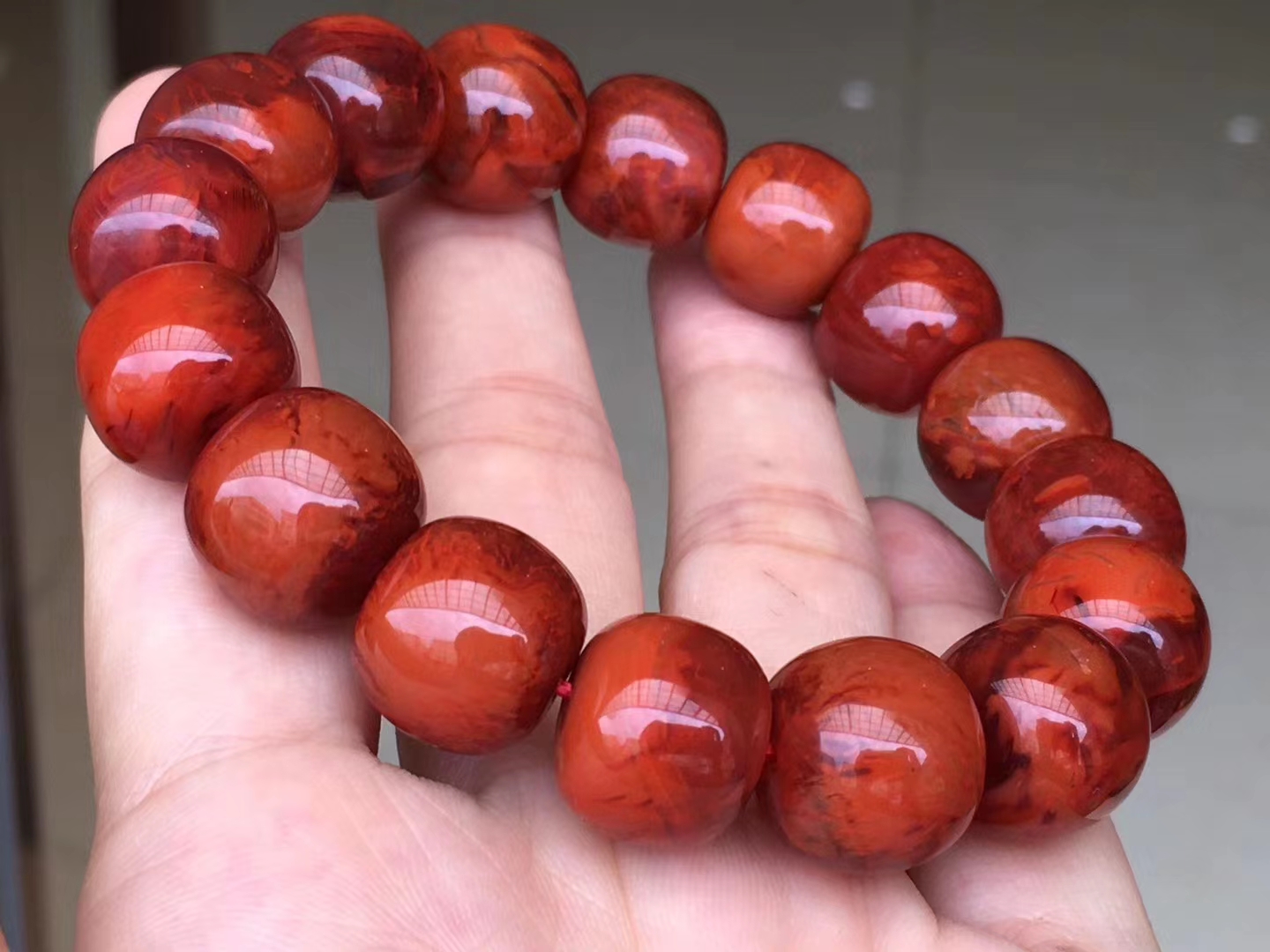 *品 瓦西南红 1.4手串 满色火焰,红润无杂裂。尺寸:14mm,重65.6克,附带鉴定证书和精美礼盒。