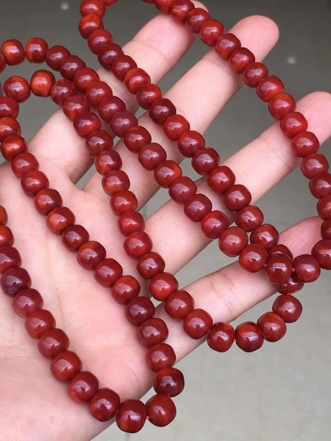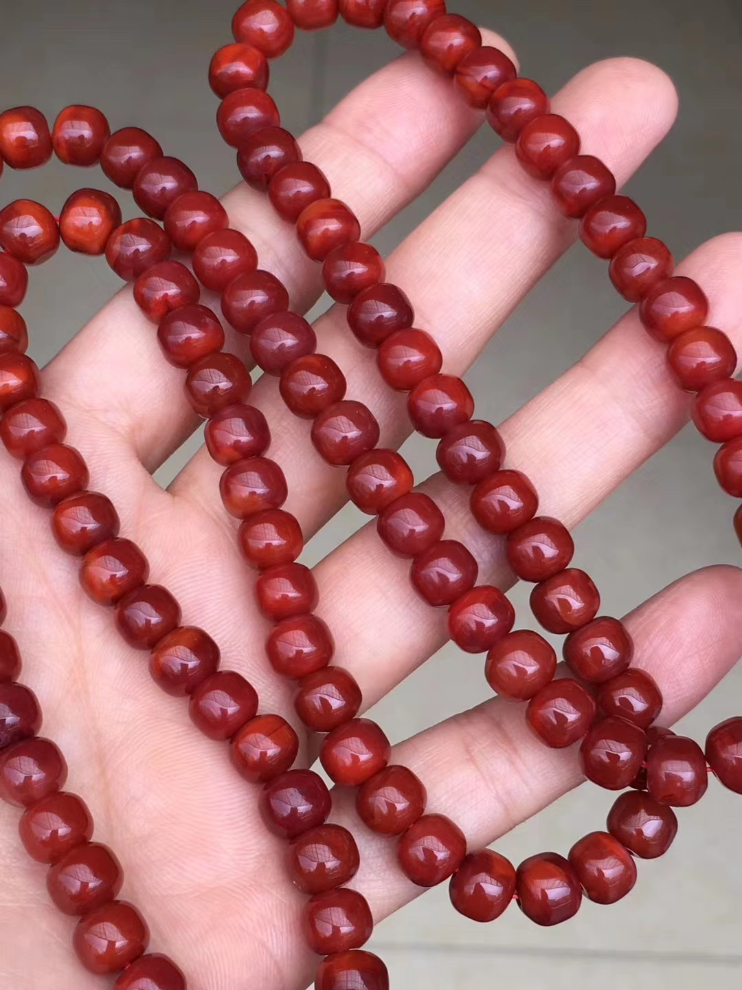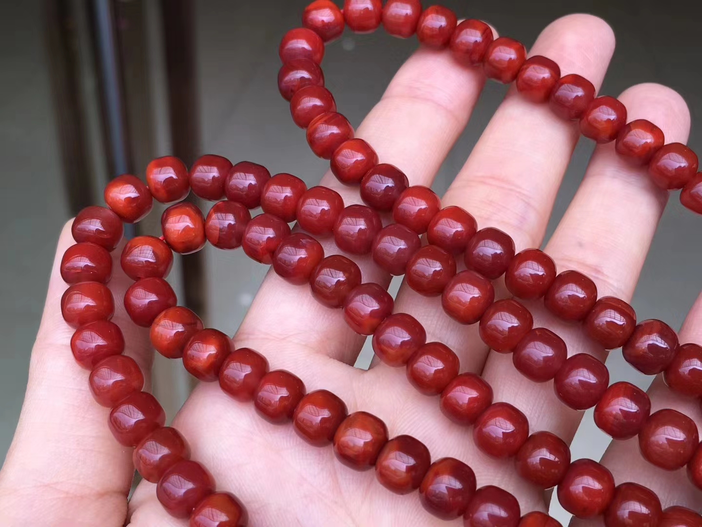 瓦西南红 玫瑰红 佛珠 玫瑰红 干净无杂裂 微透 色红润。尺寸7.5×6.5毫米 重63.3克。