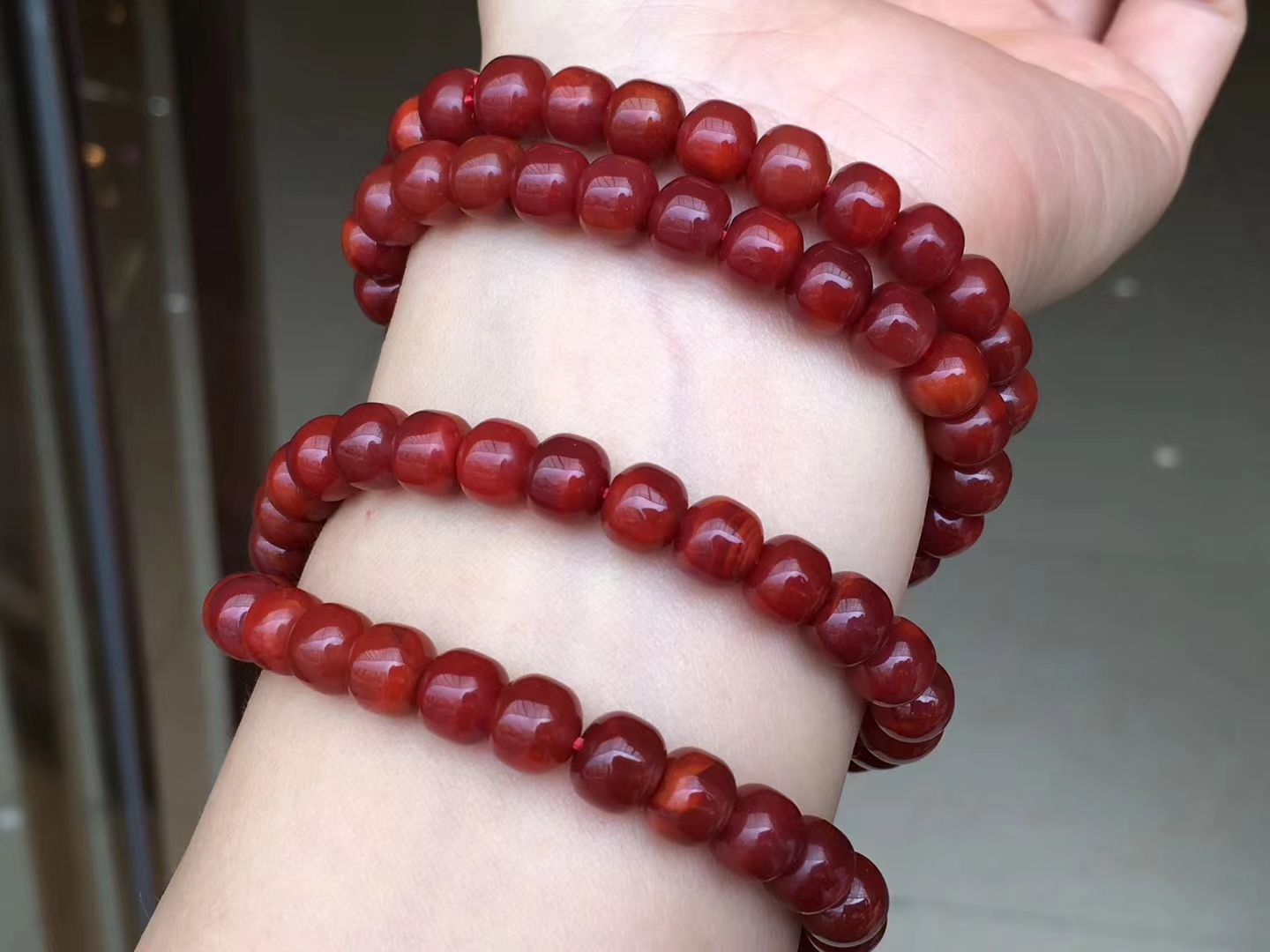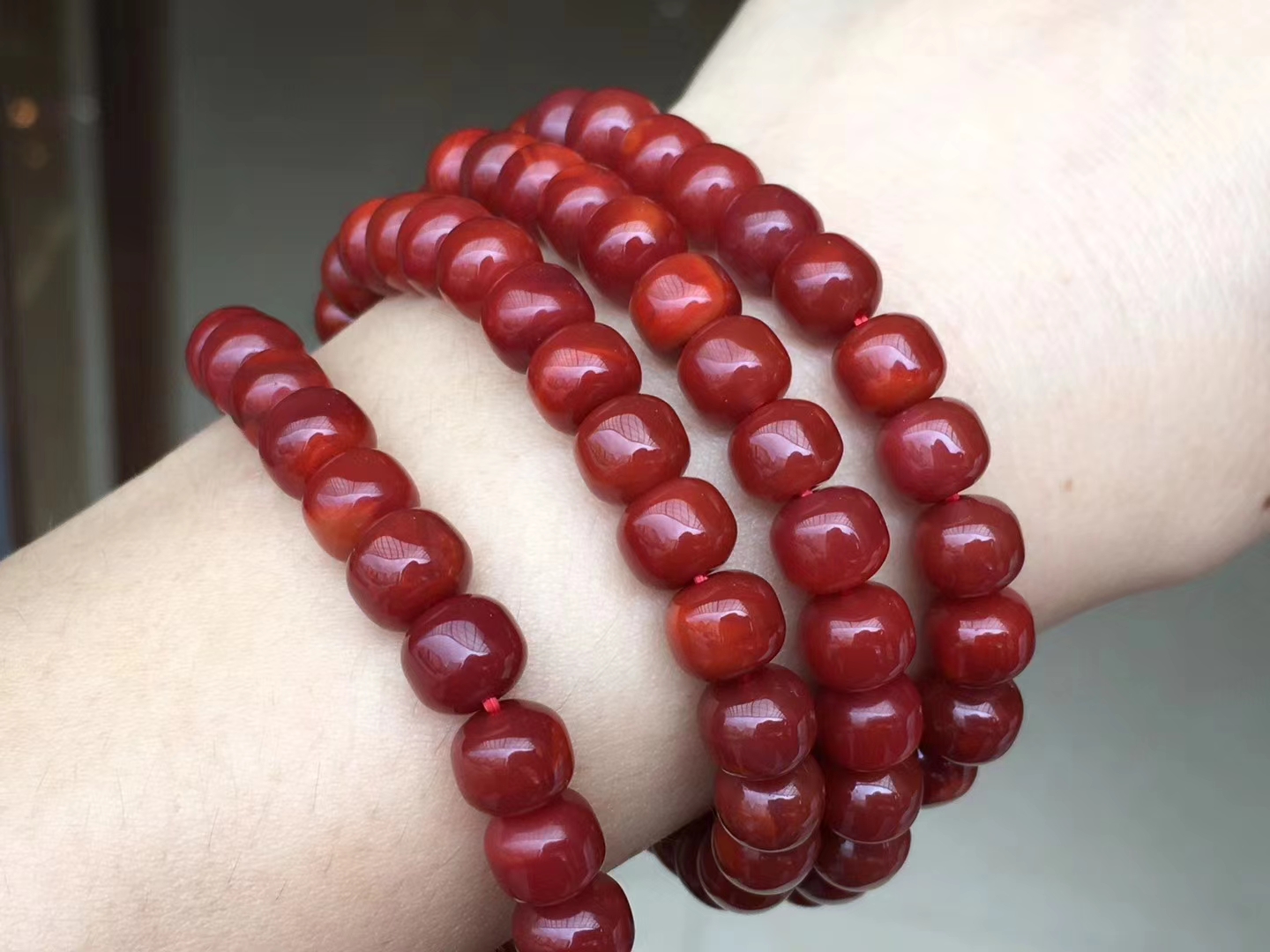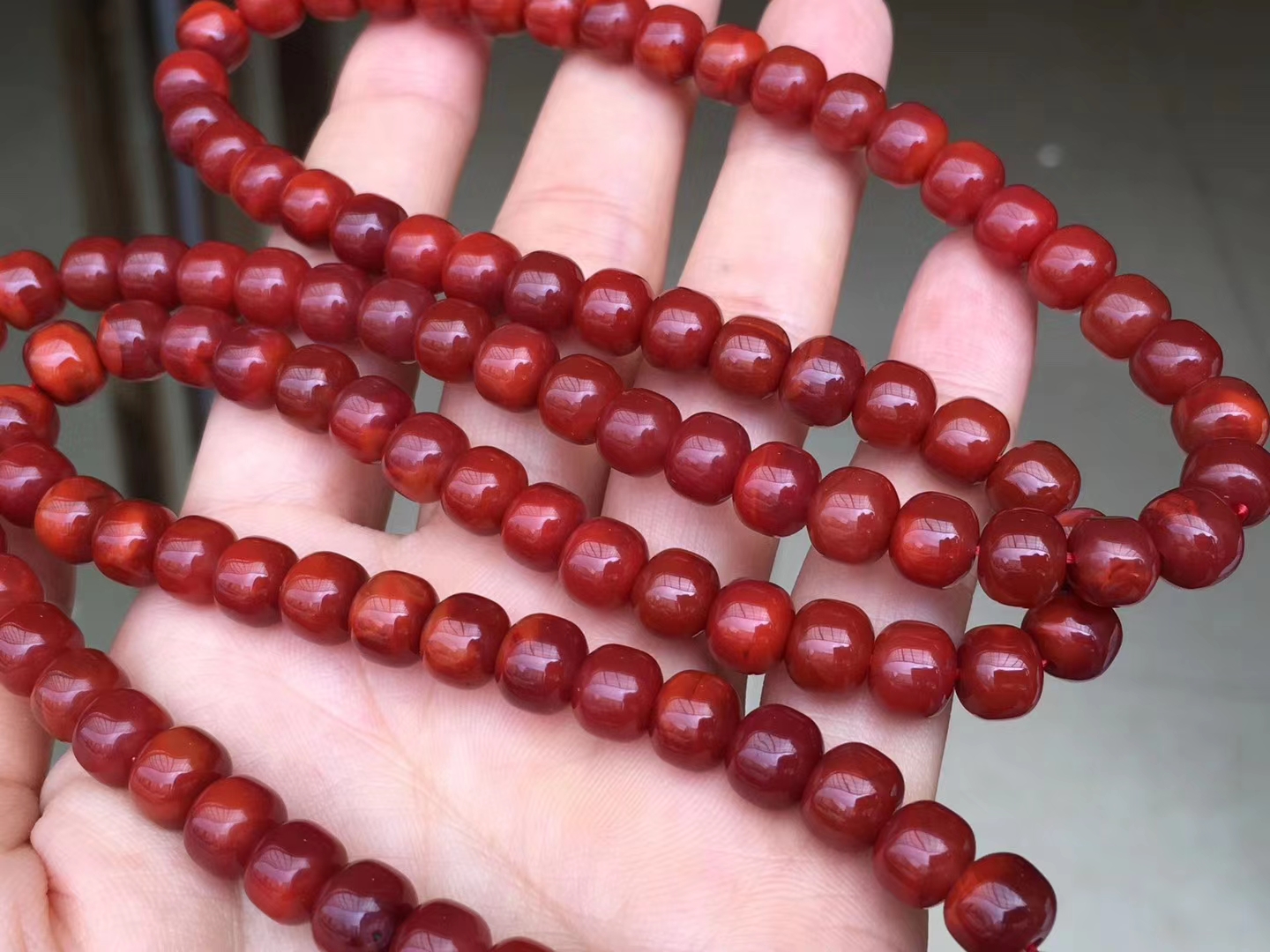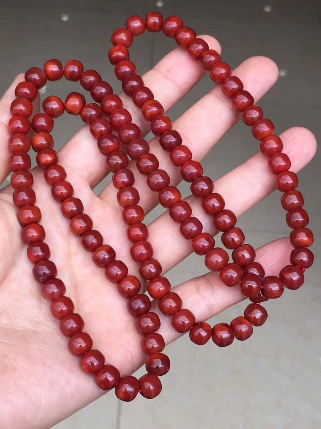 瓦西南红 玫瑰红 佛珠 玫瑰红 干净无杂裂 微透 色红润。尺寸7.5×6.5毫米 重63.3克。