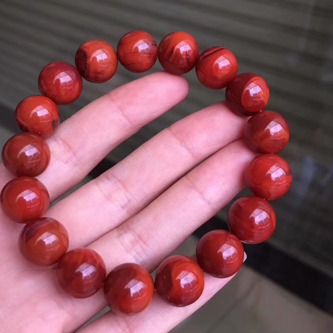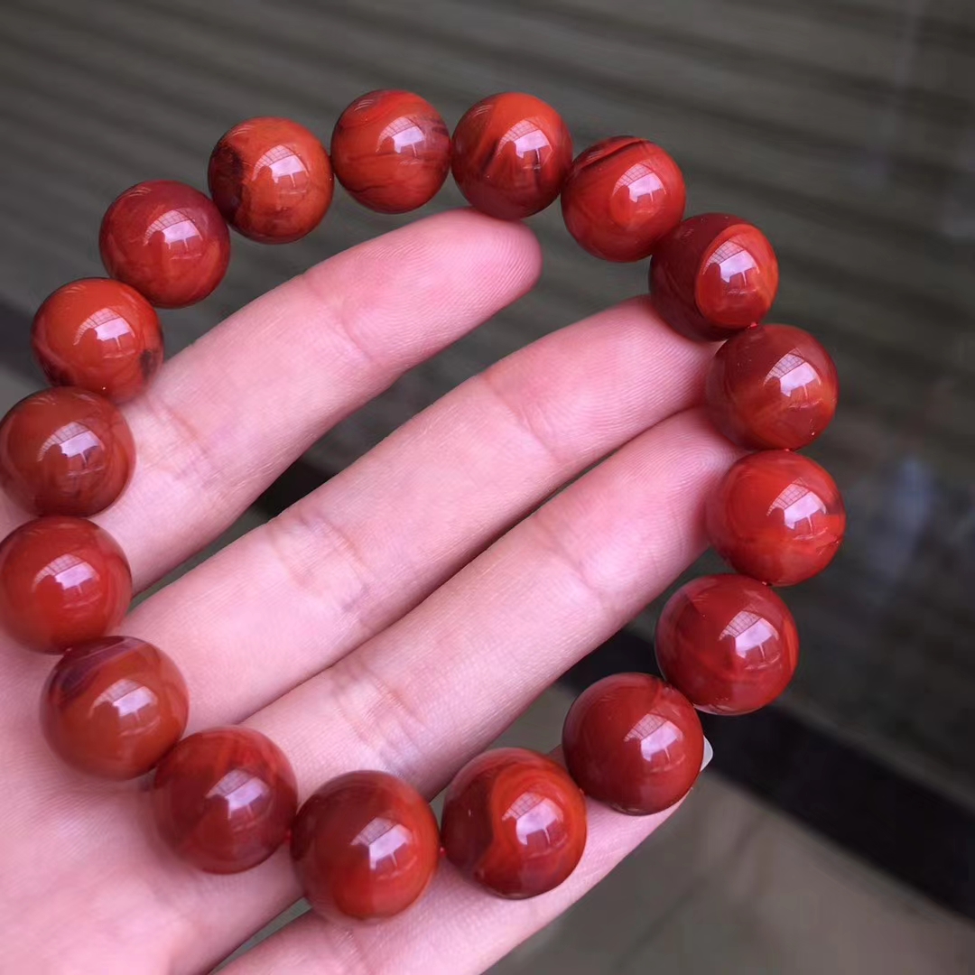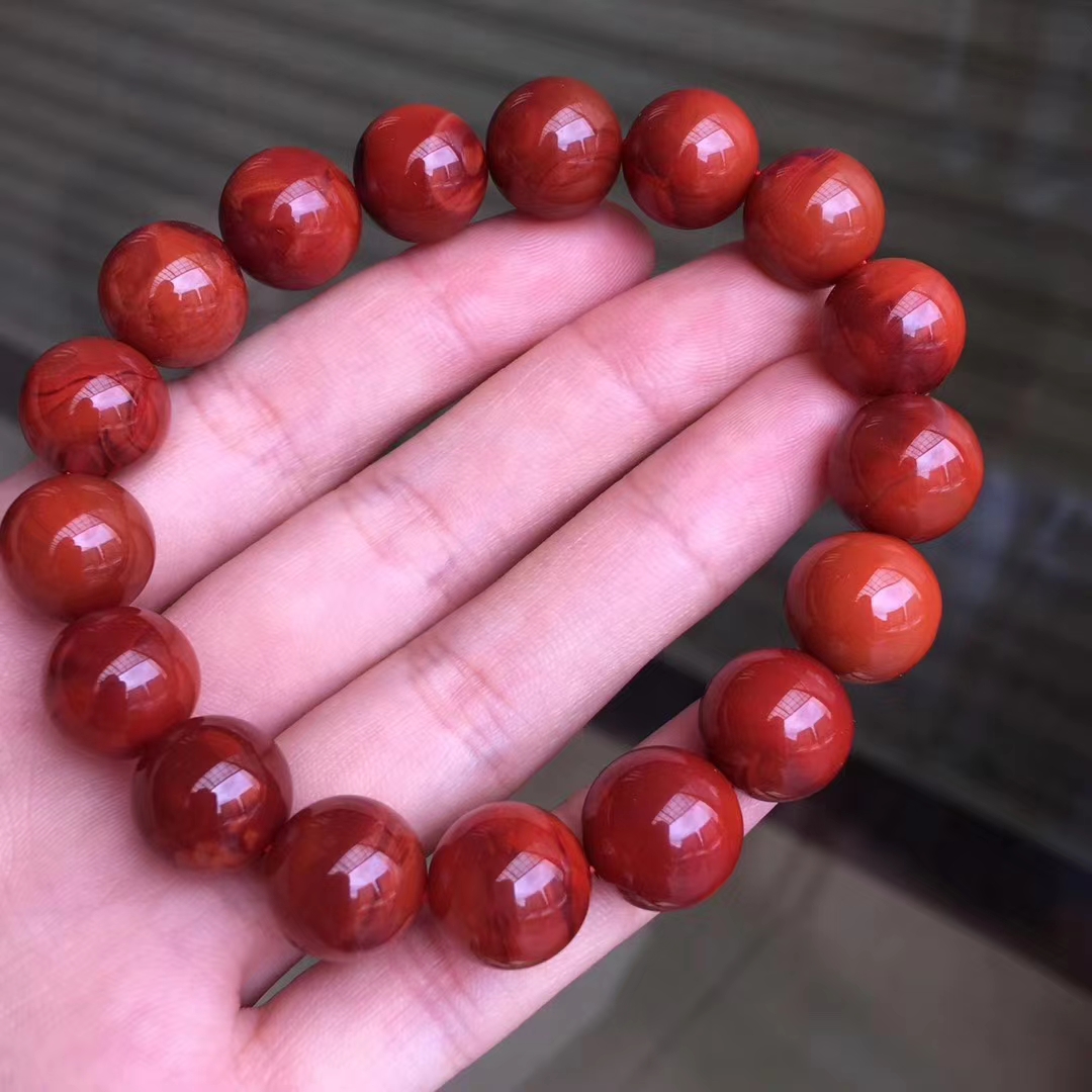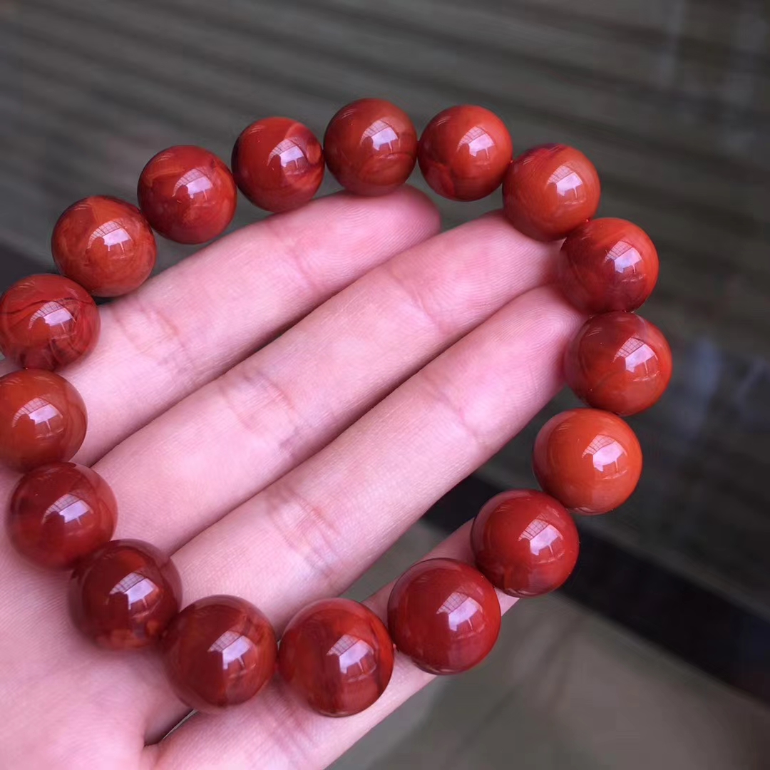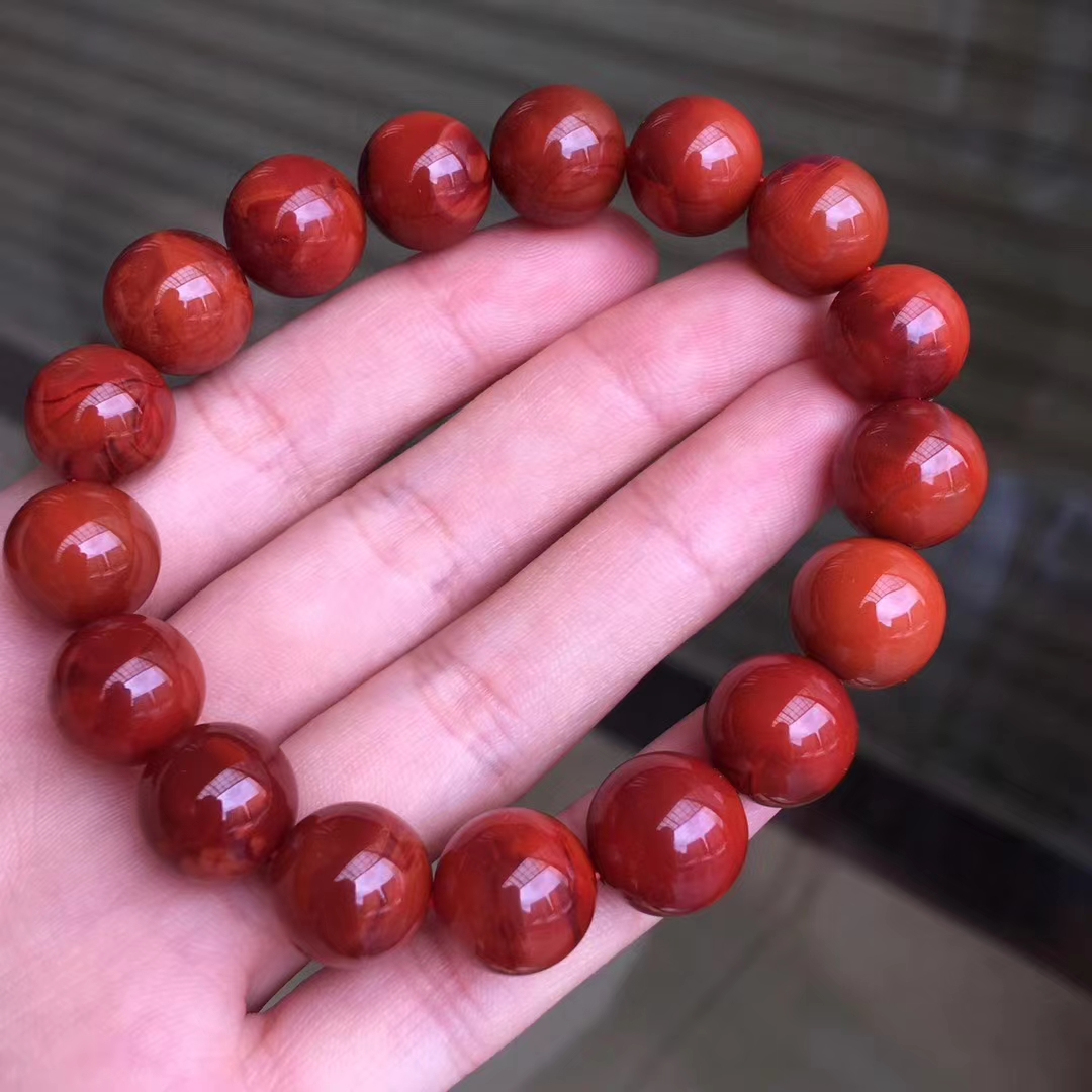 *品 川料 玫瑰红1.2手串 满色满肉 颜色红润 珠子干净 无杂裂。尺寸12mm重42克。