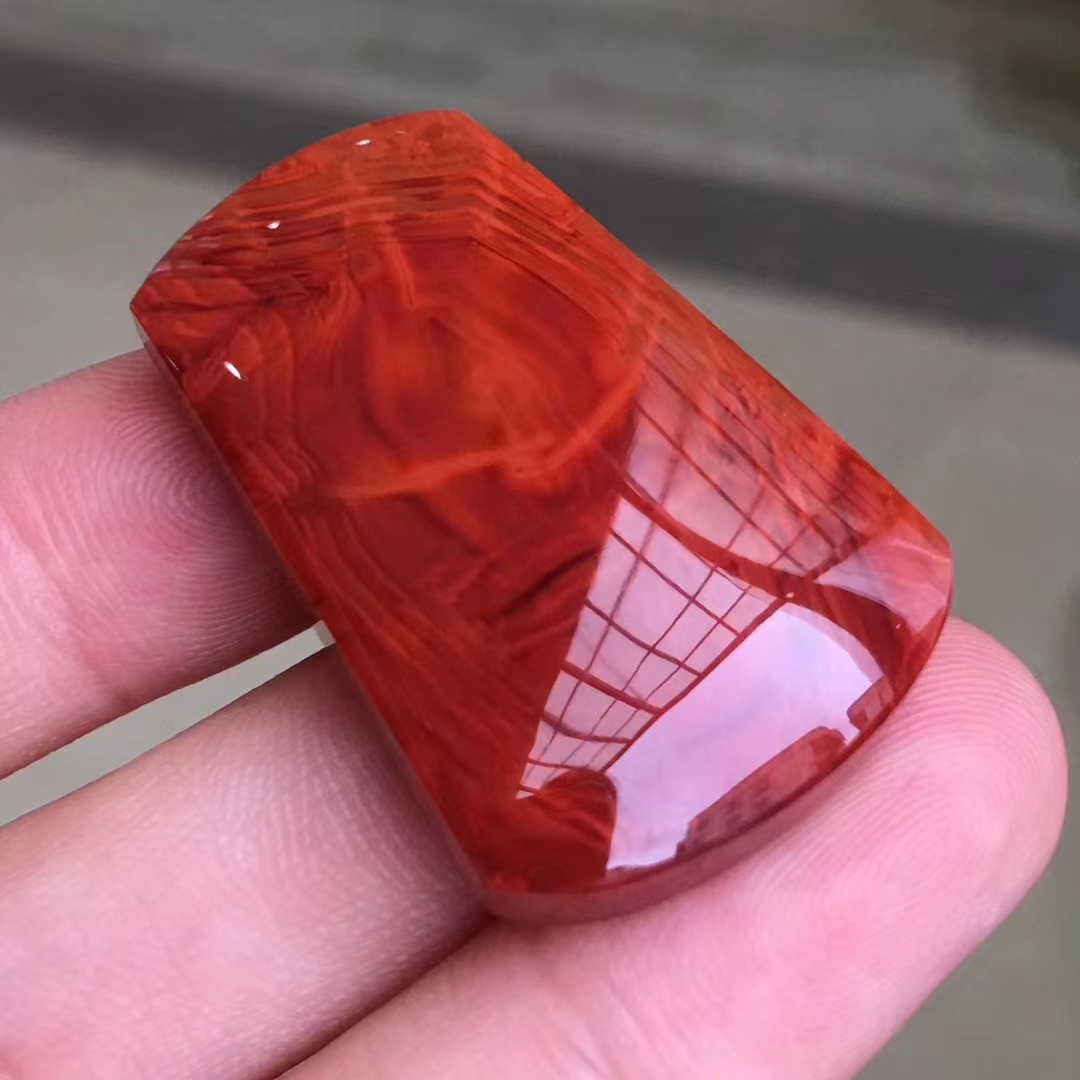 瓦西料 南红 素牌 火焰纹 满色满肉 全品无瑕疵 形状规整 可以镶嵌 可以直接打孔佩戴。 尺寸34×22×9.5毫米 重12克。