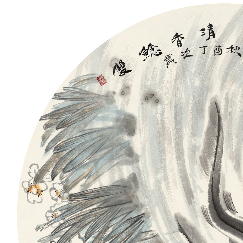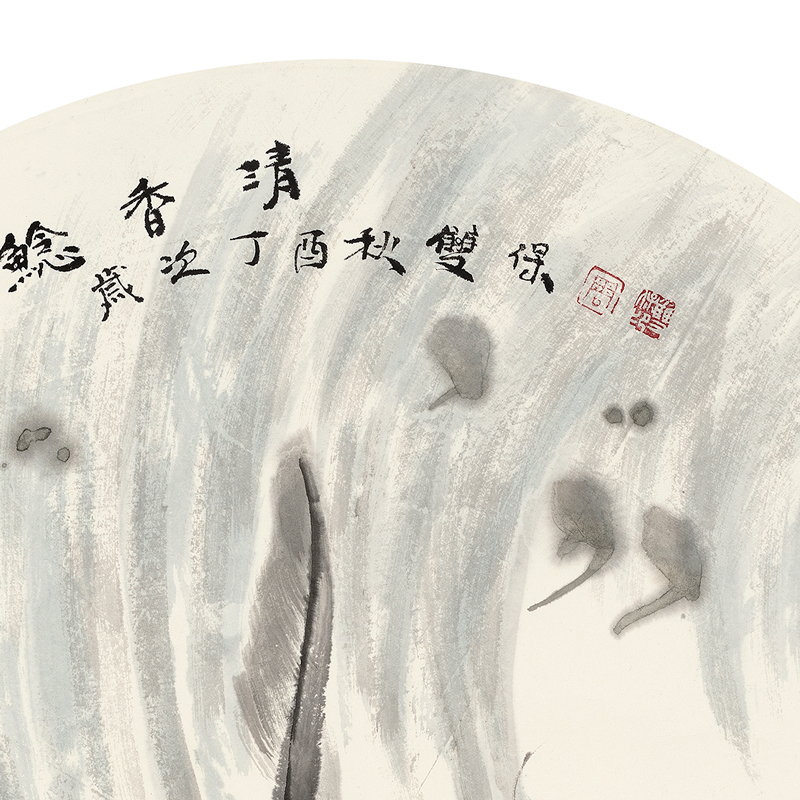 【尺寸与说明】 尺寸:约66x66cm,装裱情况:裱片,材质:纸本水墨