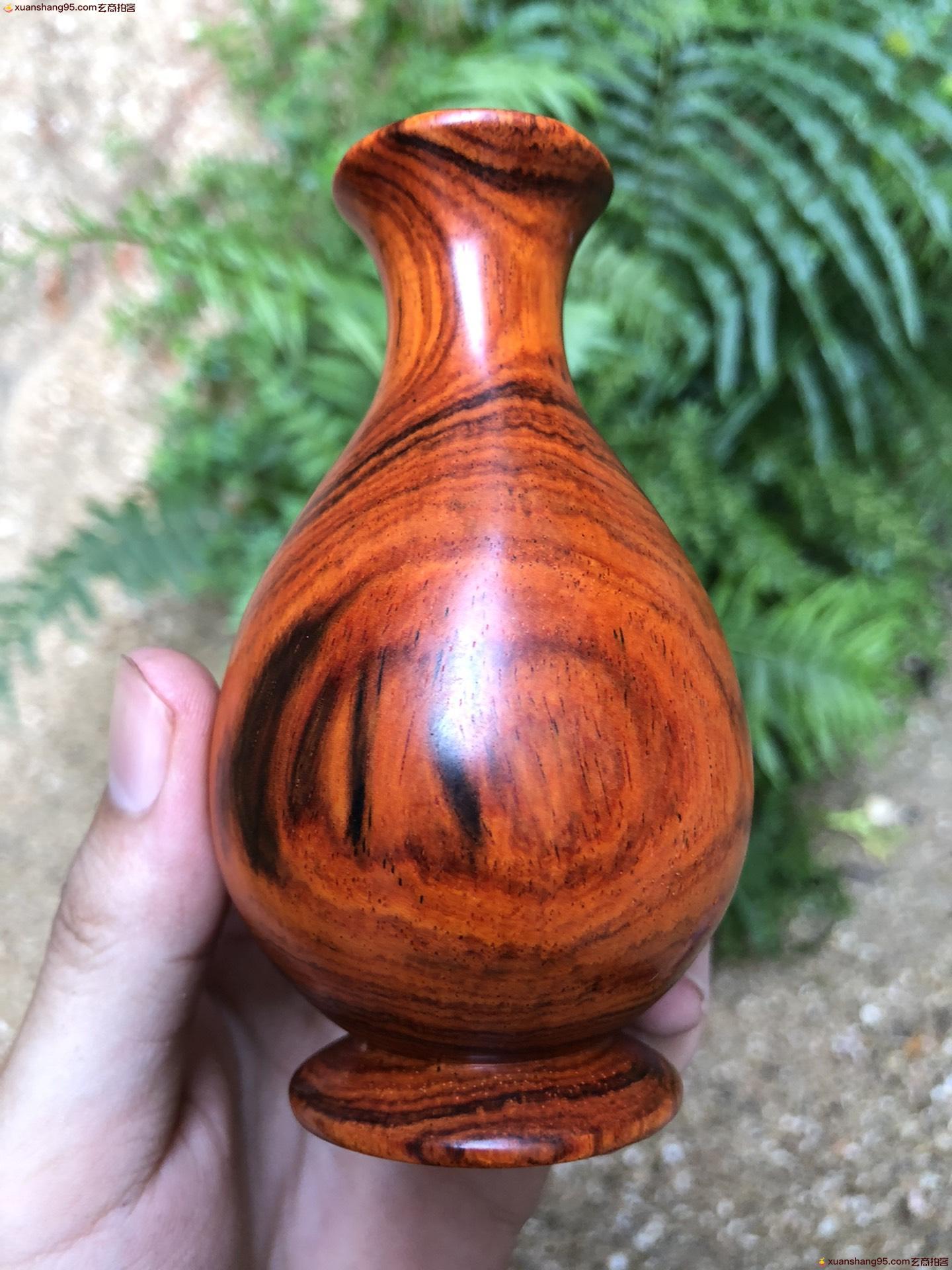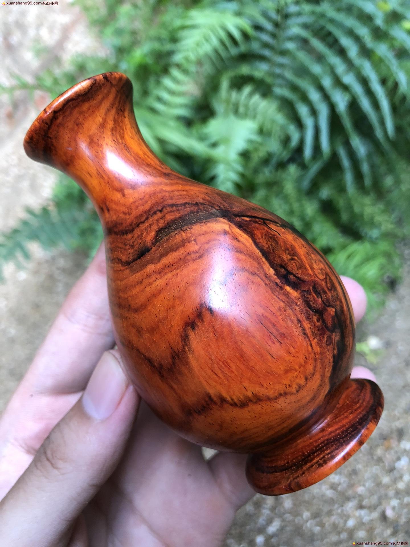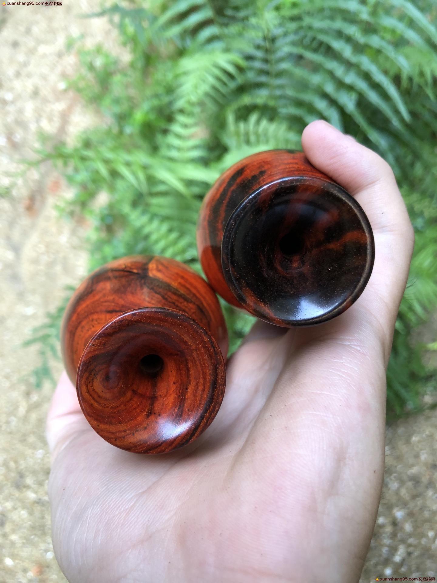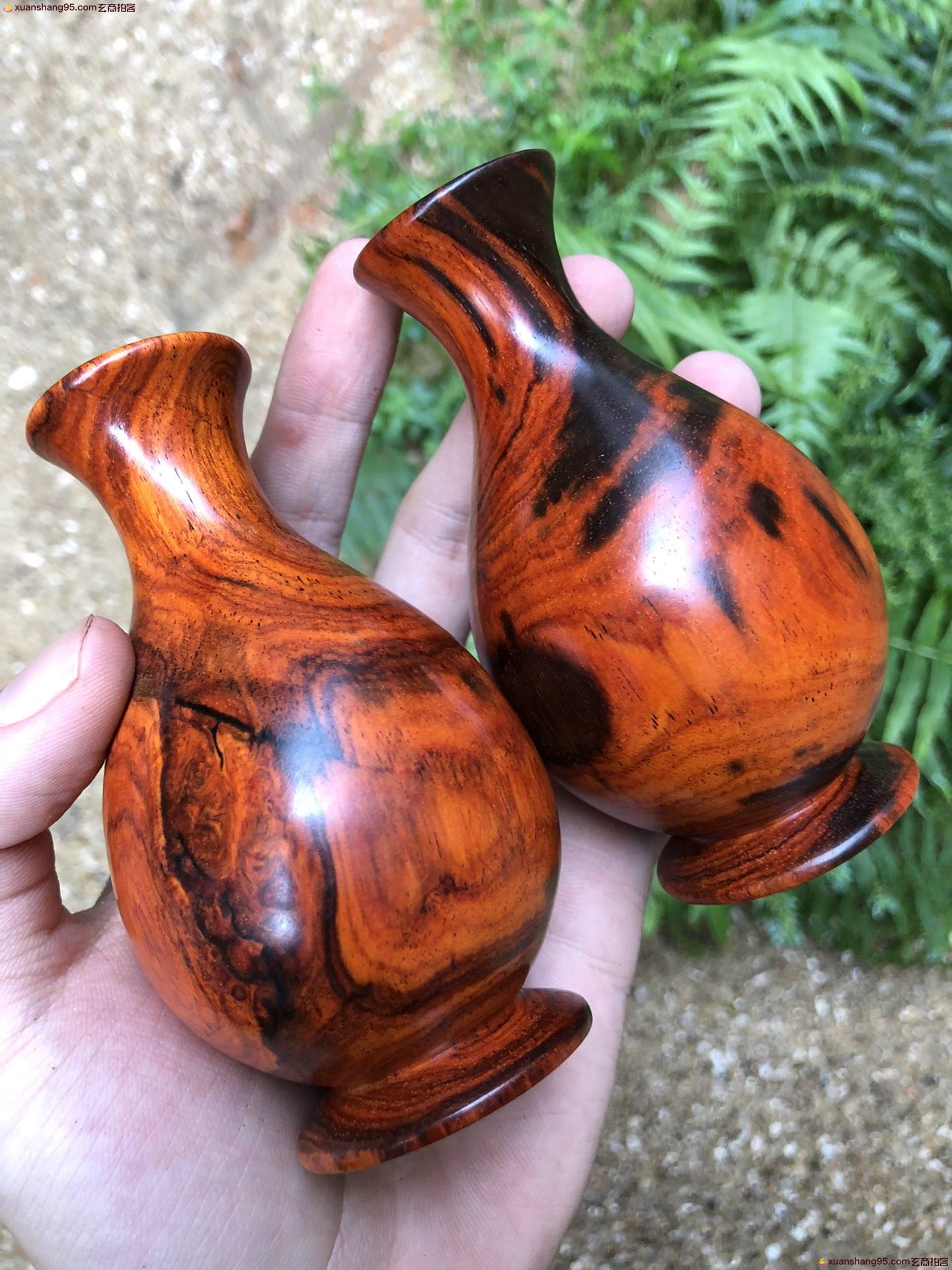 老挝 大红酸枝 花瓶一对 零瑕疵 料子油性高 密度高 一木两器 做工一流 。高10厘米 直径5.6厘米 重量0.5斤。