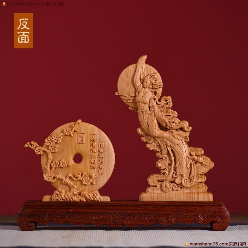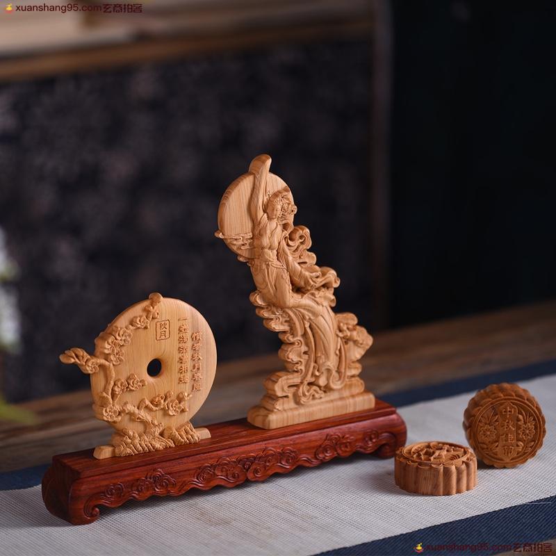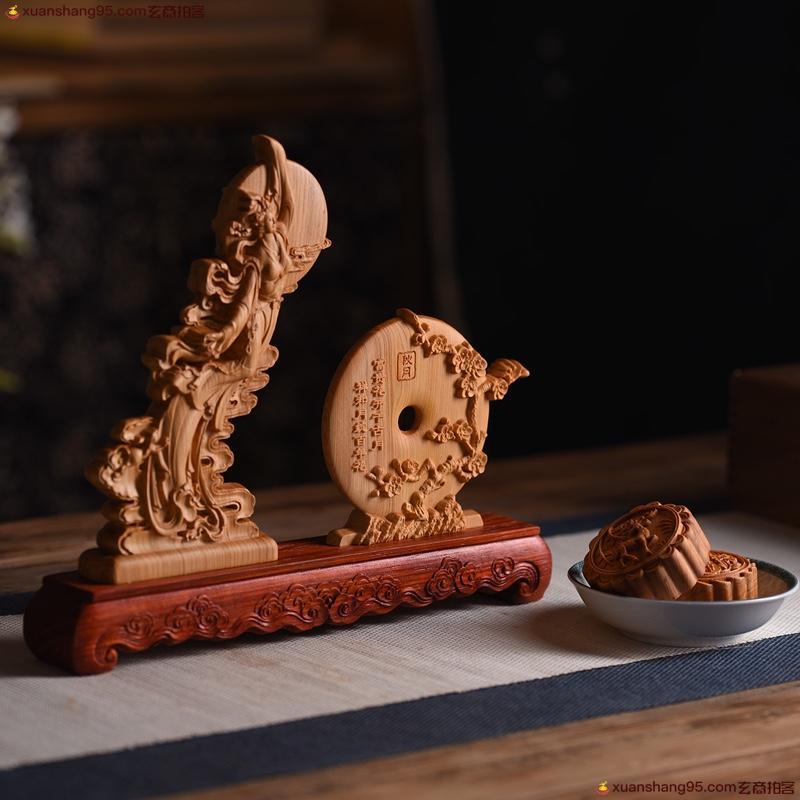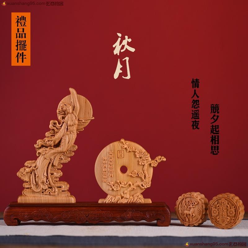 崖柏 秋月摆件 明月九霄挂 浓情团圆月 千里寄情怀,摆件尺寸26*214厘米, 月饼尺寸5.5*2.5厘米。
