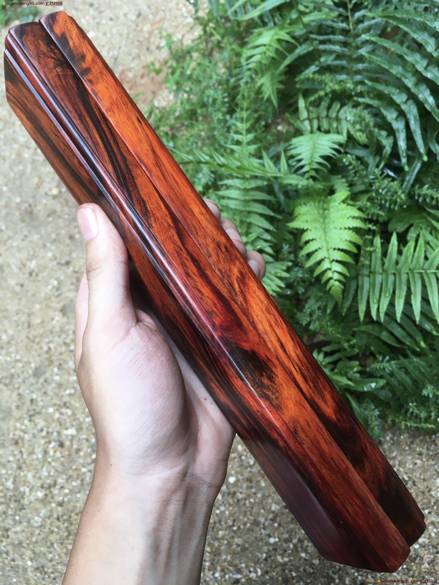 老挝 大红酸枝镇尺一对 零瑕疵 老料 红黑相间 非常漂亮 高油性 高密度 带水波 同料制作。尺寸26*4.5*2厘米。
