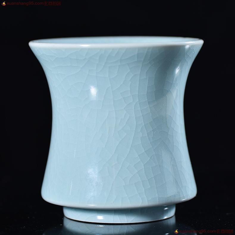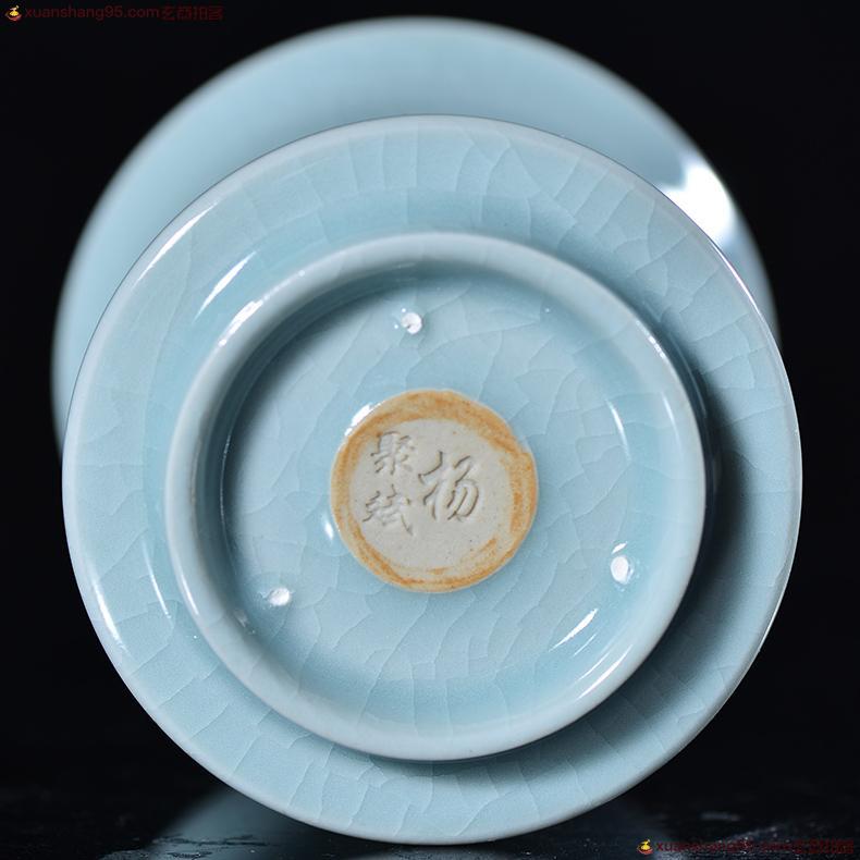 汝瓷 冰裂釉 手工主人杯 作者杨聚斌,采用汝州本地天然原矿石,研磨精工制作而成,做工一流,设计巧妙,杯内上满釉,开片精美,收藏使用佳品。 尺寸6*5.5厘米。