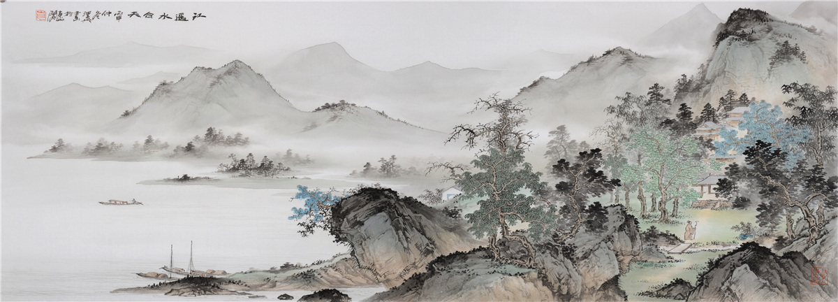 3. 竞拍详细 - 袁泽兵 《江遥水合天》精品工笔山水