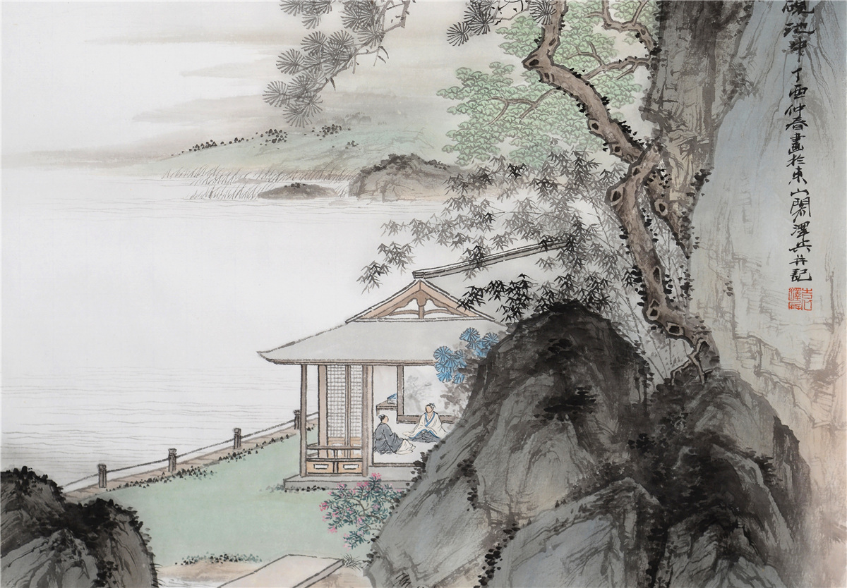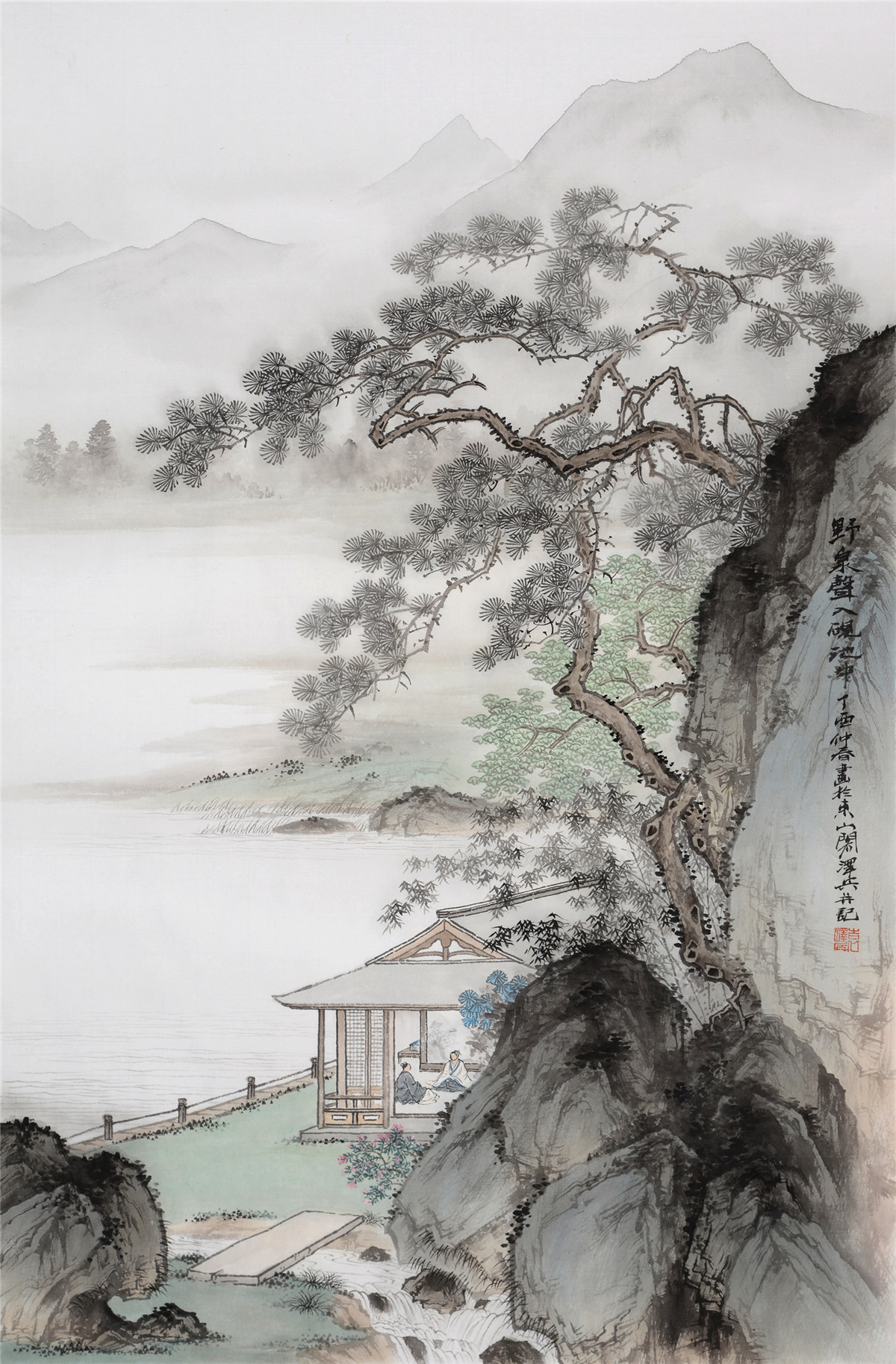 袁泽兵 带合影《野泉声入砚池中》精品工笔
