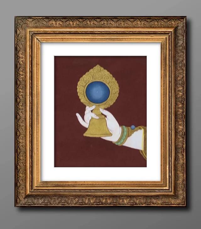 郎卡杰唐卡创意画,提取了郎卡杰画派唐卡里的局部手势,每个手势都有自己的寓意,以和谐、祥和、平安为主体,结合现代内地建设风格来设计的文创产品。