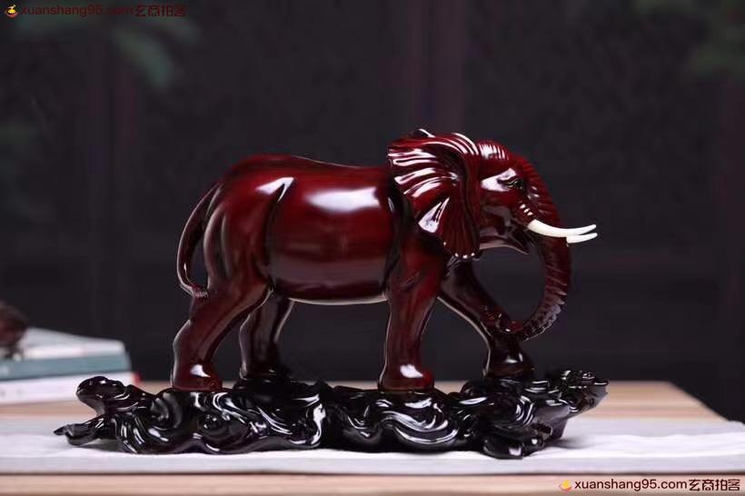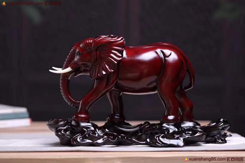 血檀 大象摆件 财运亨通 大象的鼻子可以吸水 象征吸财,尺寸40*16*22厘米。