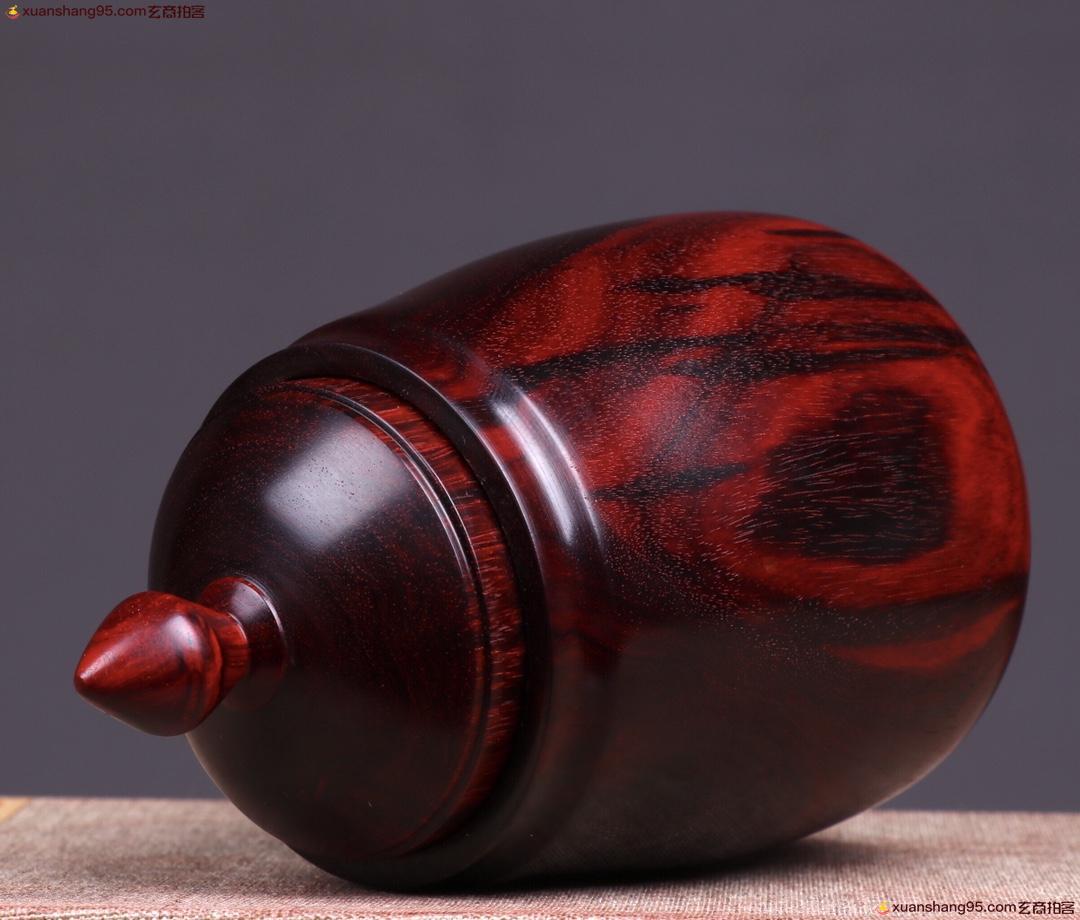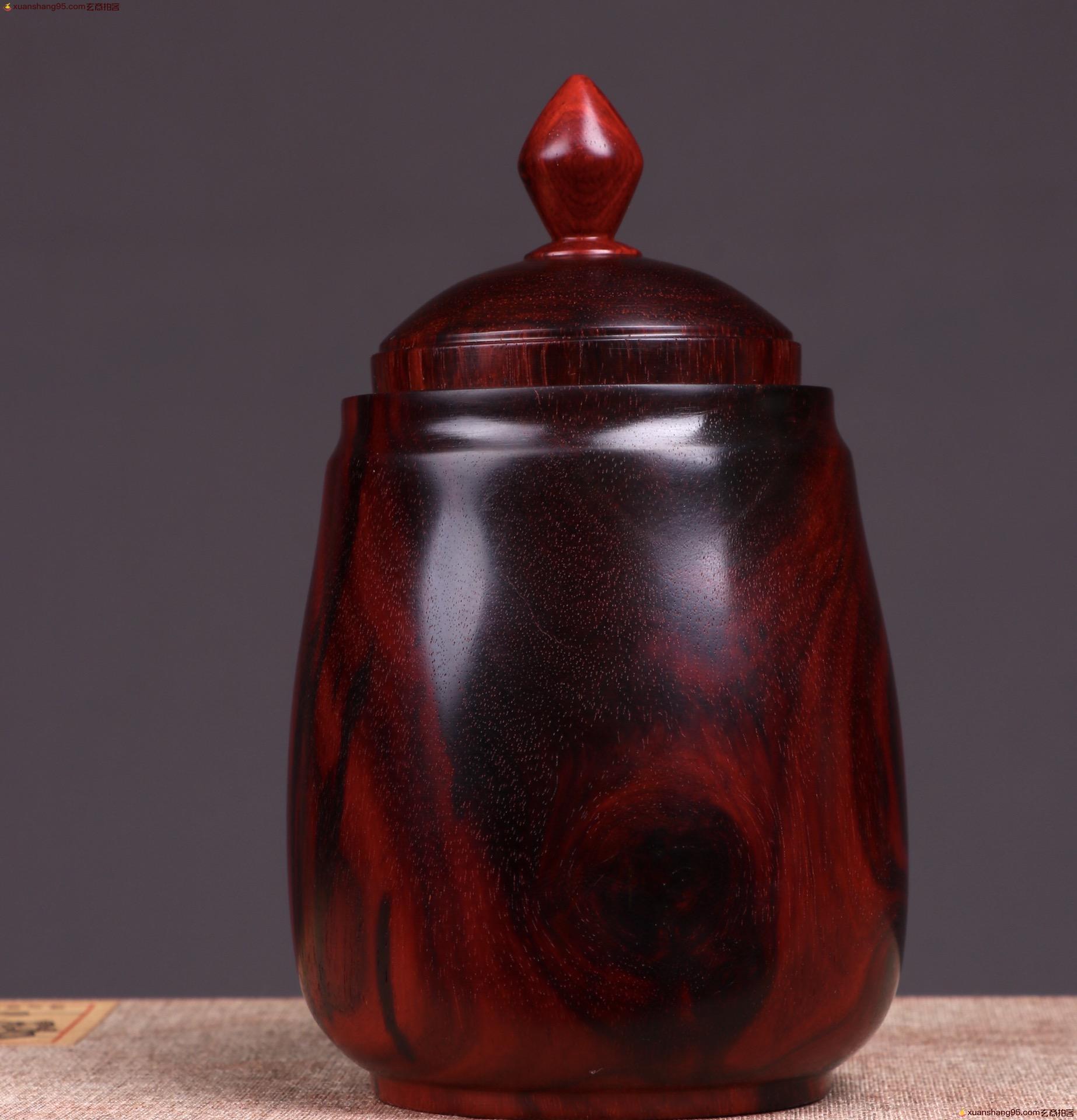 印度小叶紫檀 南瓜茶叶罐 器型简约大气 实木打造 尺寸7.8*7.8*13厘米 重量0.6斤。