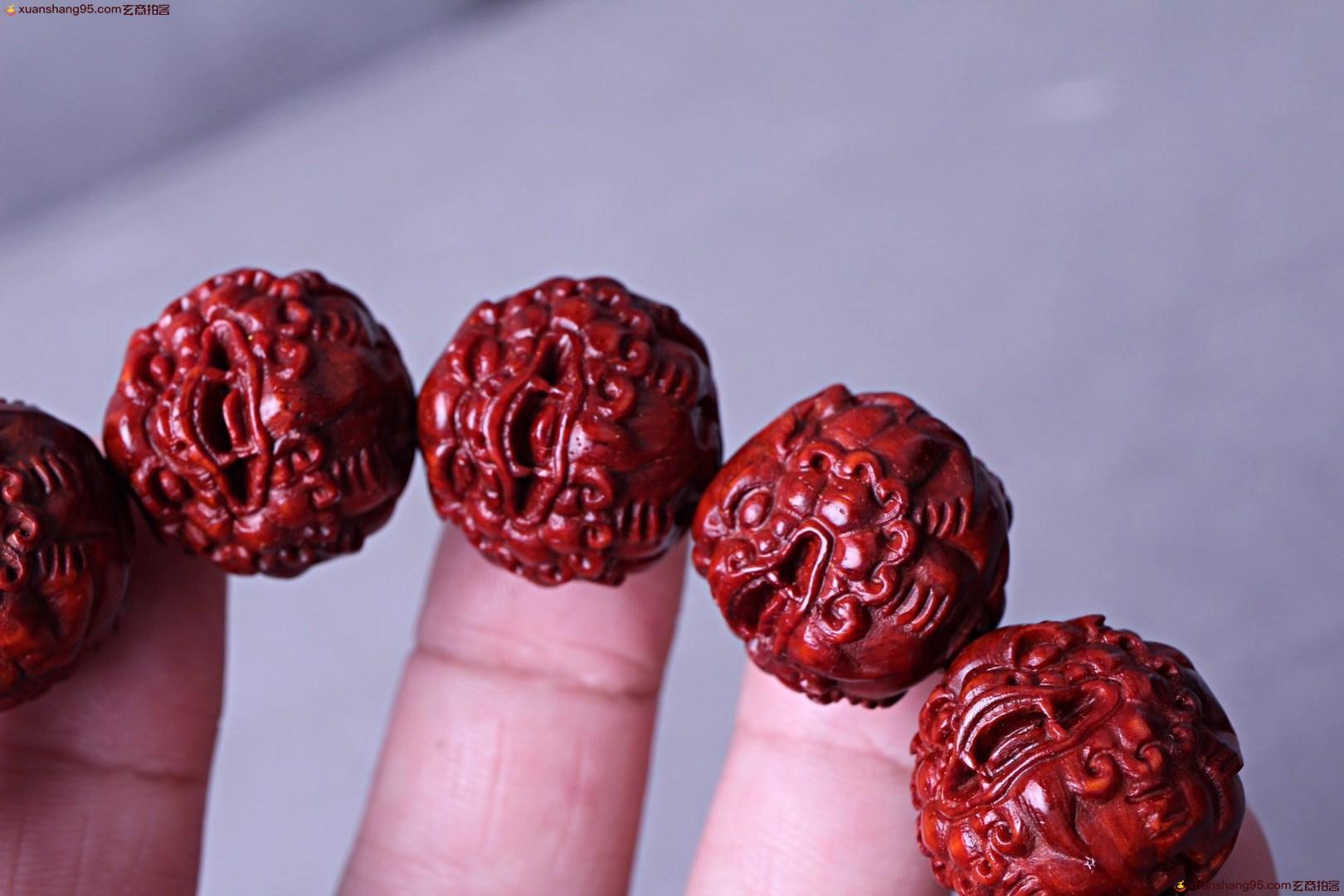 印度小叶紫檀 招财貔貅 全皮 无瑕疵 颗颗精雕 神韵灵动 尺寸2.0厘米。