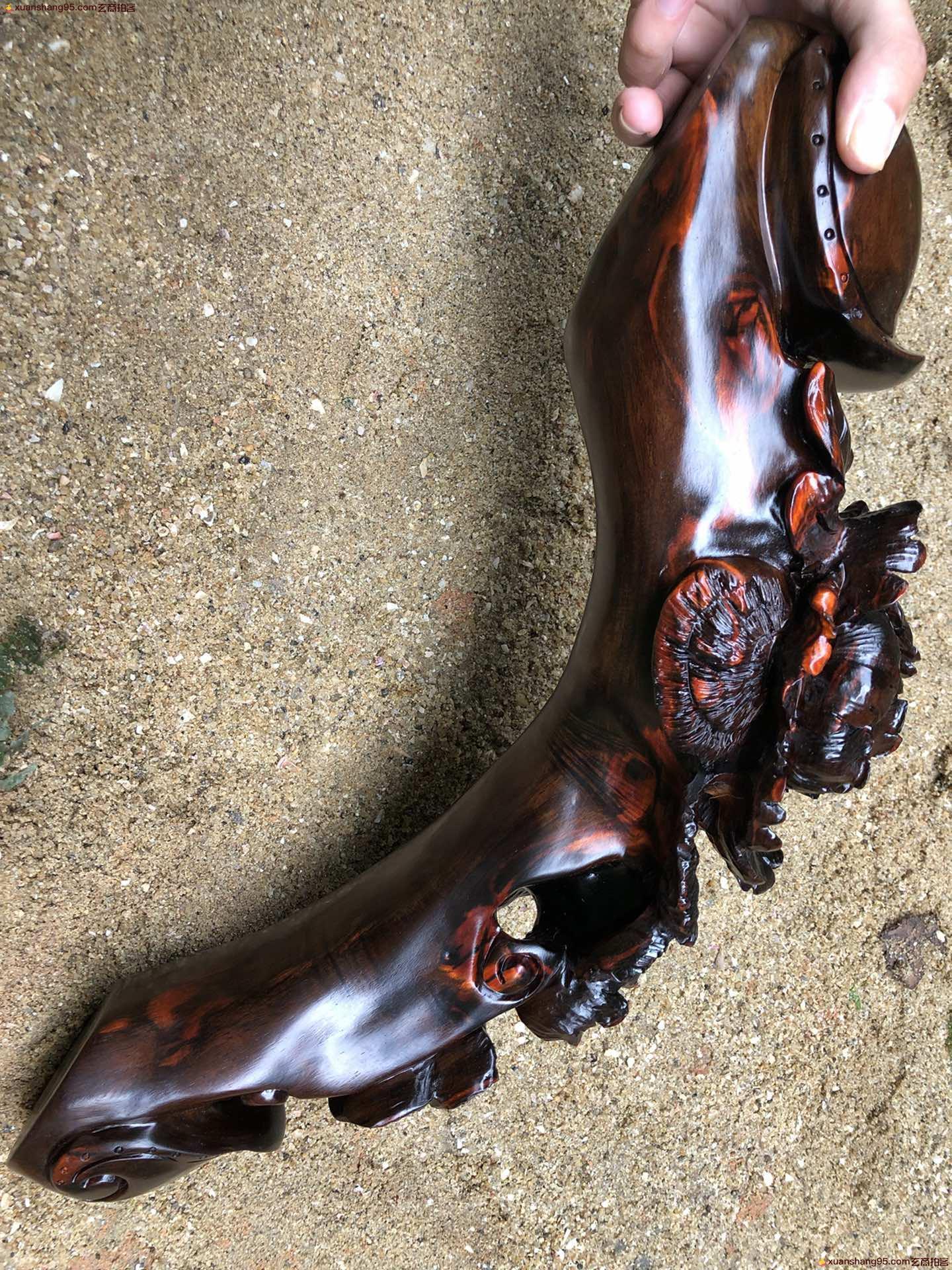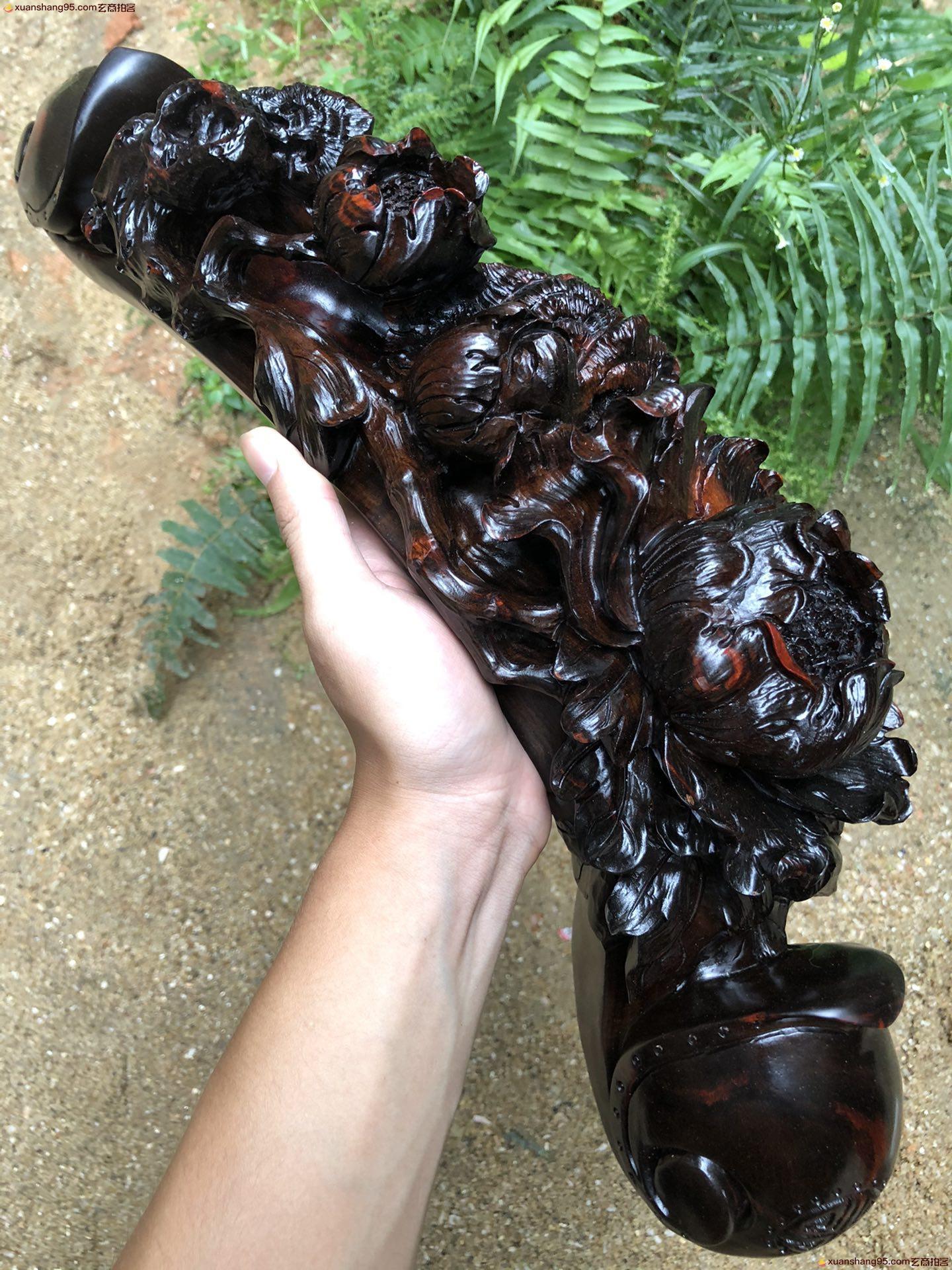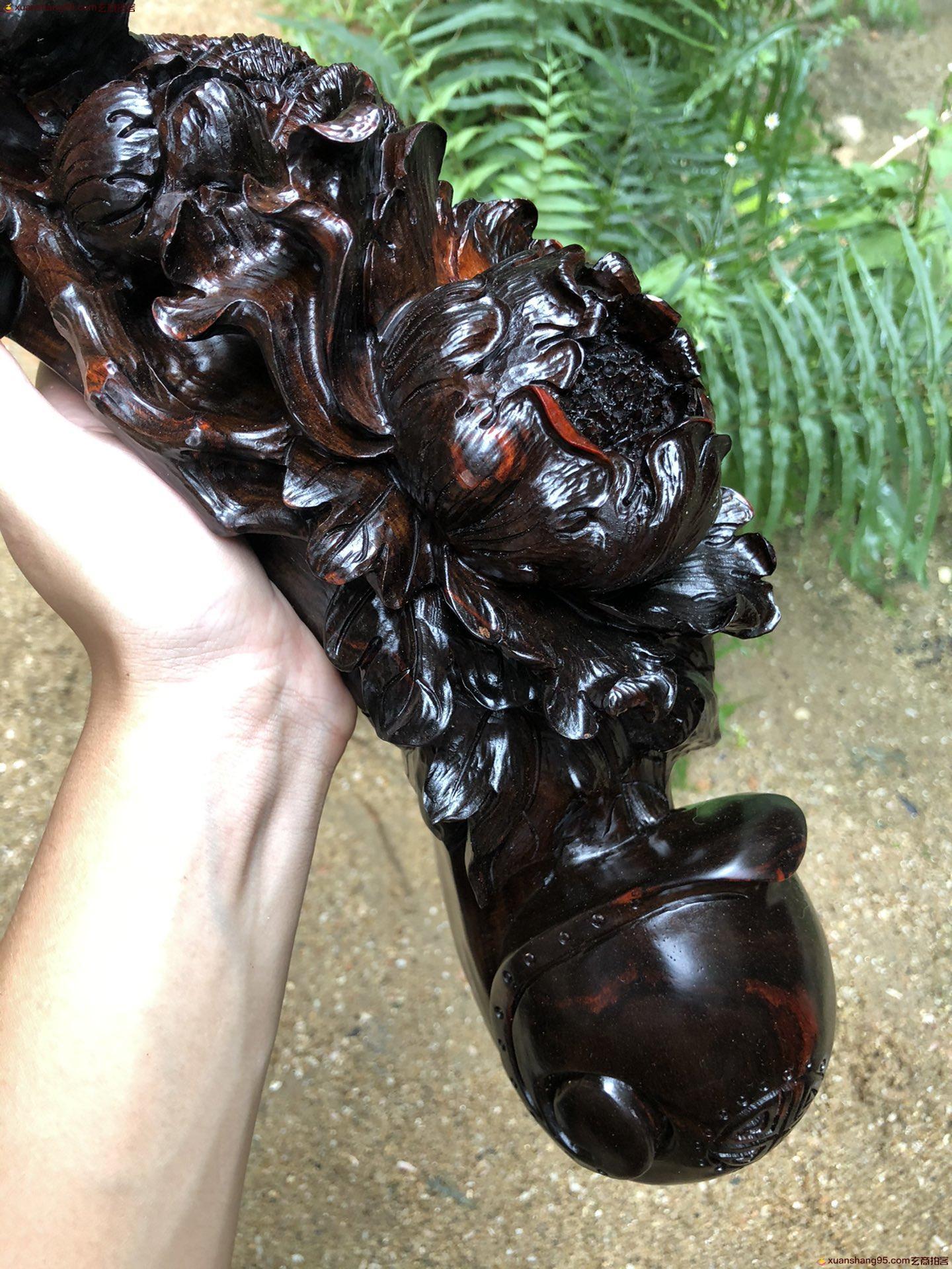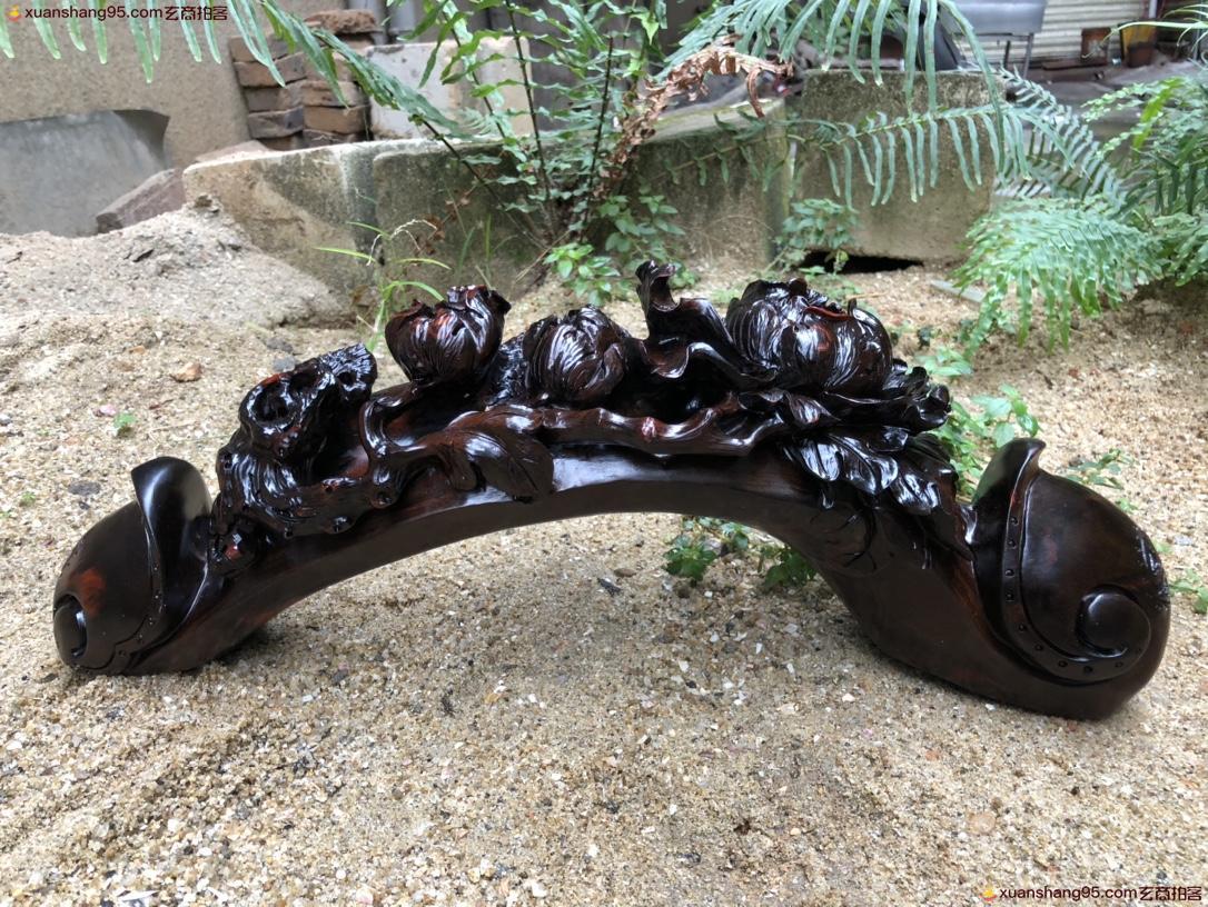 老挝大红酸枝 花开富贵 摆件 高密度 高油性 整体立体雕刻 非常耗时 耗材 造型优美 无瑕疵 尺寸47*12*18厘米 重量4.57斤。