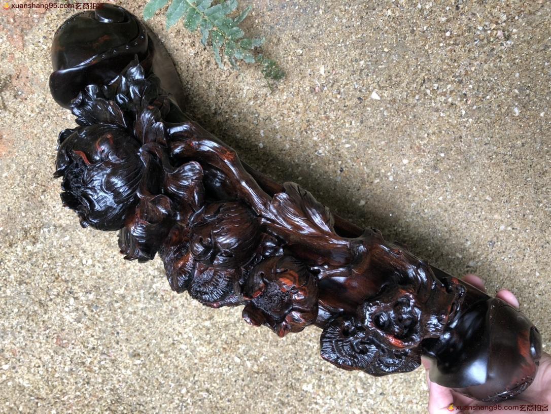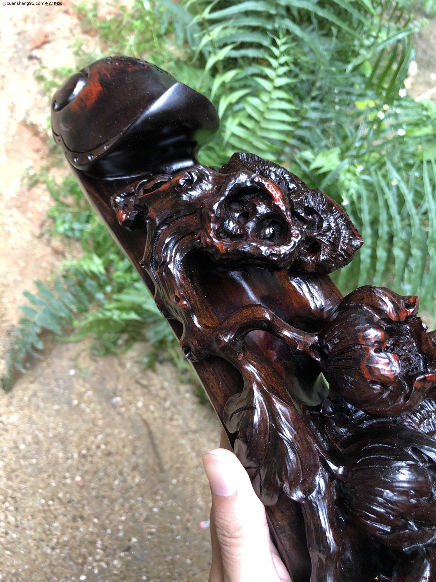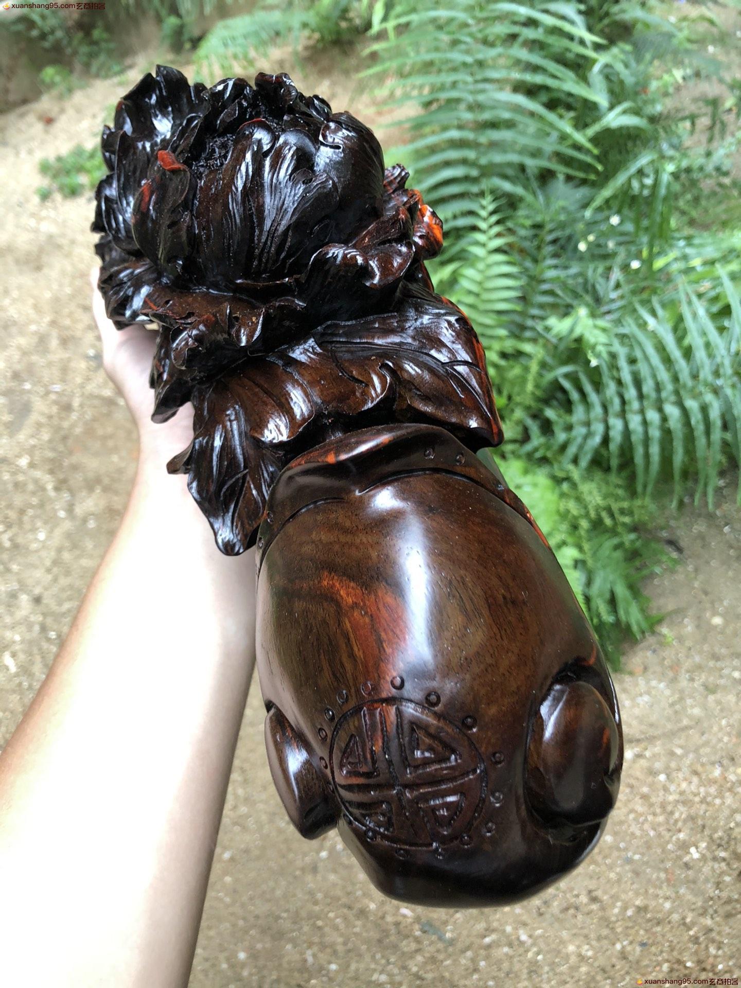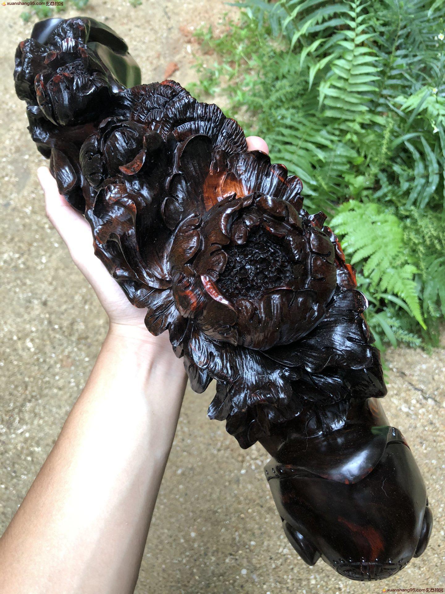 老挝大红酸枝 花开富贵 摆件 高密度 高油性 整体立体雕刻 非常耗时 耗材 造型优美 无瑕疵 尺寸47*12*18厘米 重量4.57斤。