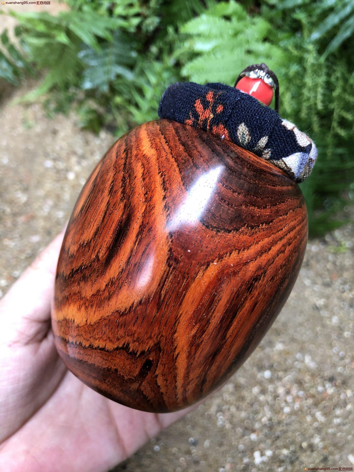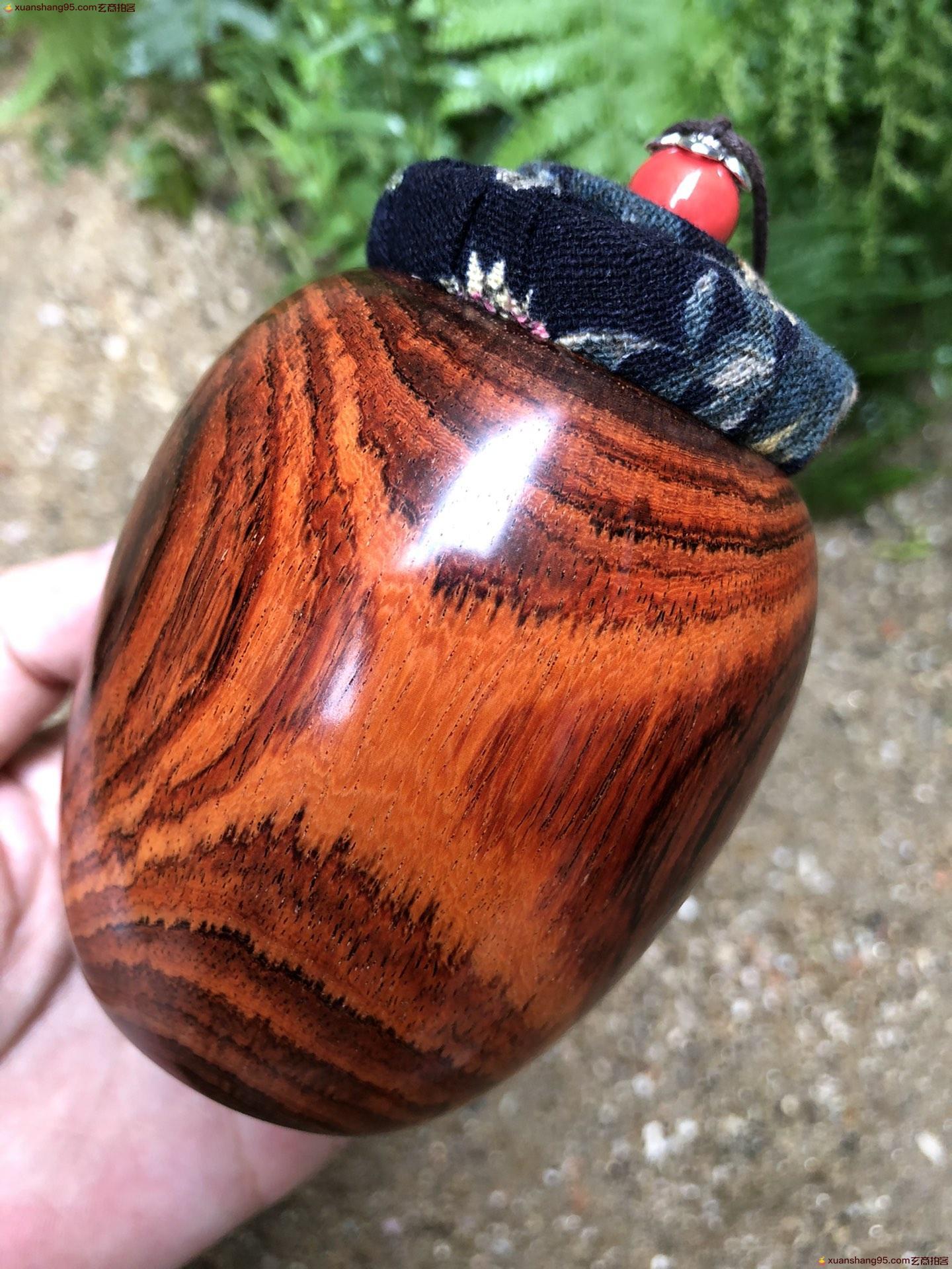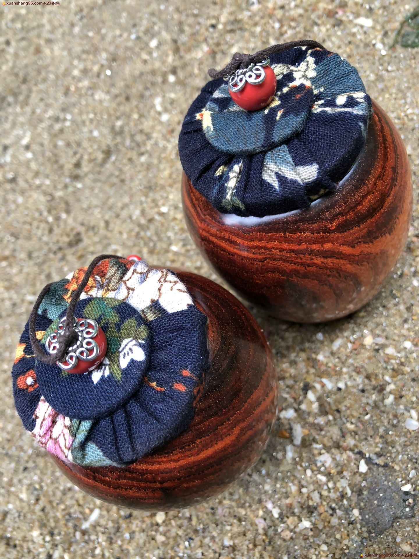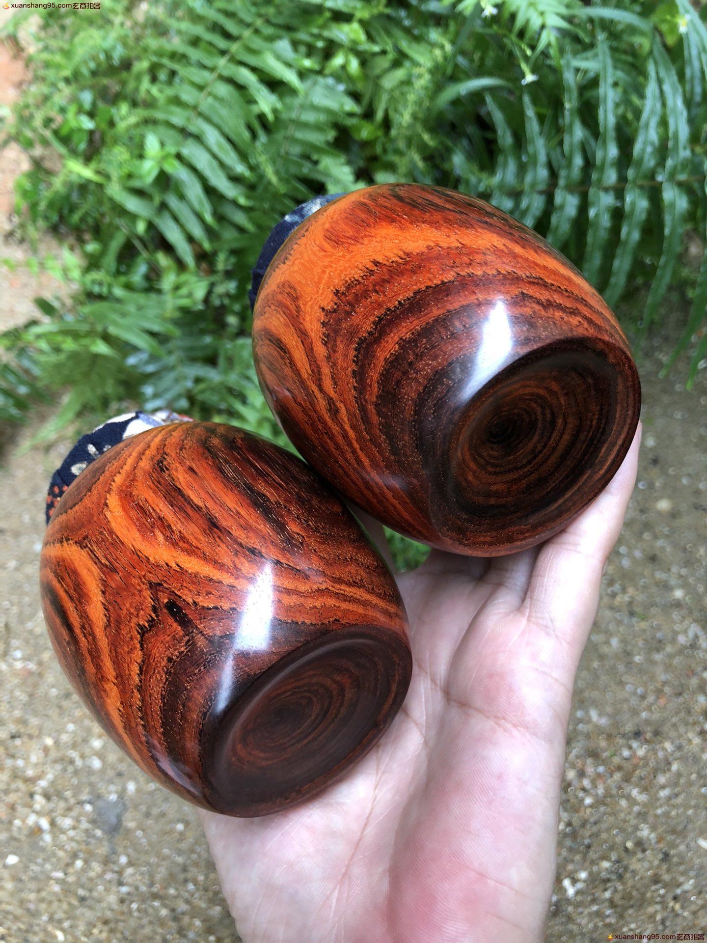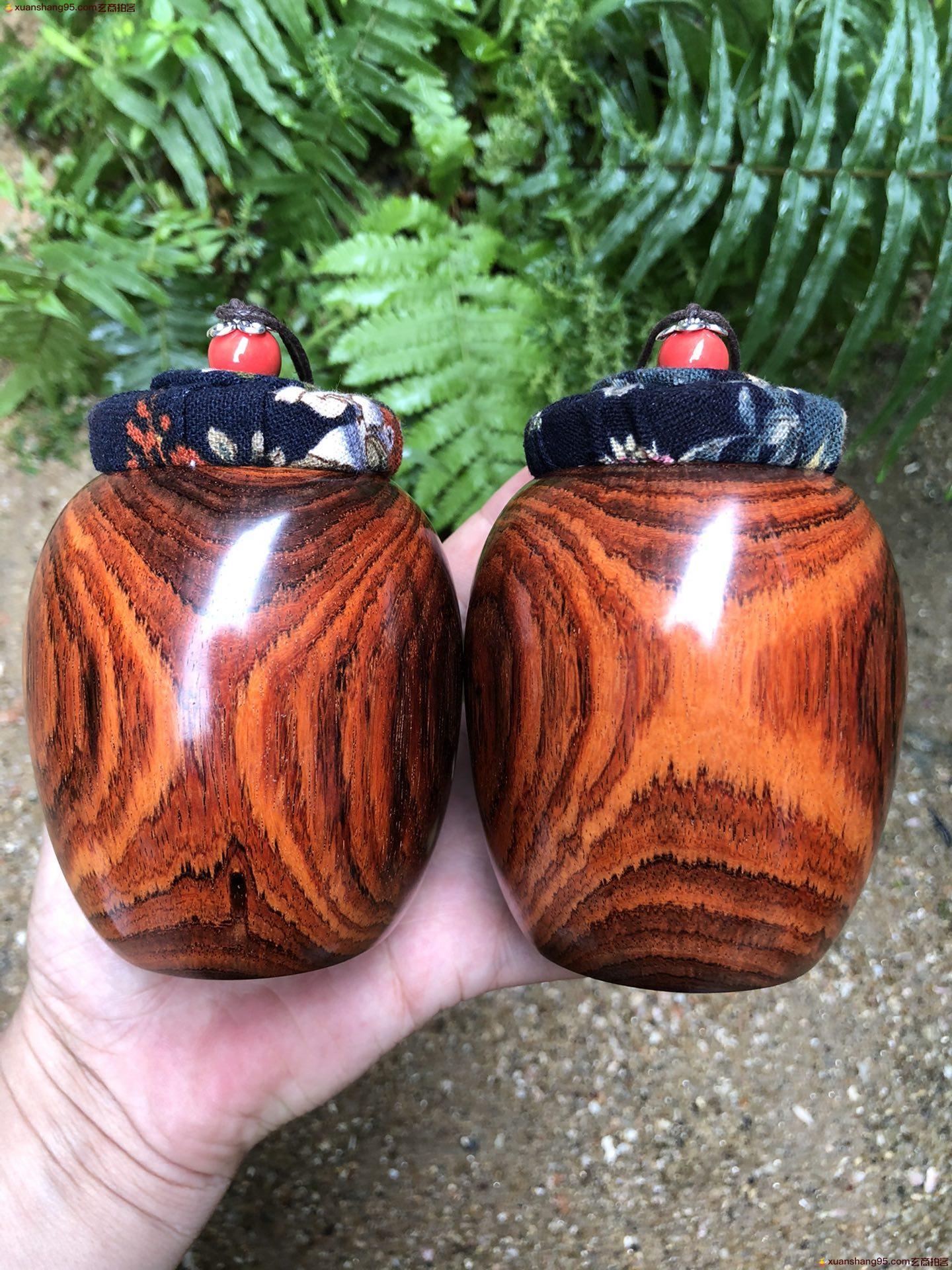 老挝 大红酸枝 茶叶罐一对 零瑕疵 料子细腻 高密度 经典山水纹 带金星 纹理非常漂亮 尺寸7.5*10厘米 重量0.55斤。