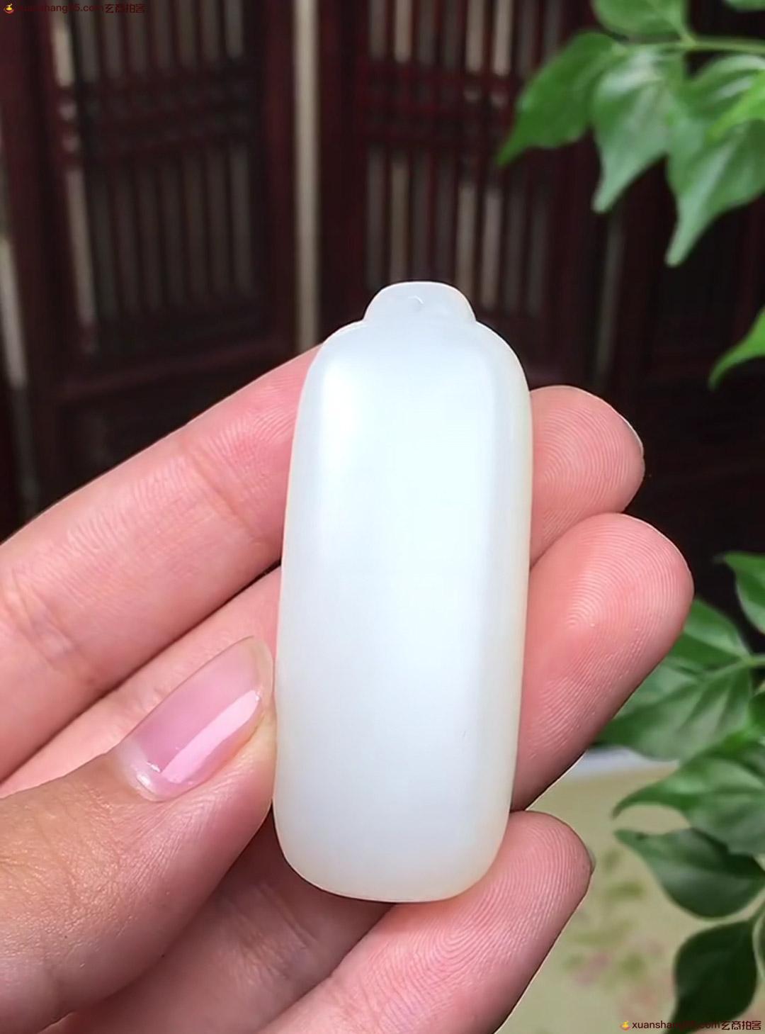 和田玉 白玉挂件 玉质细腻 油润 做工精细 圆润 尺寸50*19*12毫米 重量25克。