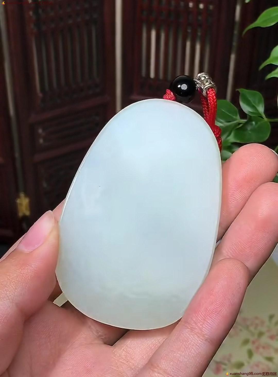 和田玉 青白玉 挂件 玉质细腻 精工雕琢 尺寸64*34*7.5毫米 重量50克。