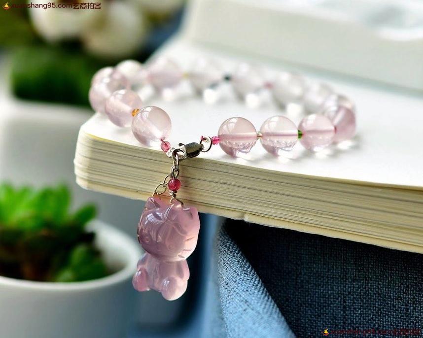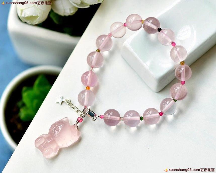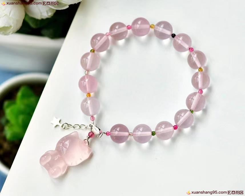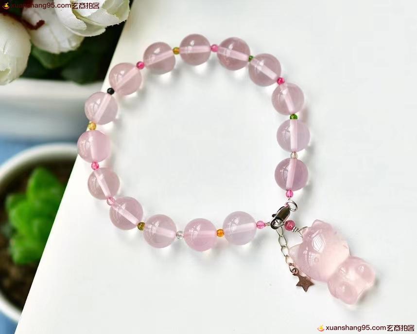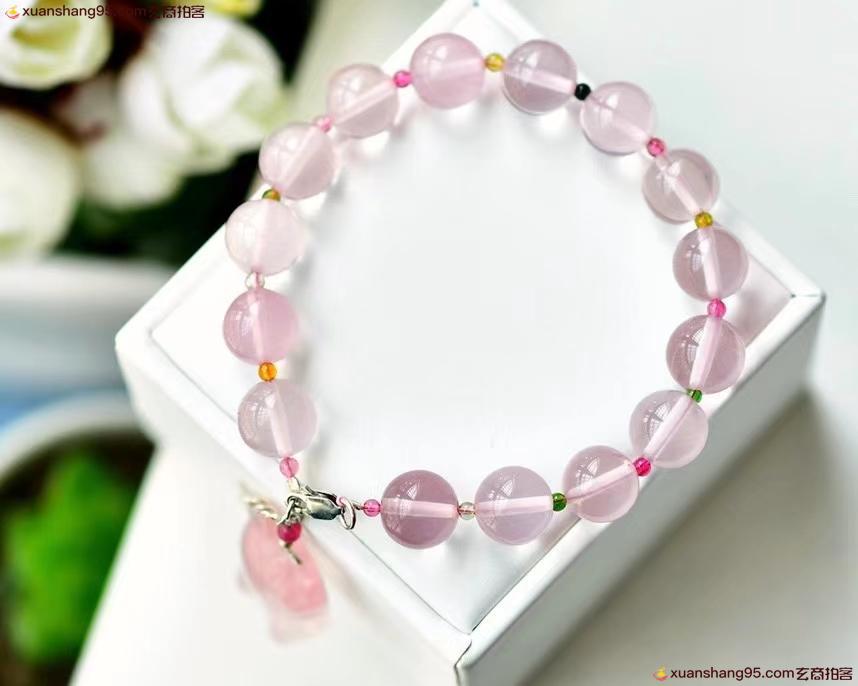 纯天然 粉水晶 手链 颜色粉嫩水润 佩戴效果好 粉水晶 佩戴效果好,尺寸10毫米 重量24克。