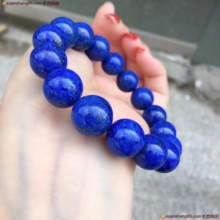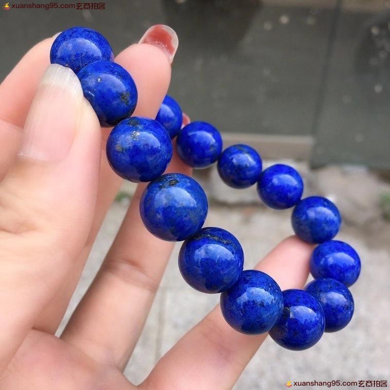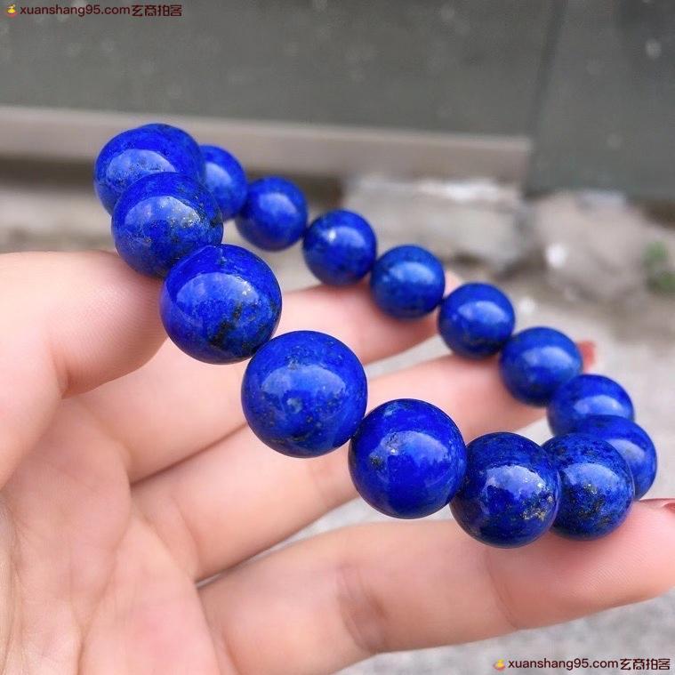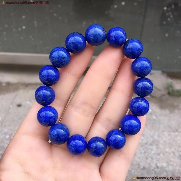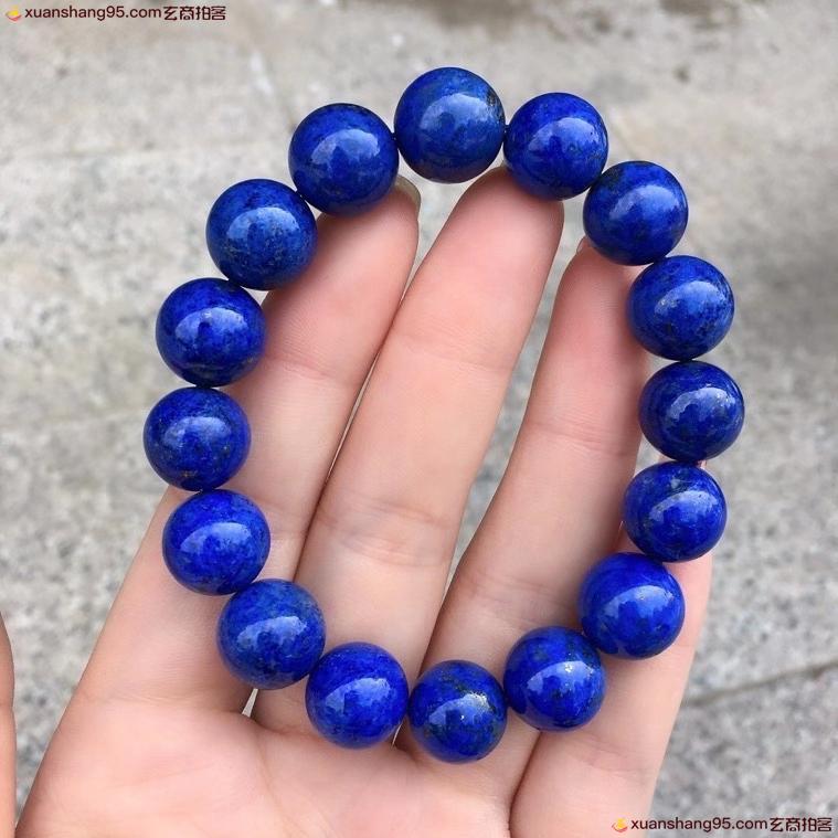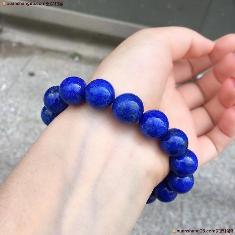纯天然 青金石 单圈手串 微微金 天然色 尺寸14毫米 重量57克。