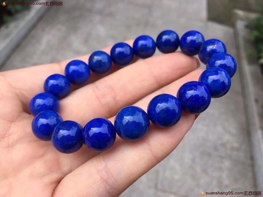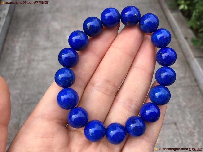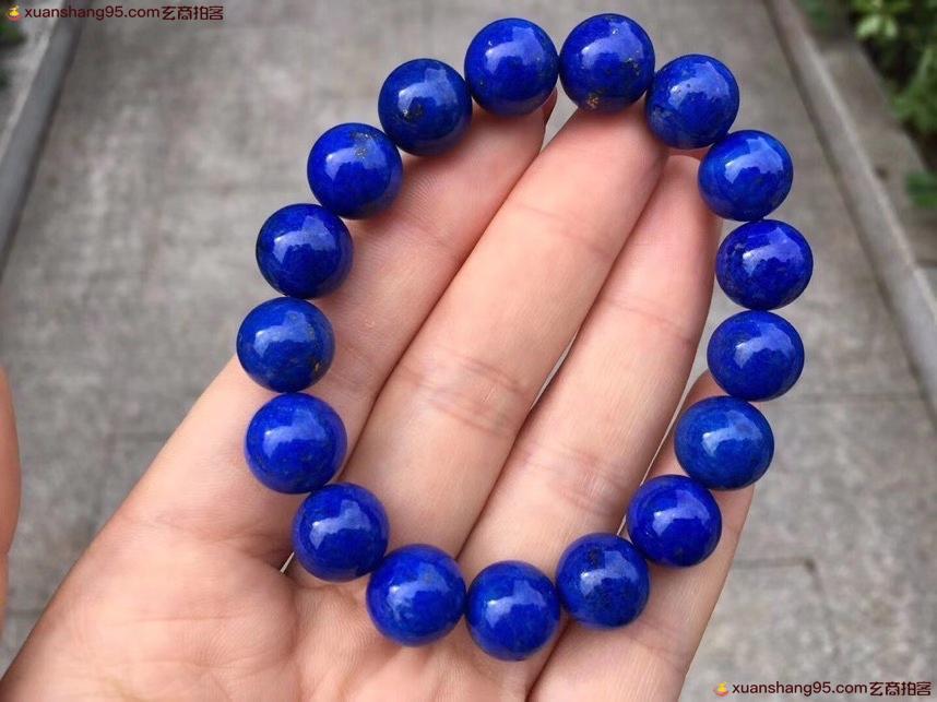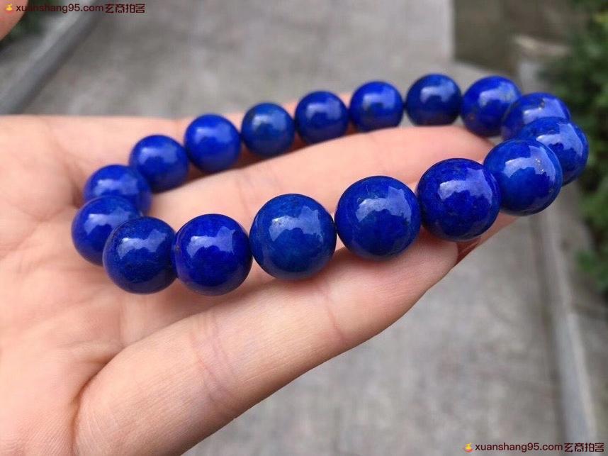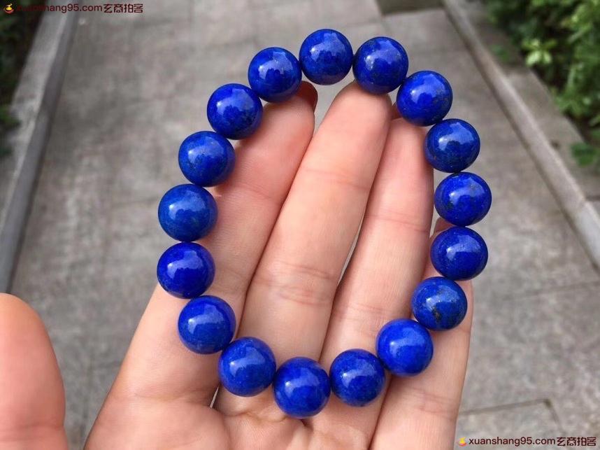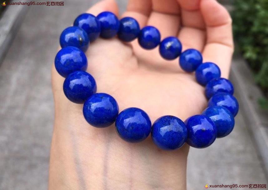 纯天然 青金石 1.2手串 纯天然 微微金 艳蓝色 尺寸12毫米 重量48克。