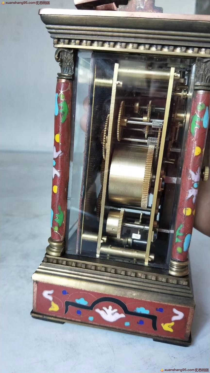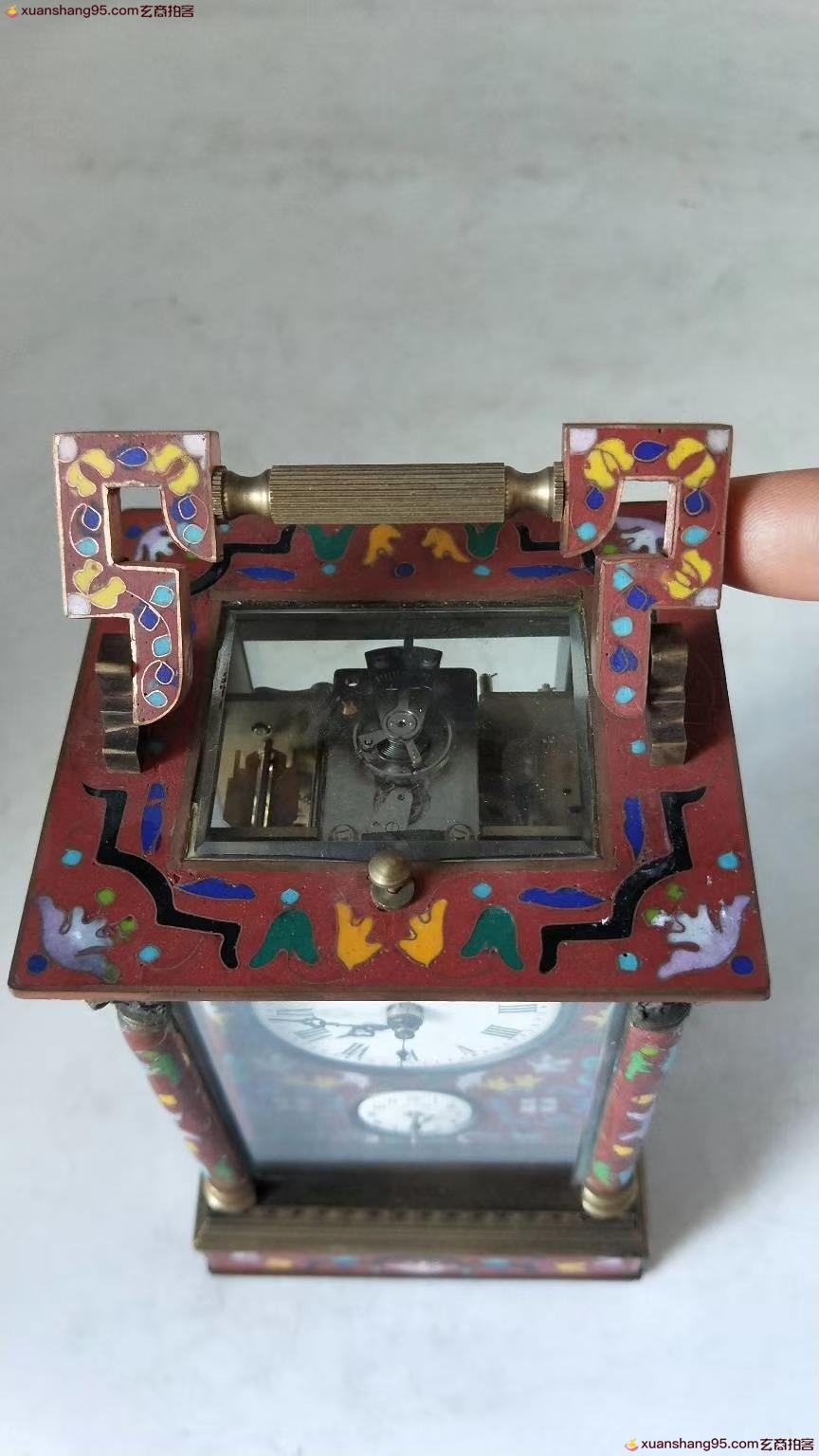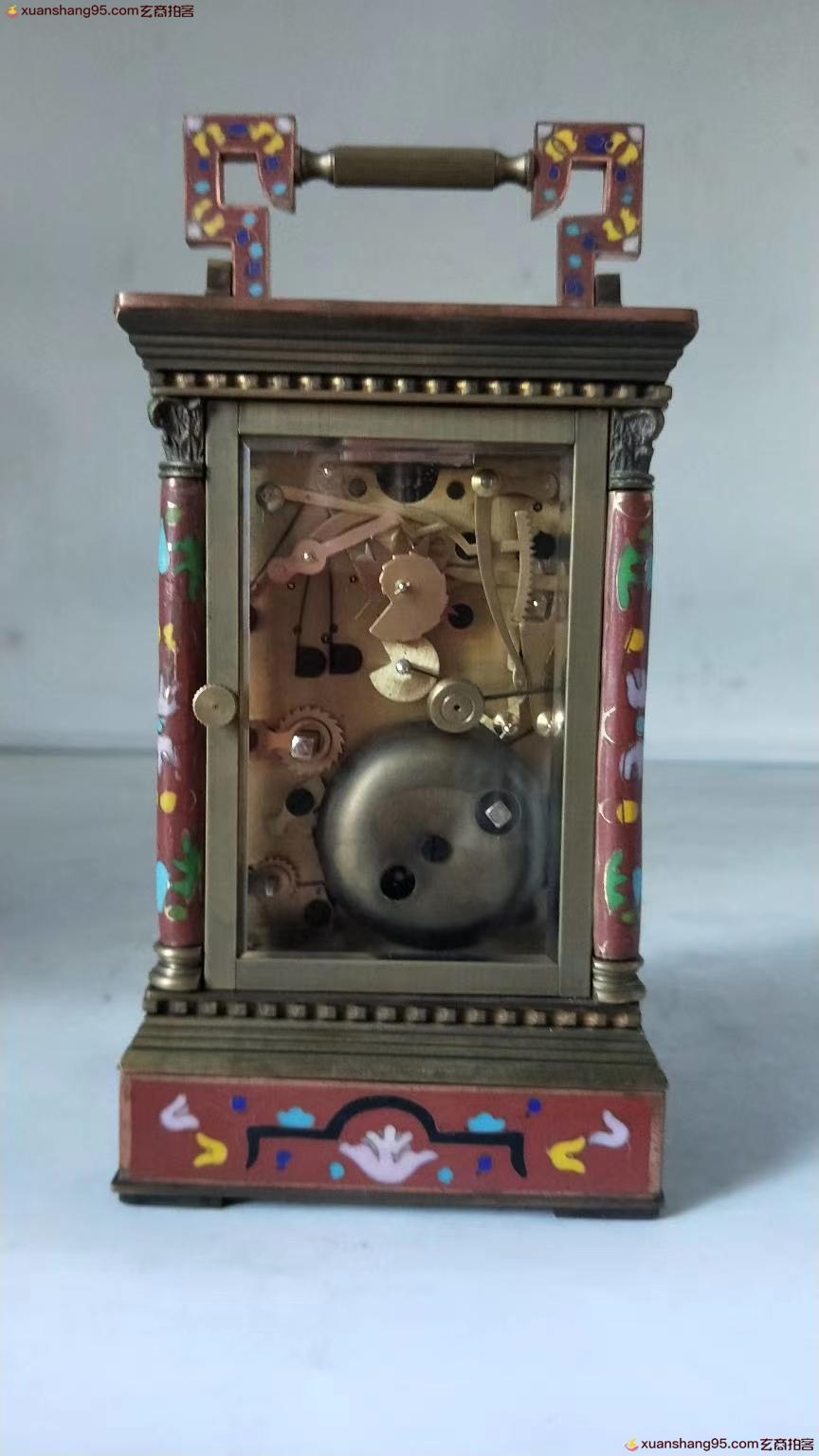 景泰蓝 铜 钟表 机械底座 完整漂亮 分量足 品相如图 尺寸18*10*9厘米。