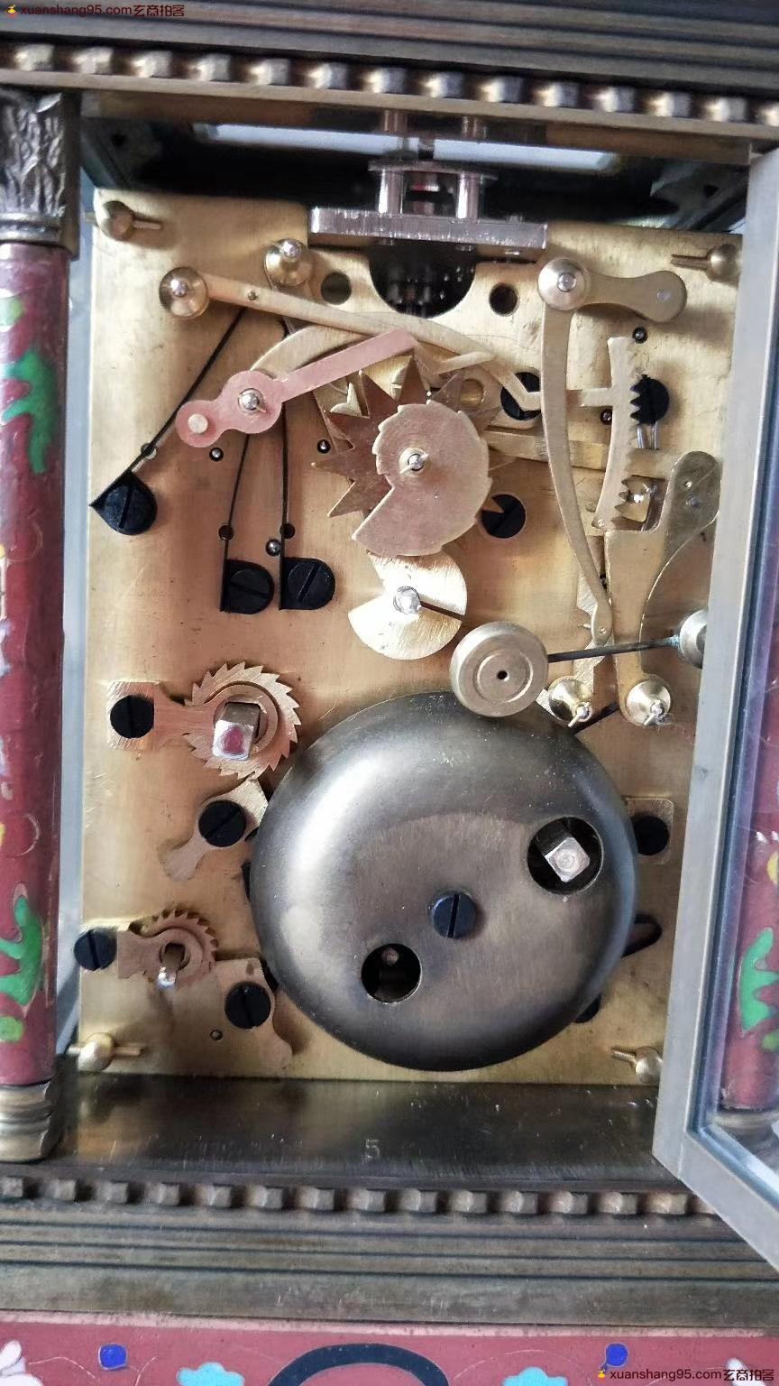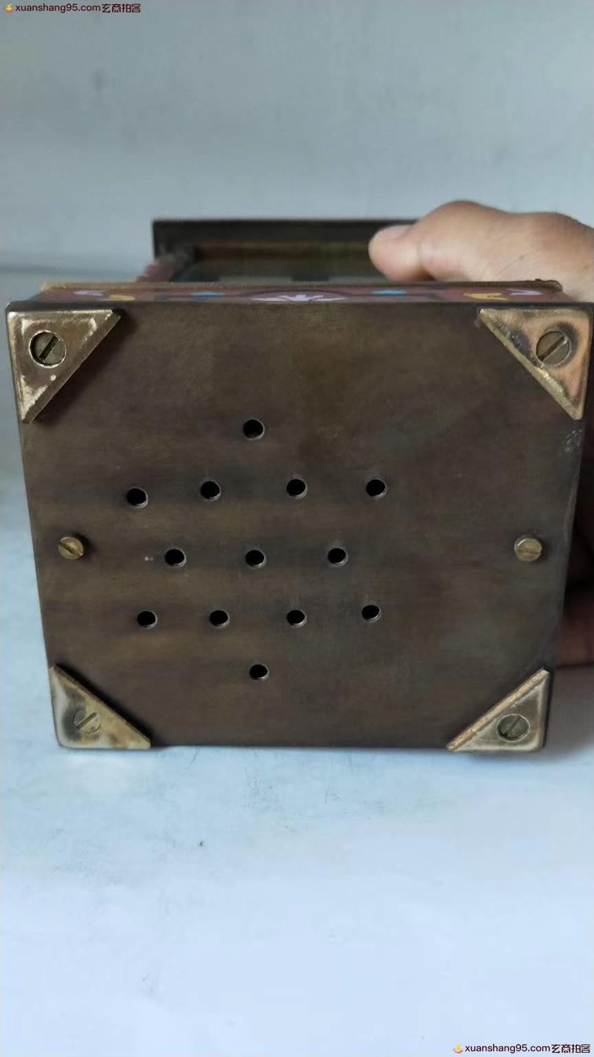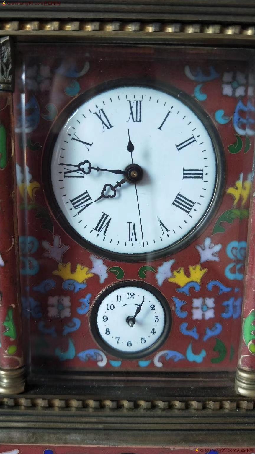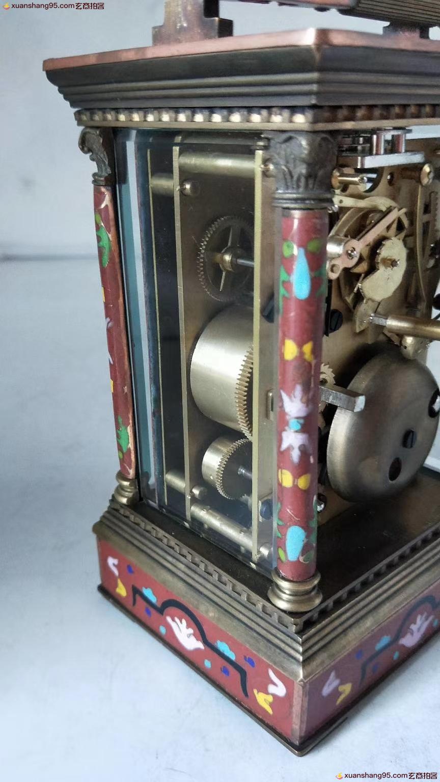 景泰蓝 铜 钟表 机械底座 完整漂亮 分量足 品相如图 尺寸18*10*9厘米。