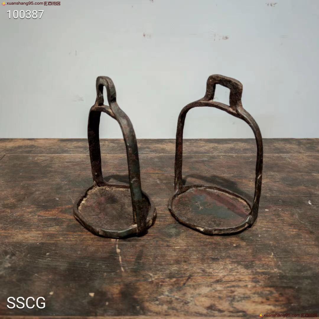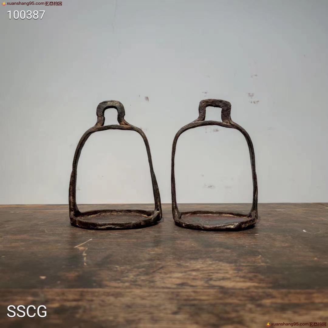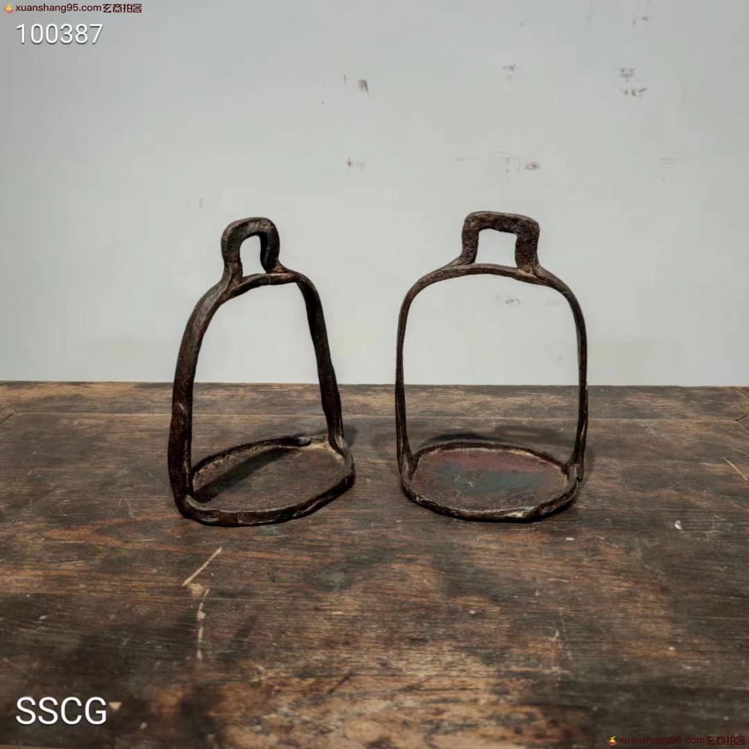 马镫一对 保存较好 包浆厚重 自然磨损 崔月痕迹明显 尺寸14*19厘米。