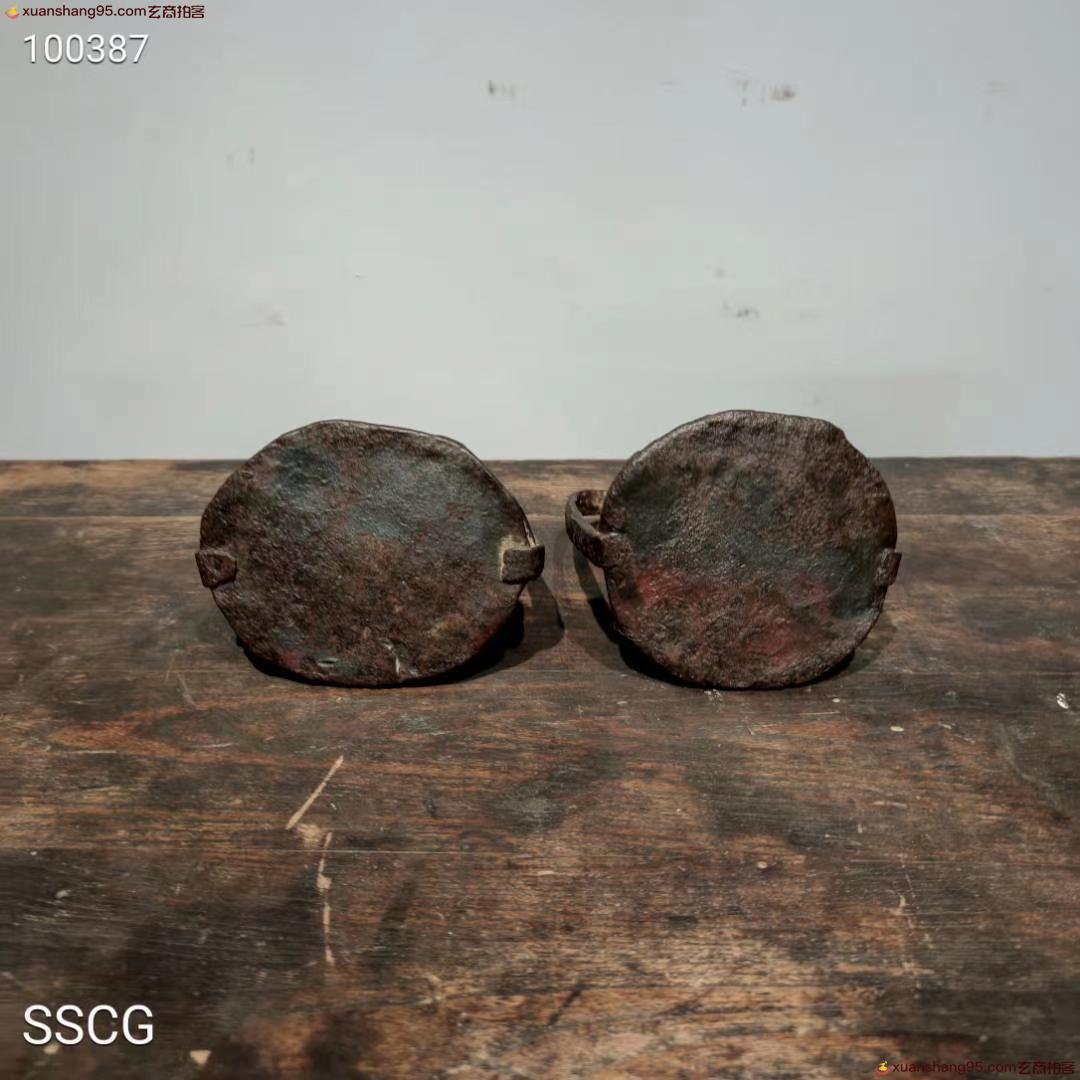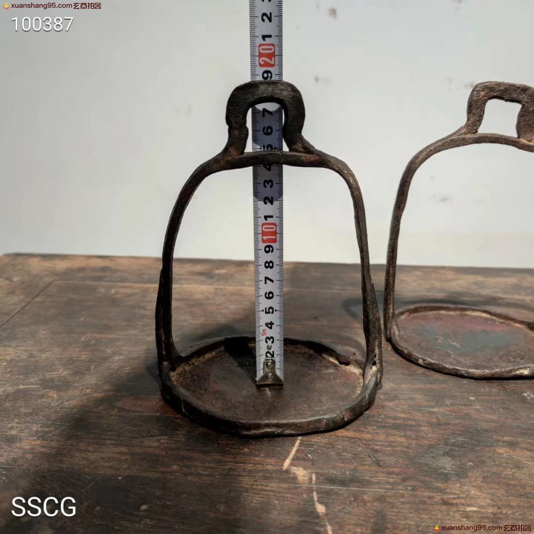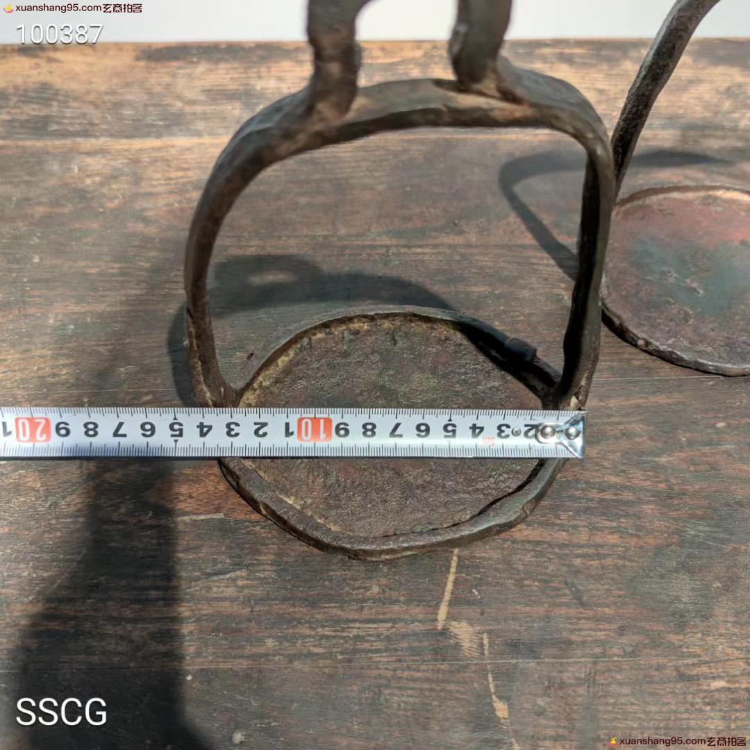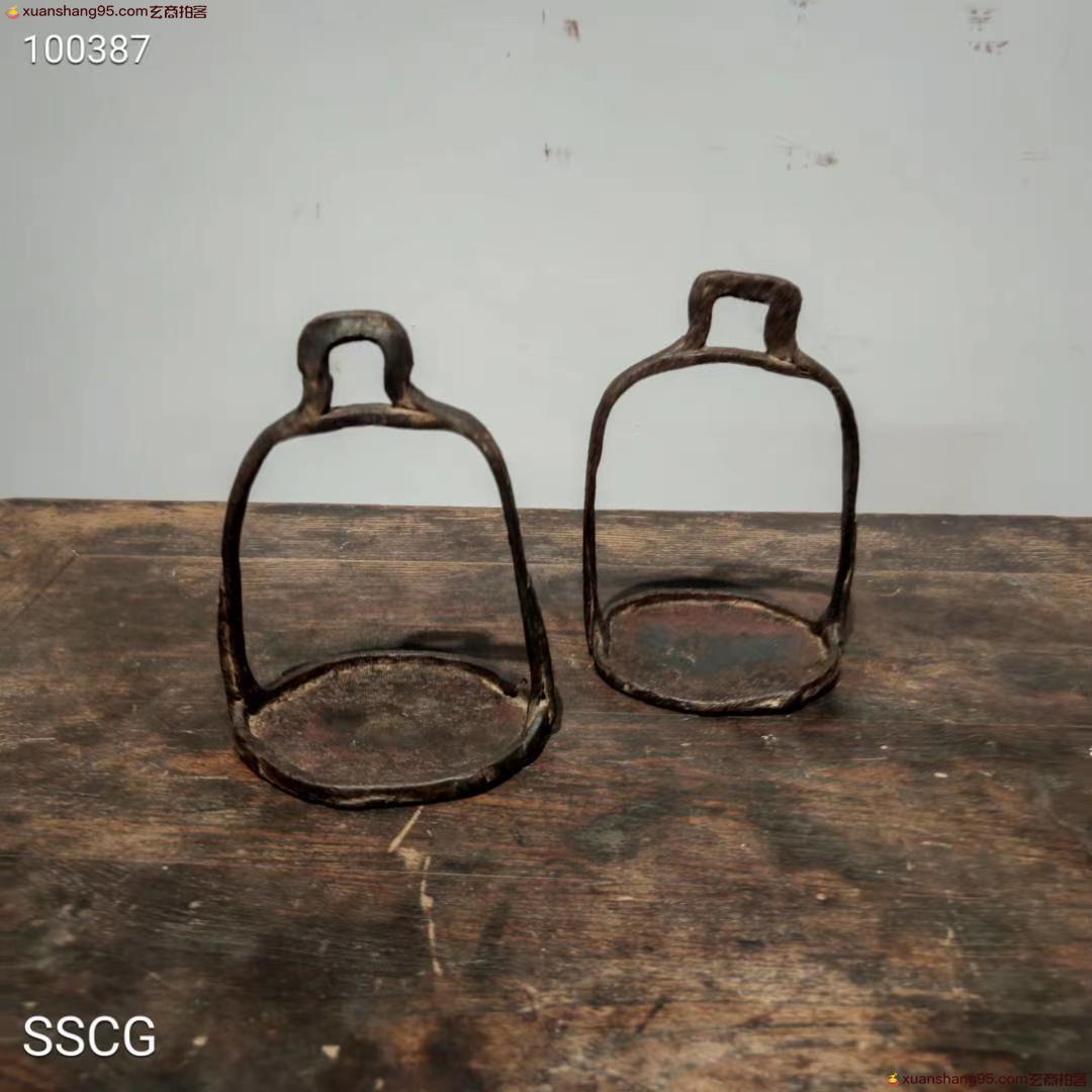 马镫一对 保存较好 包浆厚重 自然磨损 崔月痕迹明显 尺寸14*19厘米。