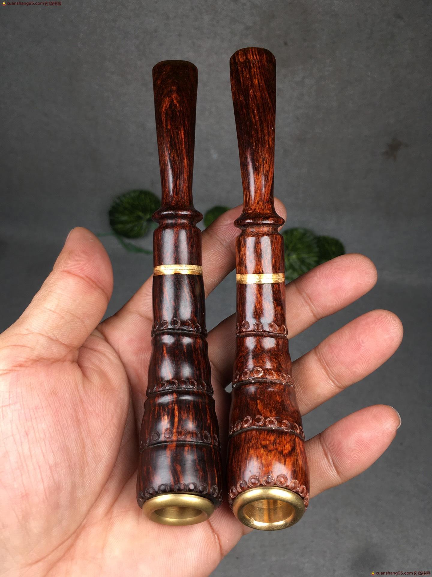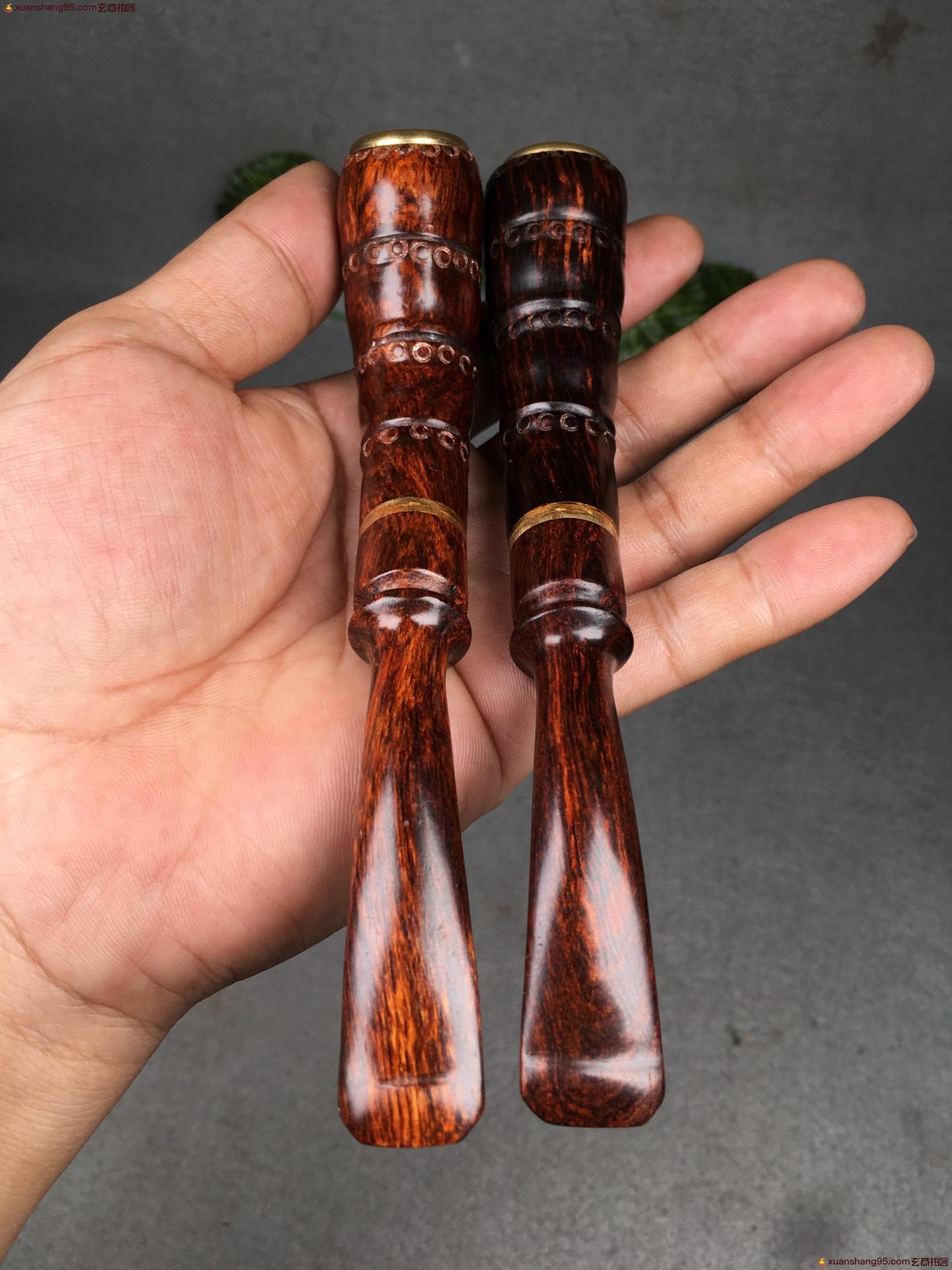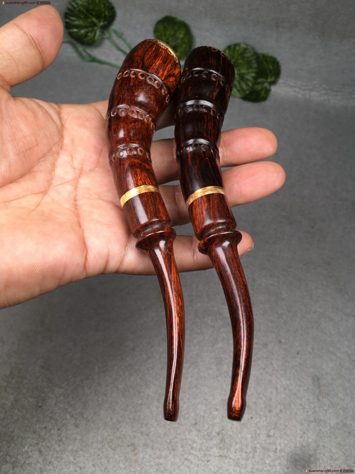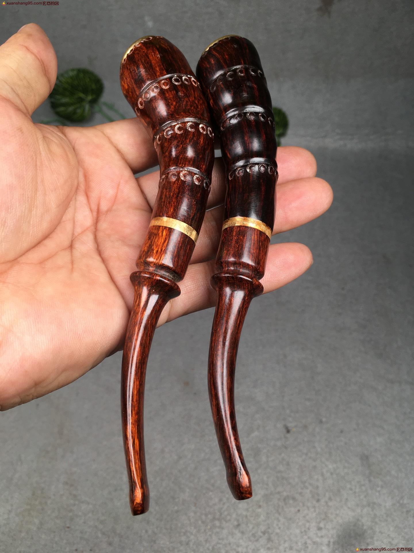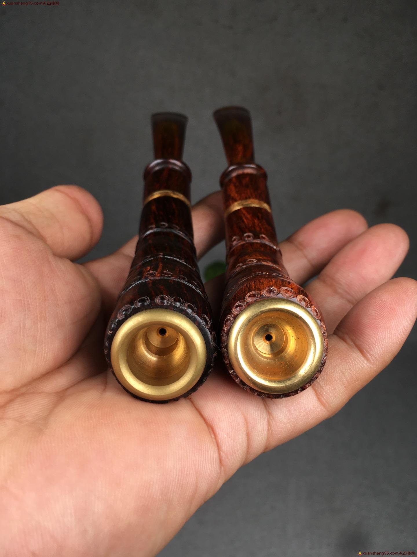 3. 竞拍详细 - 海南黄花梨 竹节烟斗一对